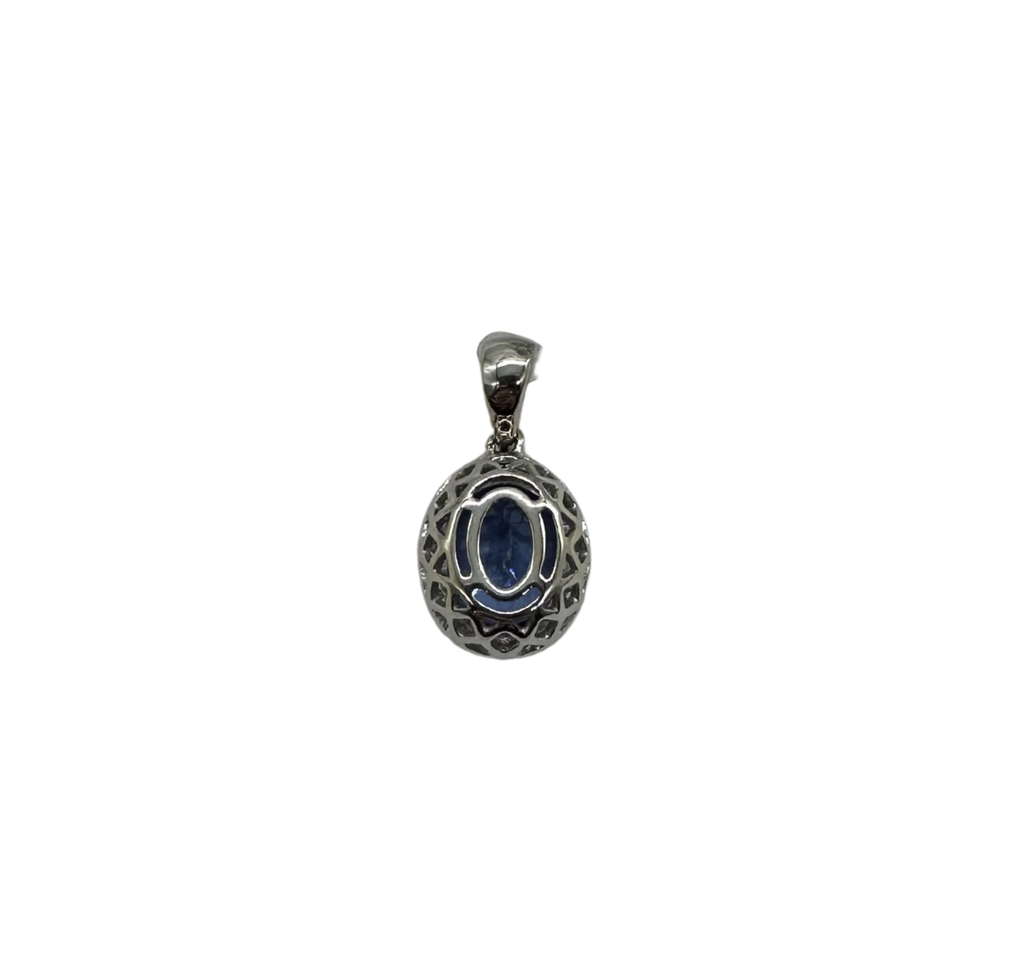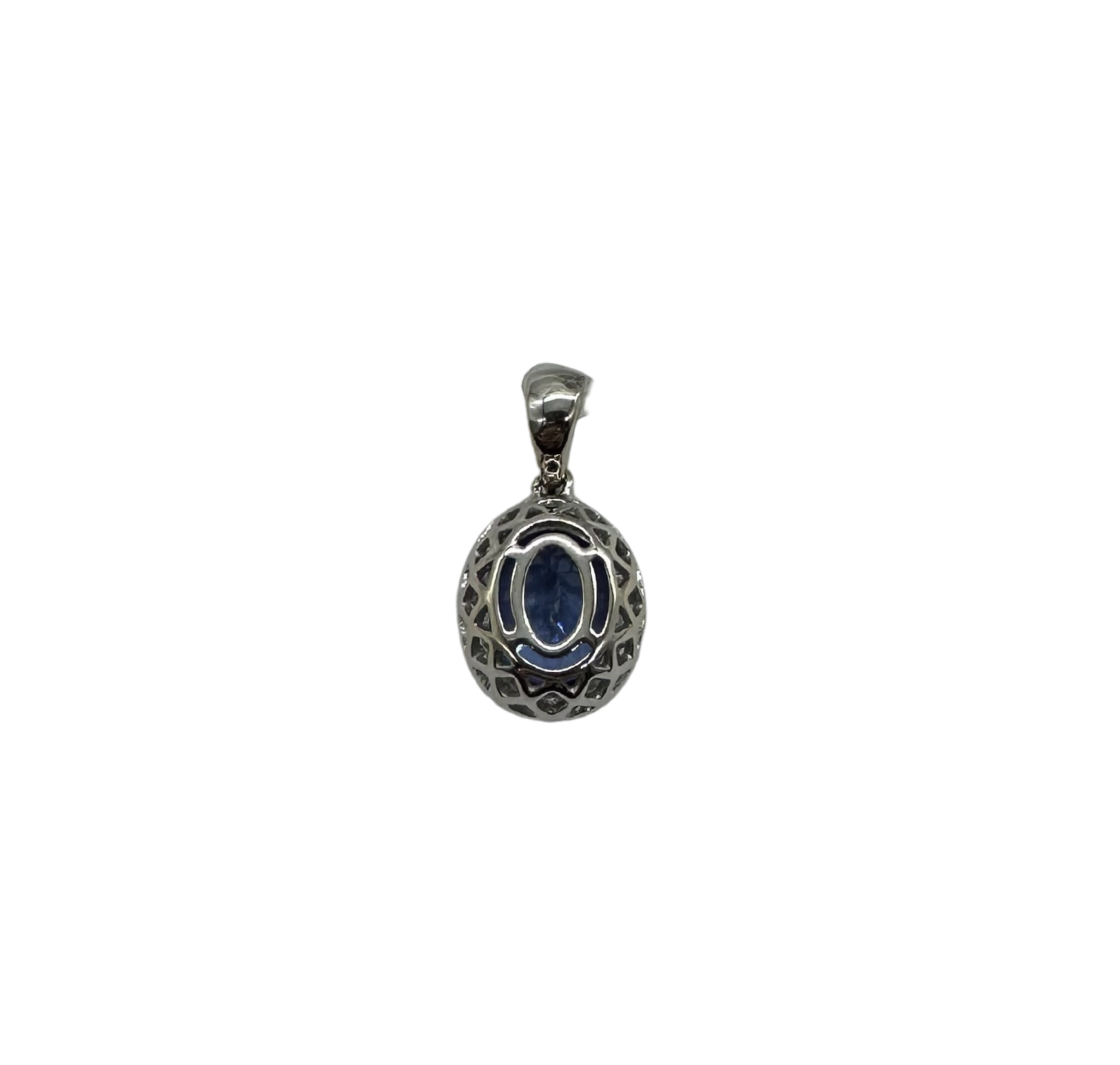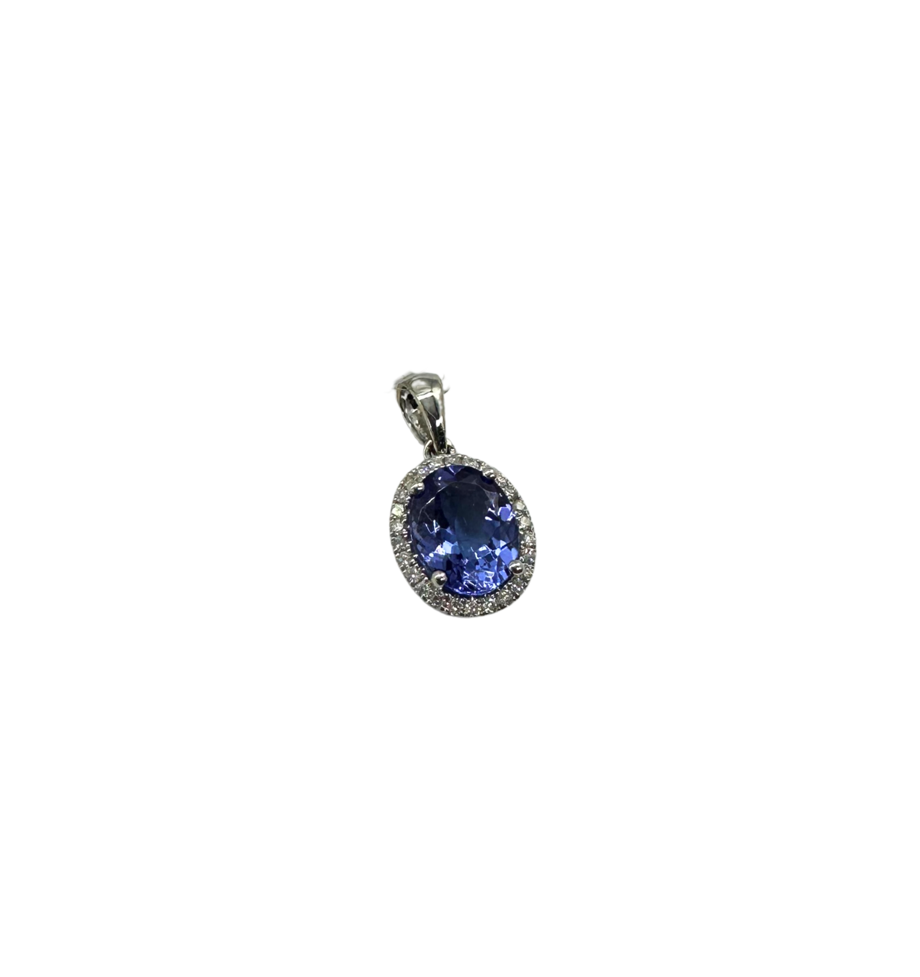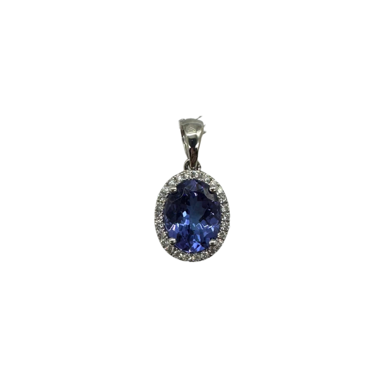 14k White Gold Tanzanite & Diamond Halo Pendant