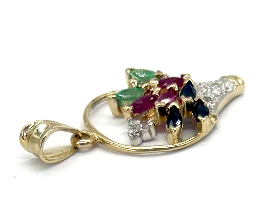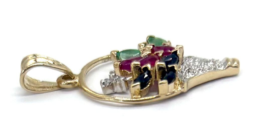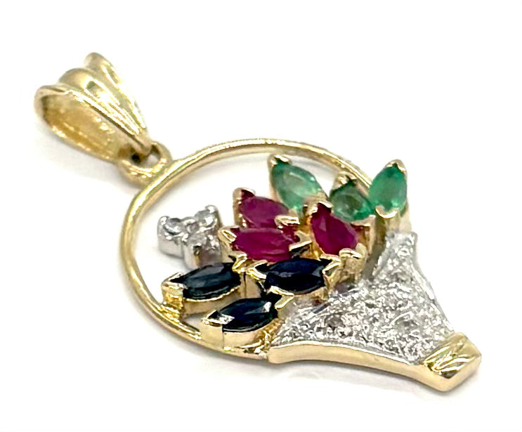 14k Yellow and White Gold Multi-Gemstone Bouquet Pendant
