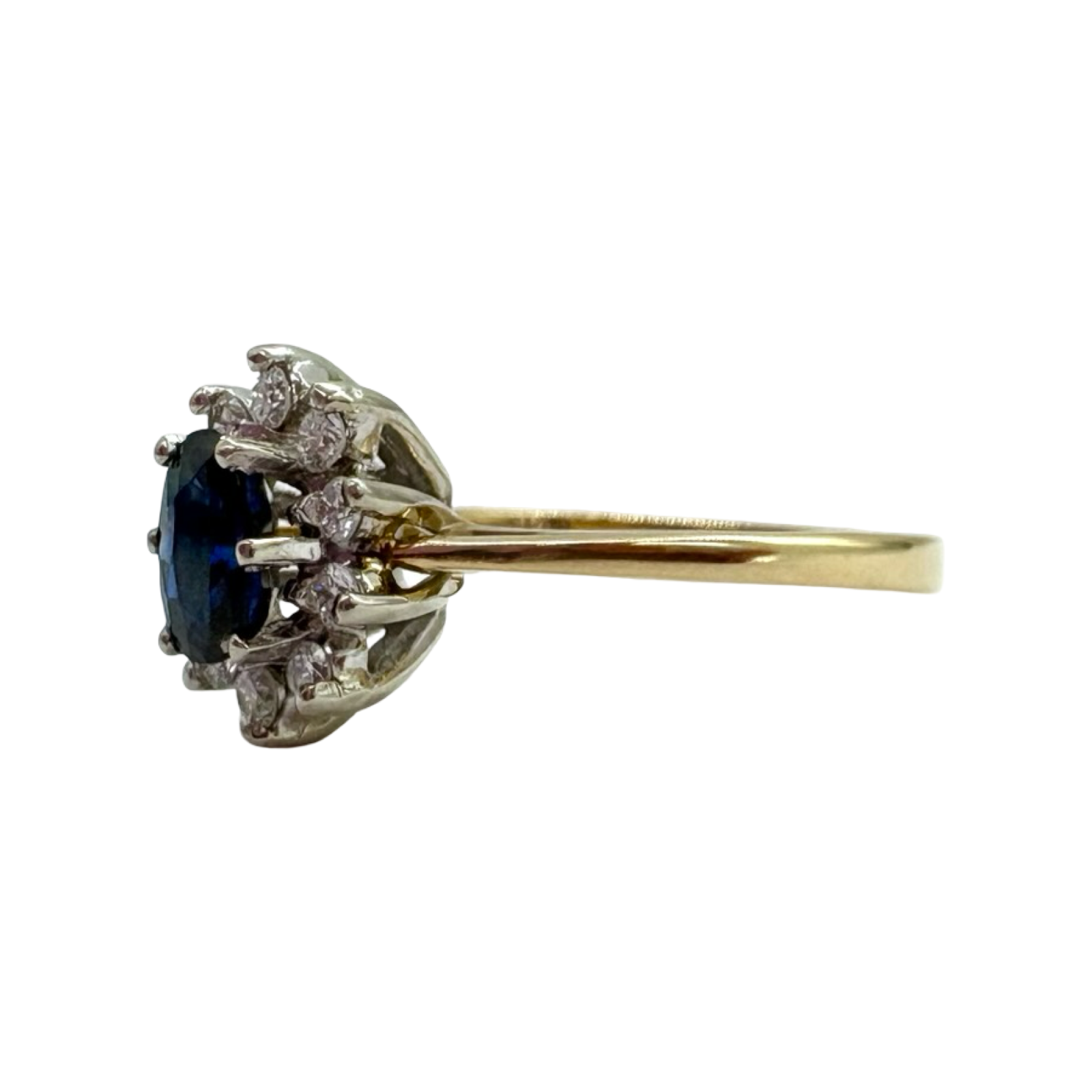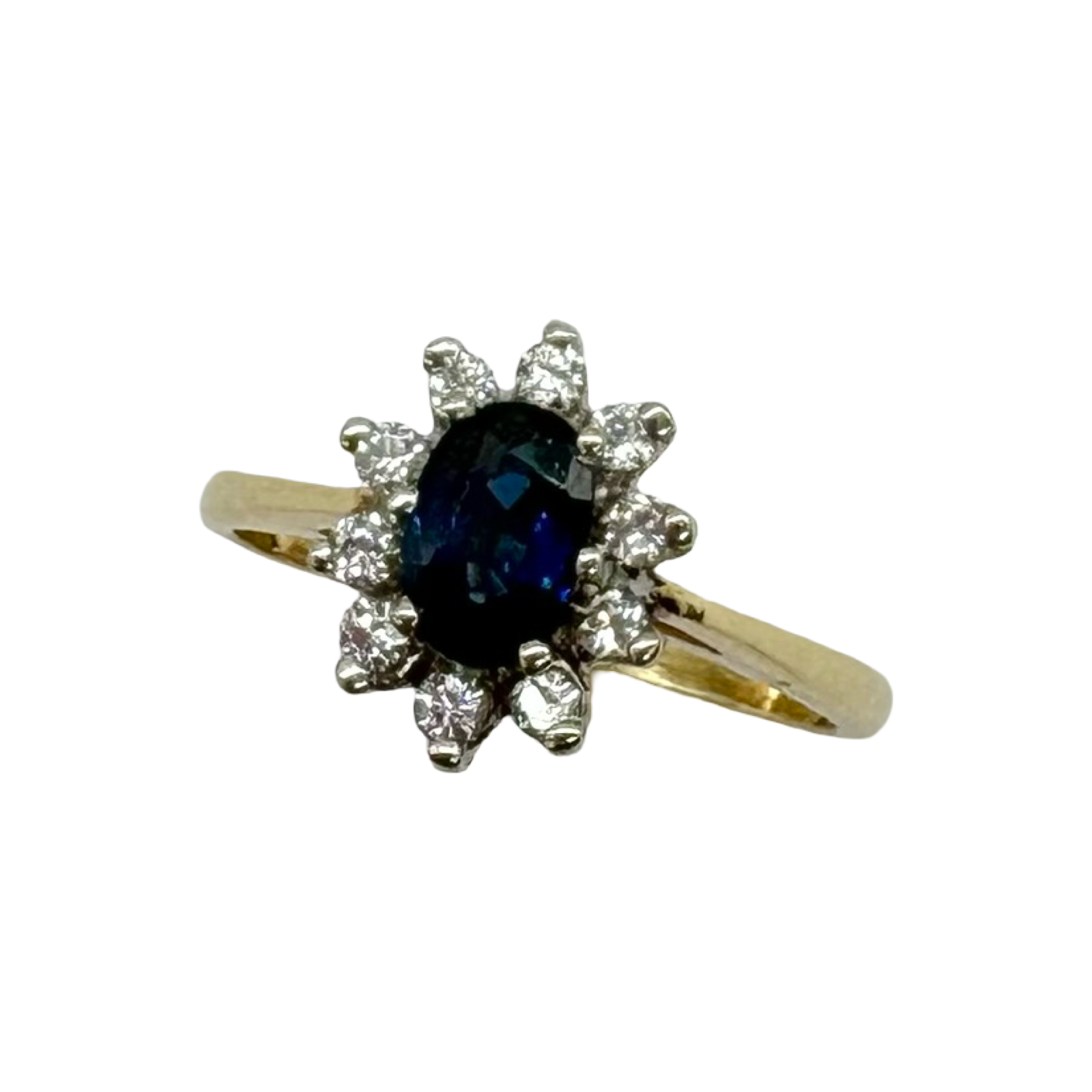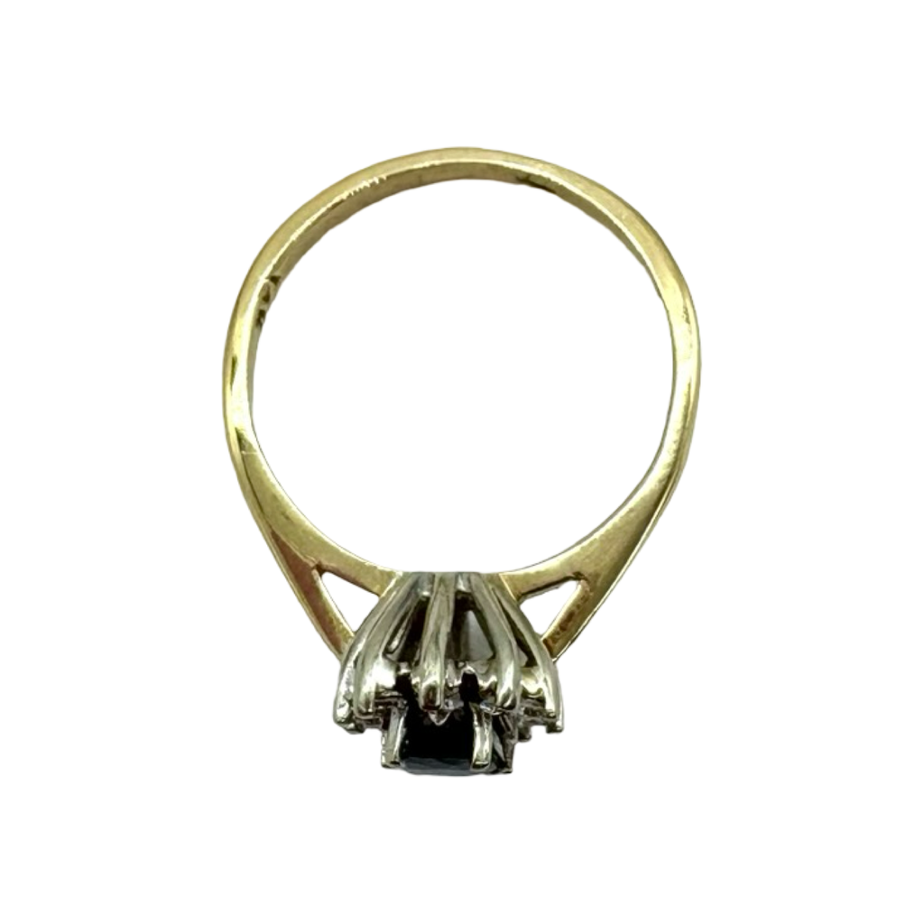 14K Yellow Gold 1/3CTW Diamond Sapphire Halo Cathedral Ring