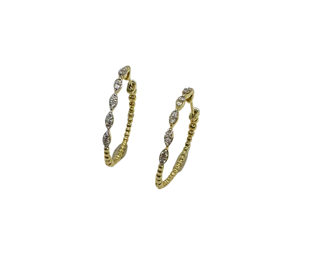 14k Yellow Gold 1/4 CTW Marquise Cluster Hoop Earrings