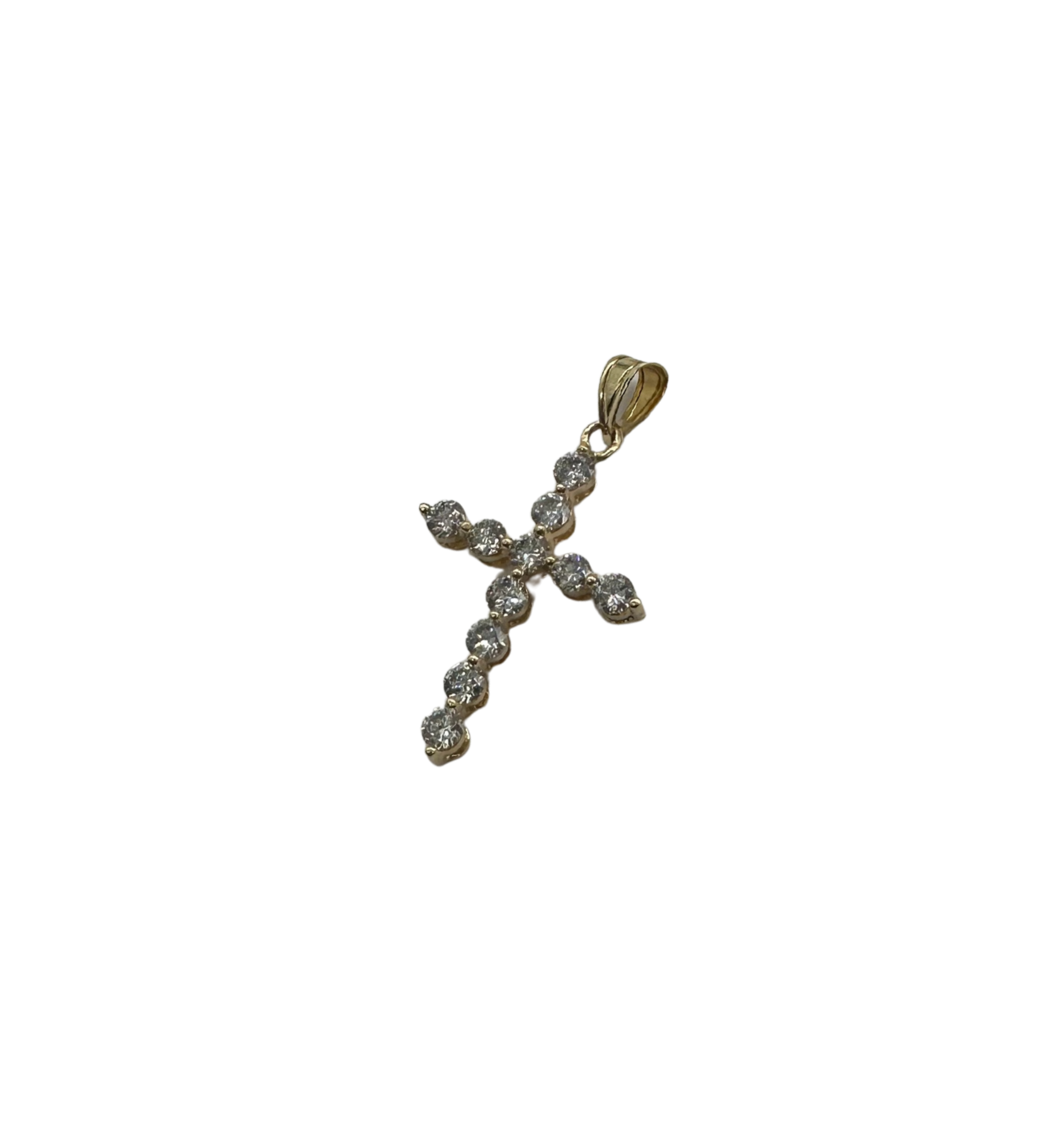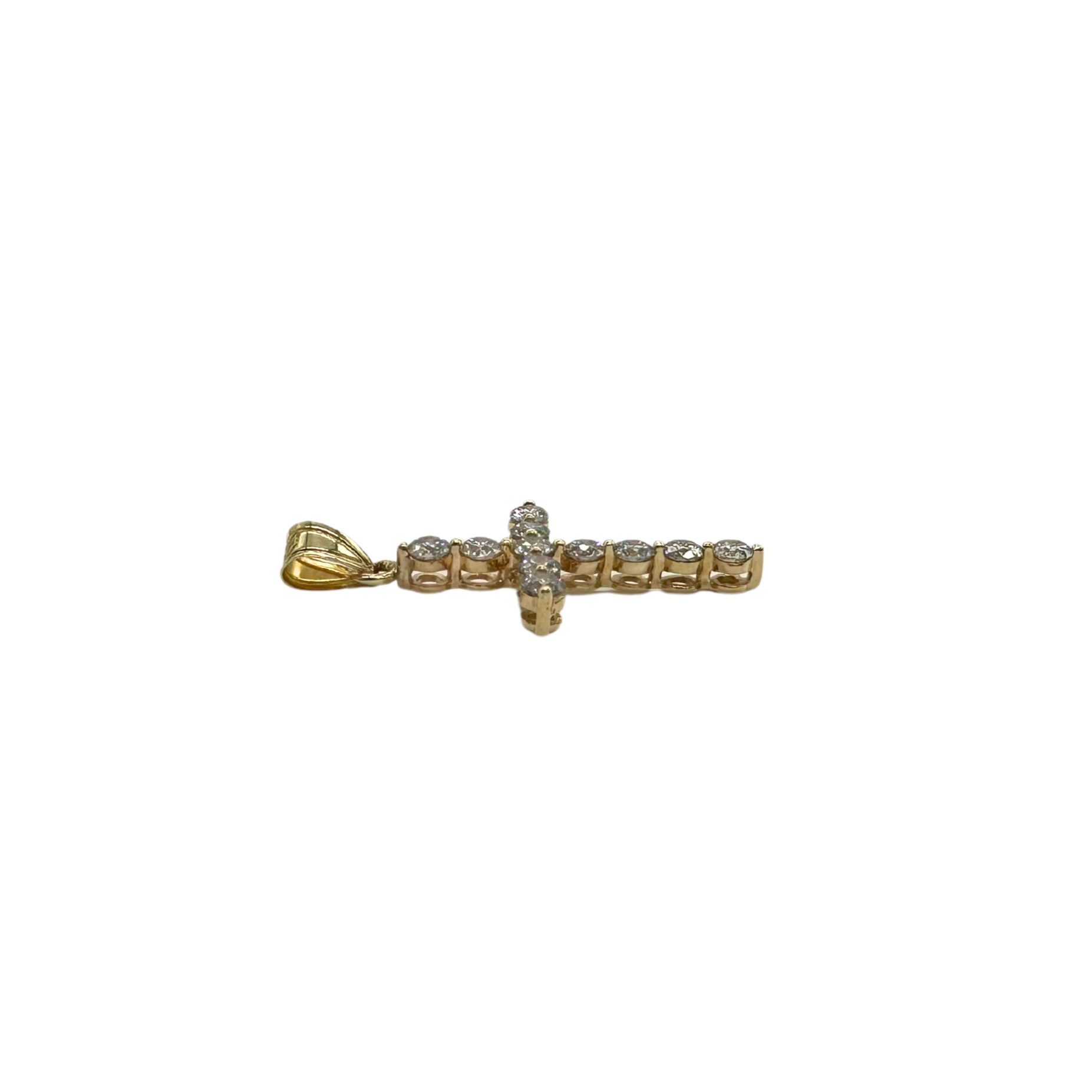 14k Yellow Gold 1.5 CTW Diamond Cross Pendant, 2 Grams