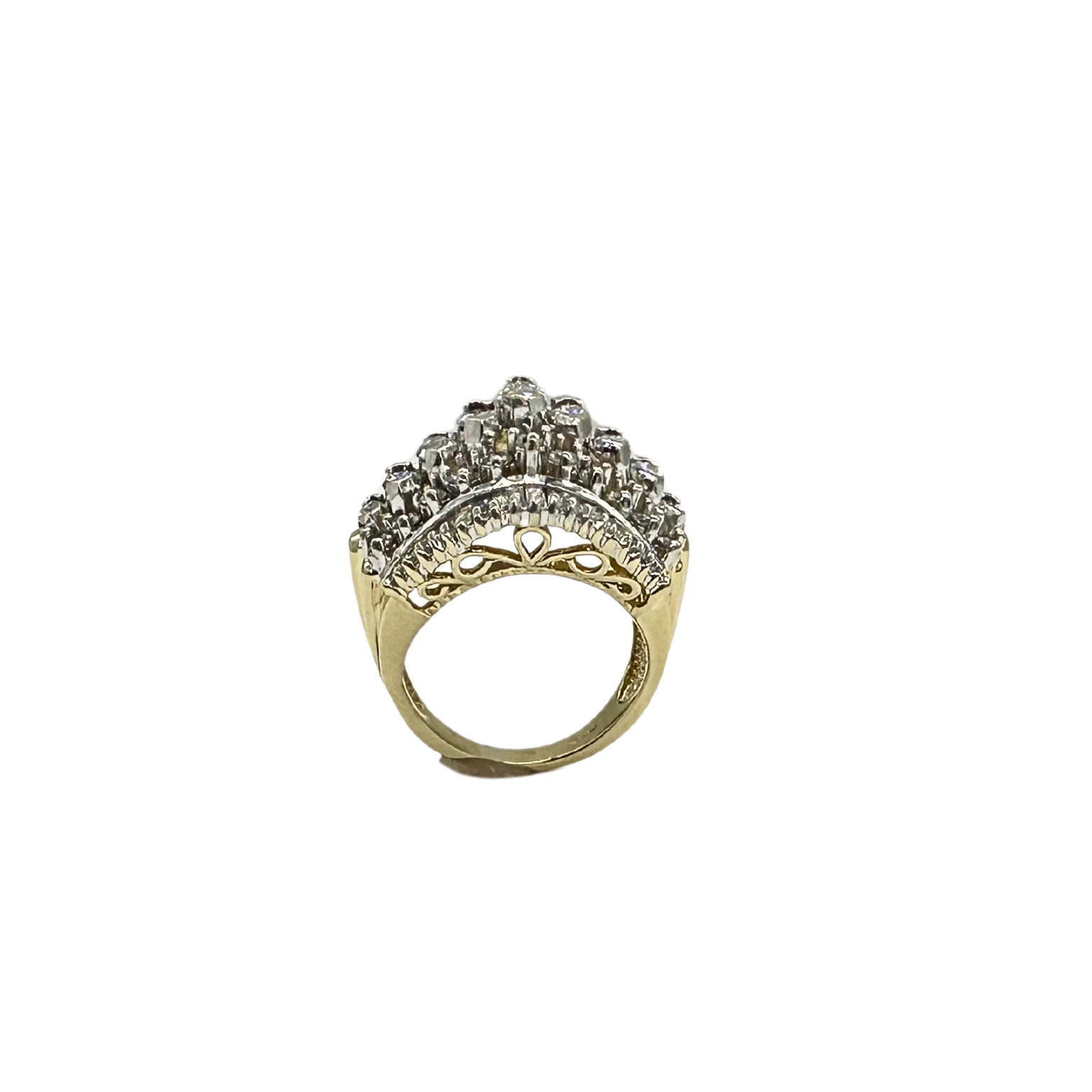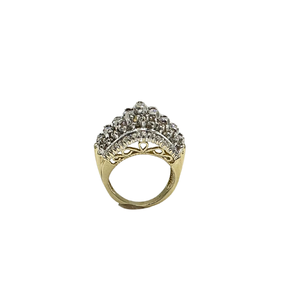 14k Yellow Gold 2.5 CTW Marquise, Round, and Baguette Diamond 5-Row Ring