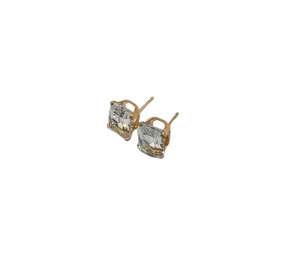 These elegant stud earrings feature emerald-cut aquamarine gemstones set in classic 4-prong basket settings crafted in 14k yellow gold. The light icy blue tone adds a fresh and graceful sparkle, making them perfect for everyday wear or a polished finishing touch to any outfit.
