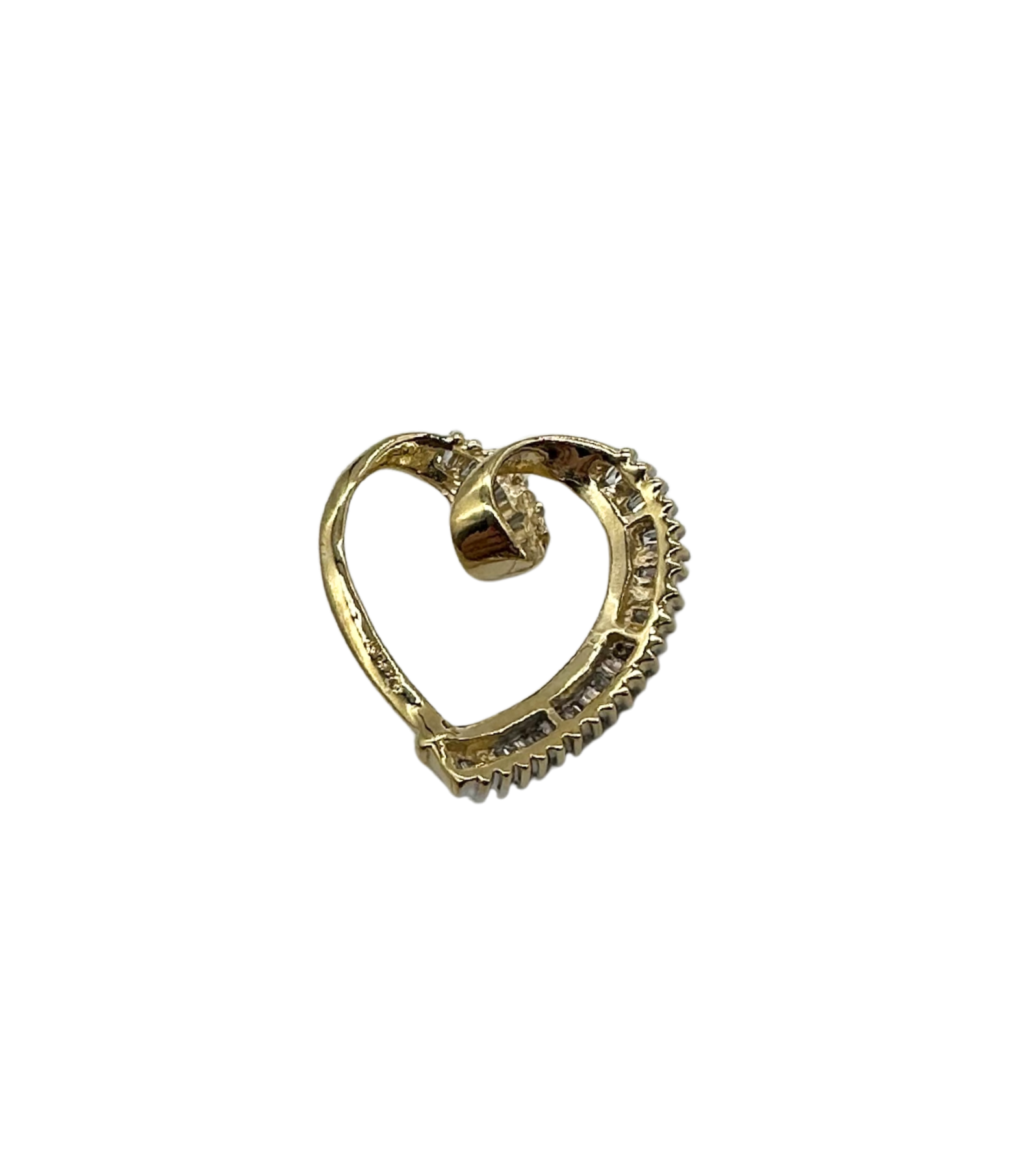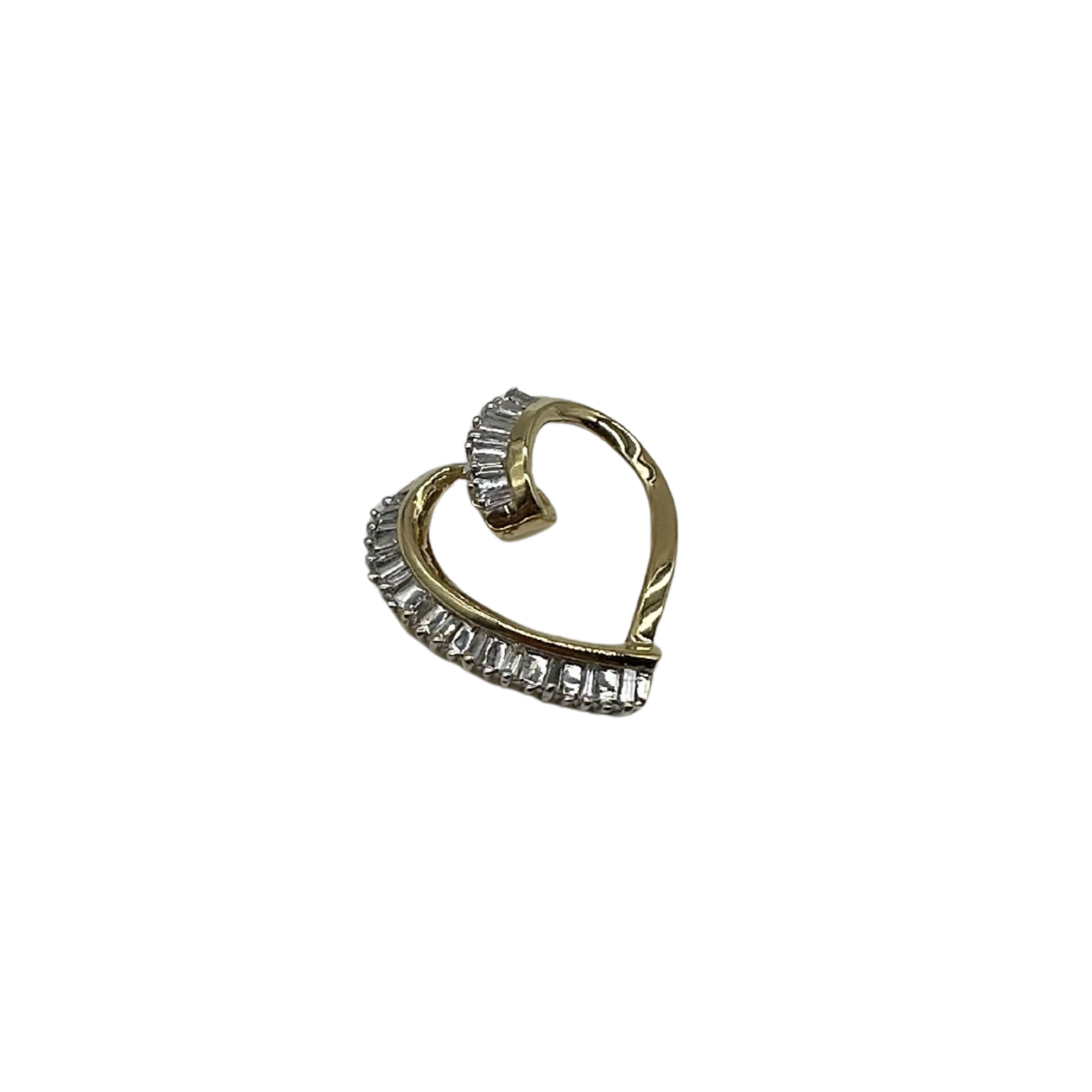 14k Yellow Gold Baguette Diamond Heart Outline Pendant