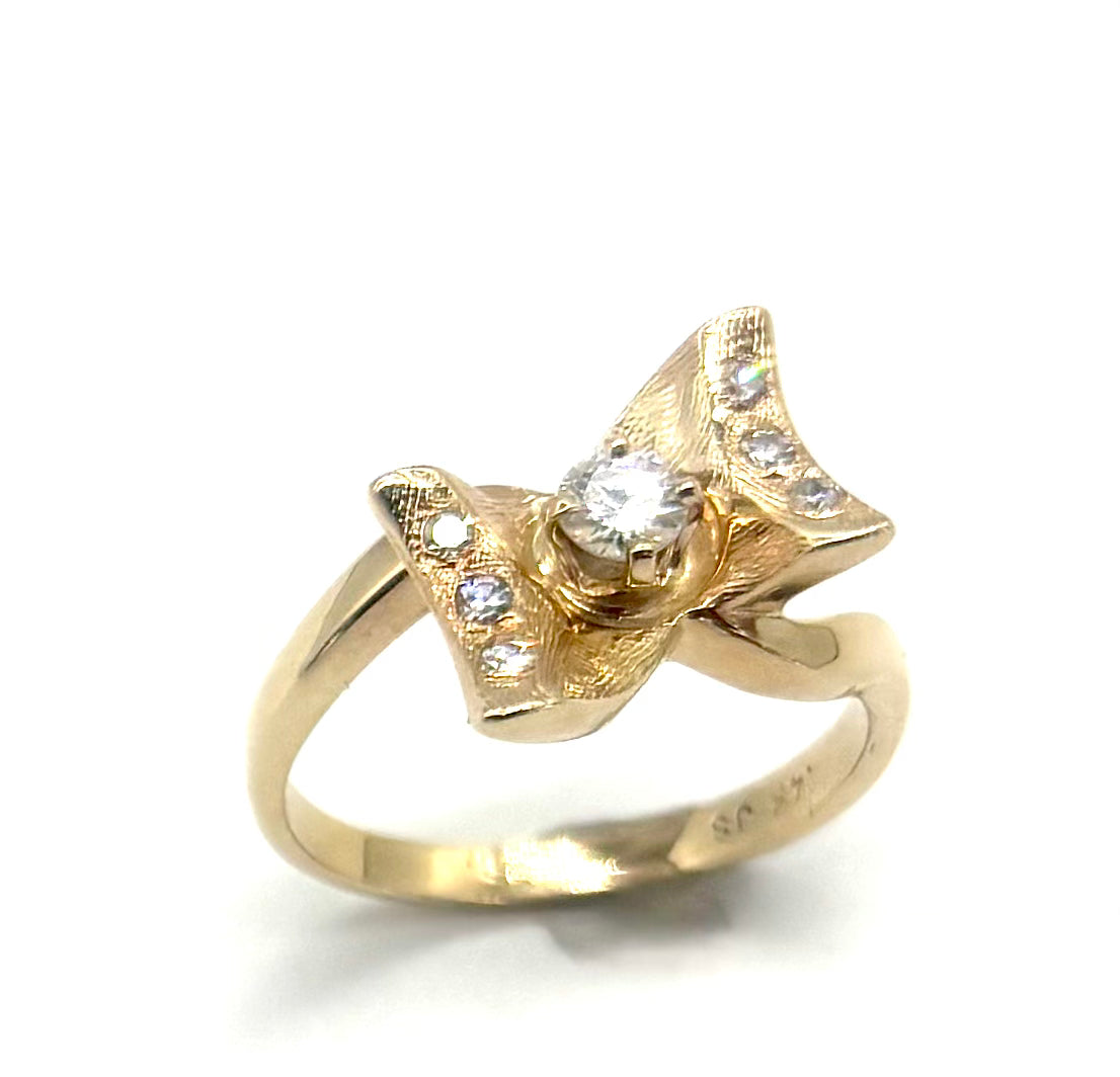 14k Yellow Gold Diamond Bow Bypass Ring – Size 6.25 (Pre-Owned)