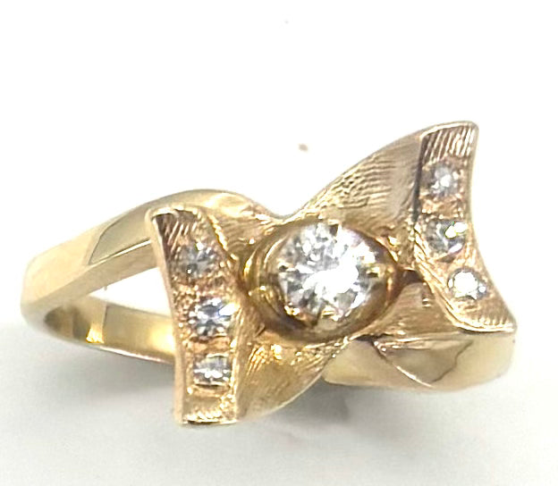 14k Yellow Gold Bow Bypass Ring- 1/4ctw Diamond