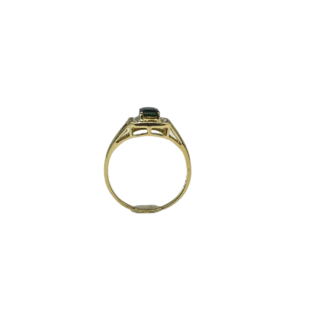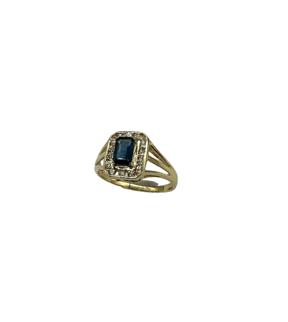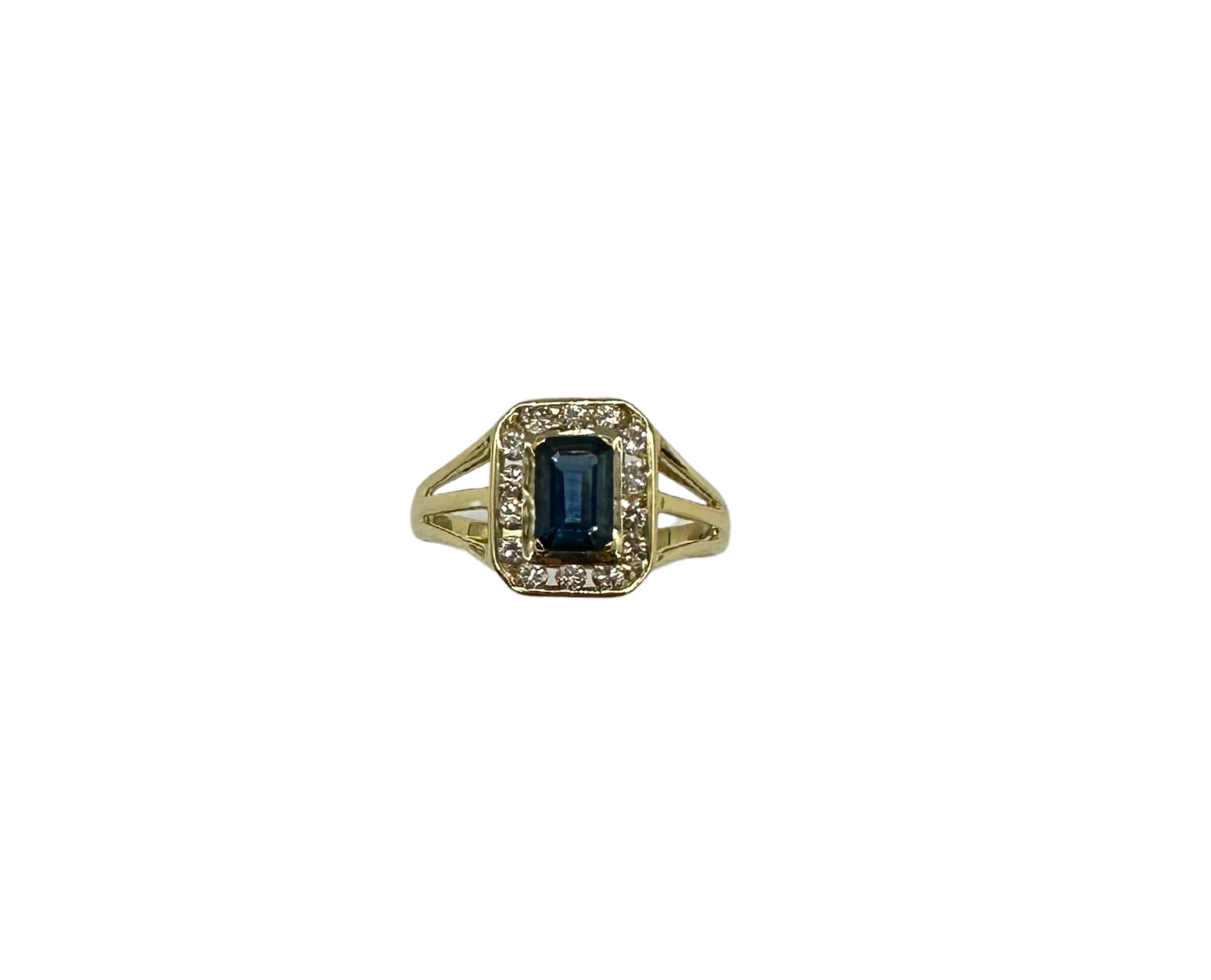 14k Yellow Gold Diamond & Sapphire Halo Ring