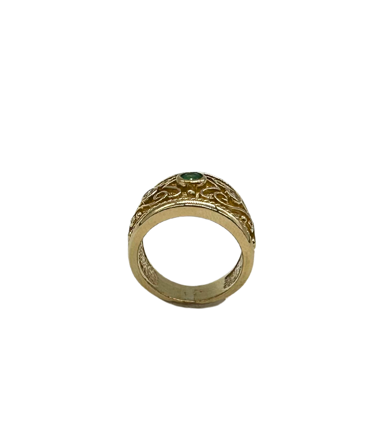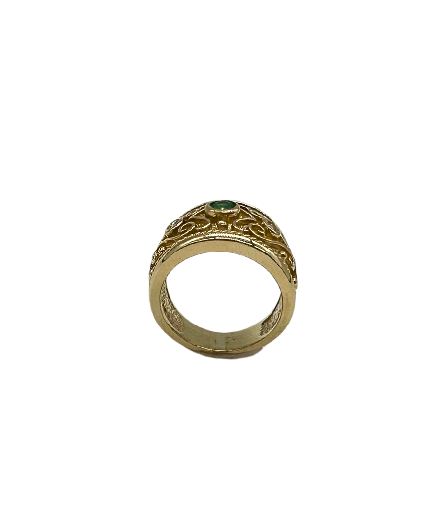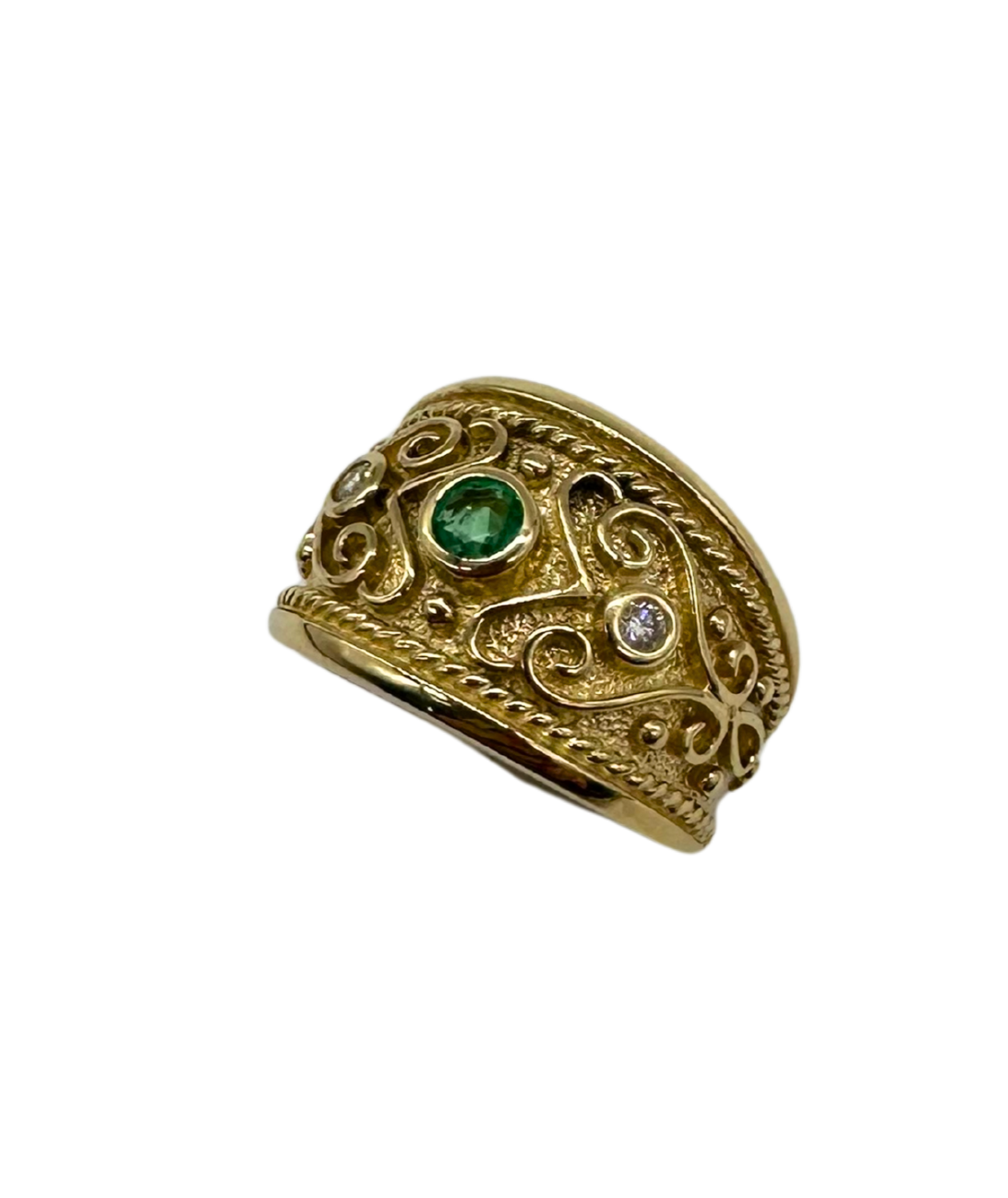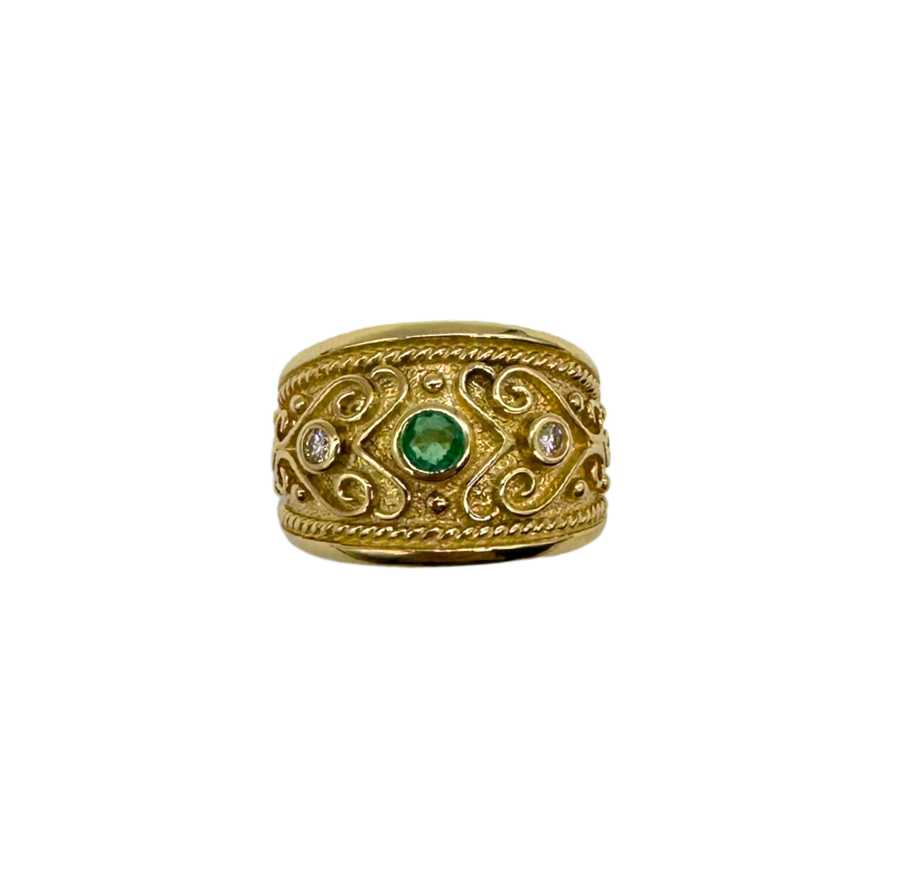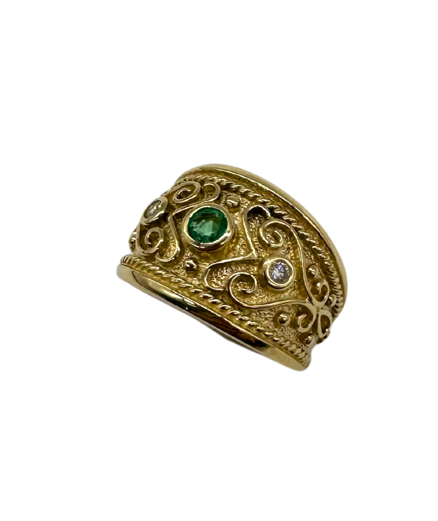 14k Yellow Gold Emerald & Diamond Filigree Band