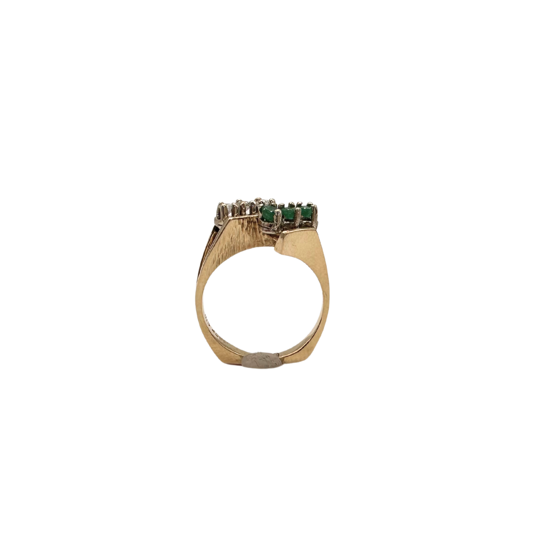 14k Yellow Gold Emerald and Diamond Euro Bypass Ring