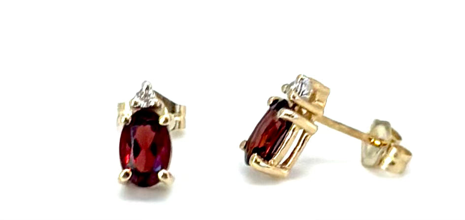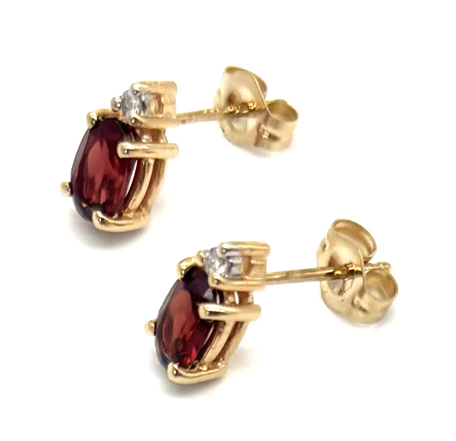 Add a touch of timeless elegance with these beautiful garnet stud earrings. Crafted in 14K yellow gold, each earring features a rich oval-shaped garnet accented with delicate diamond highlights for just the right amount of sparkle. Their classic stud design makes them perfect for both everyday wear and special occasions.