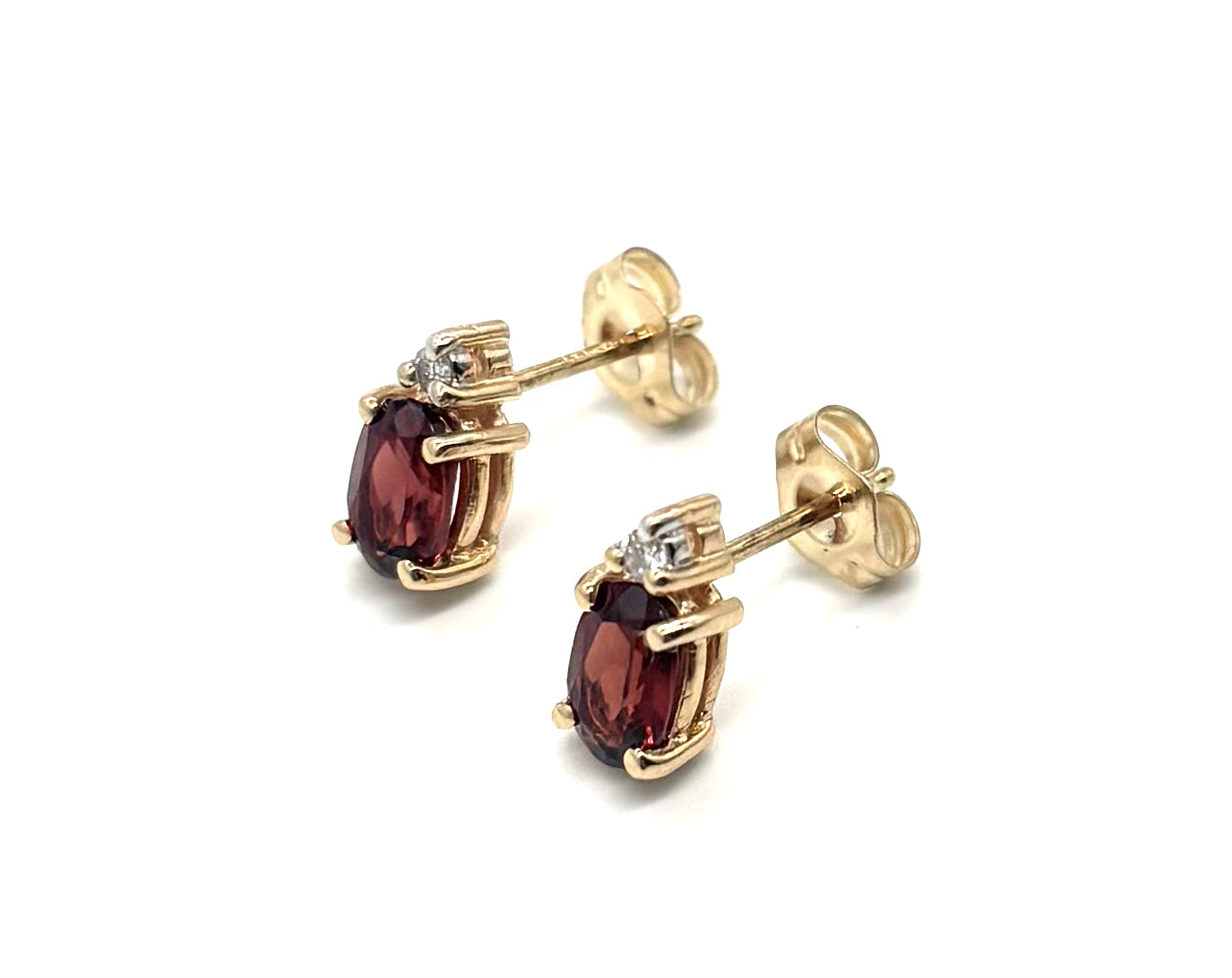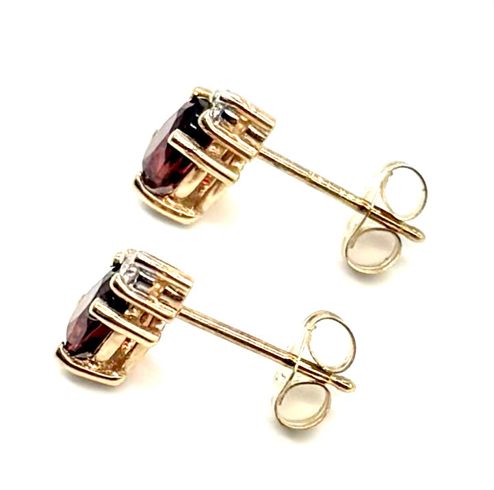 14K Yellow Gold Garnet & Diamond Accent Stud Earrings – Pre-Owned