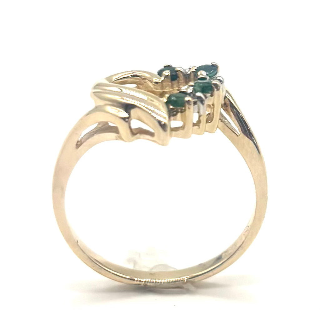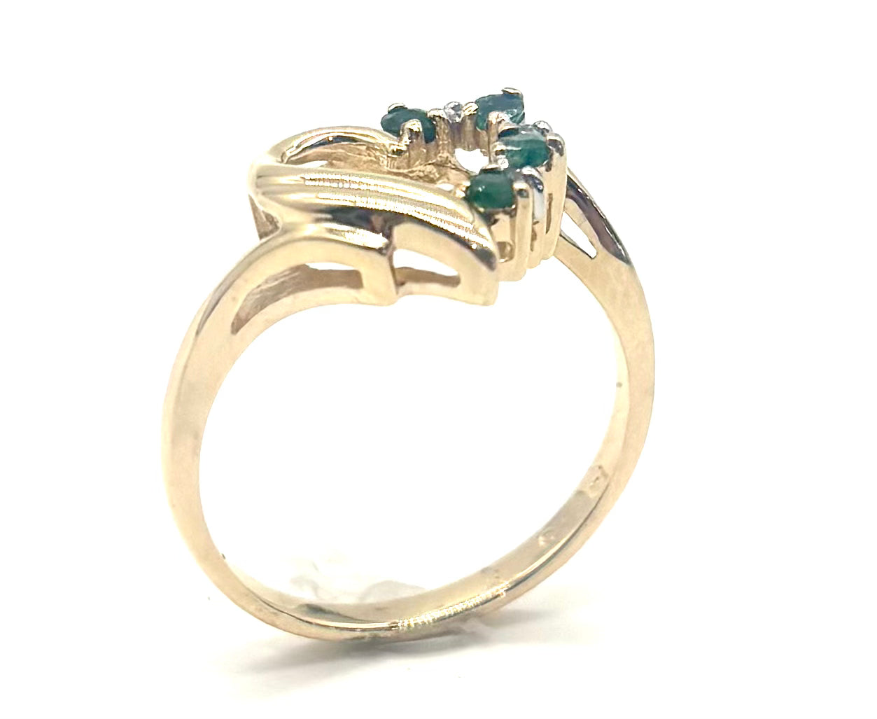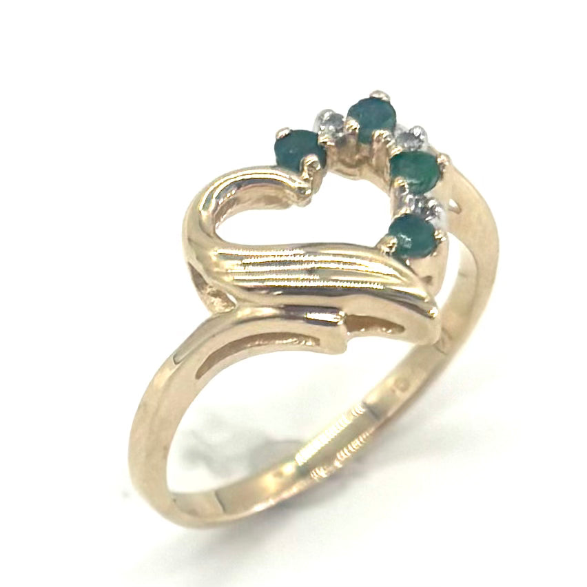 14K Yellow Gold Cutout Heart Bypass Ring with Emeralds & Diamonds – Size 6.5