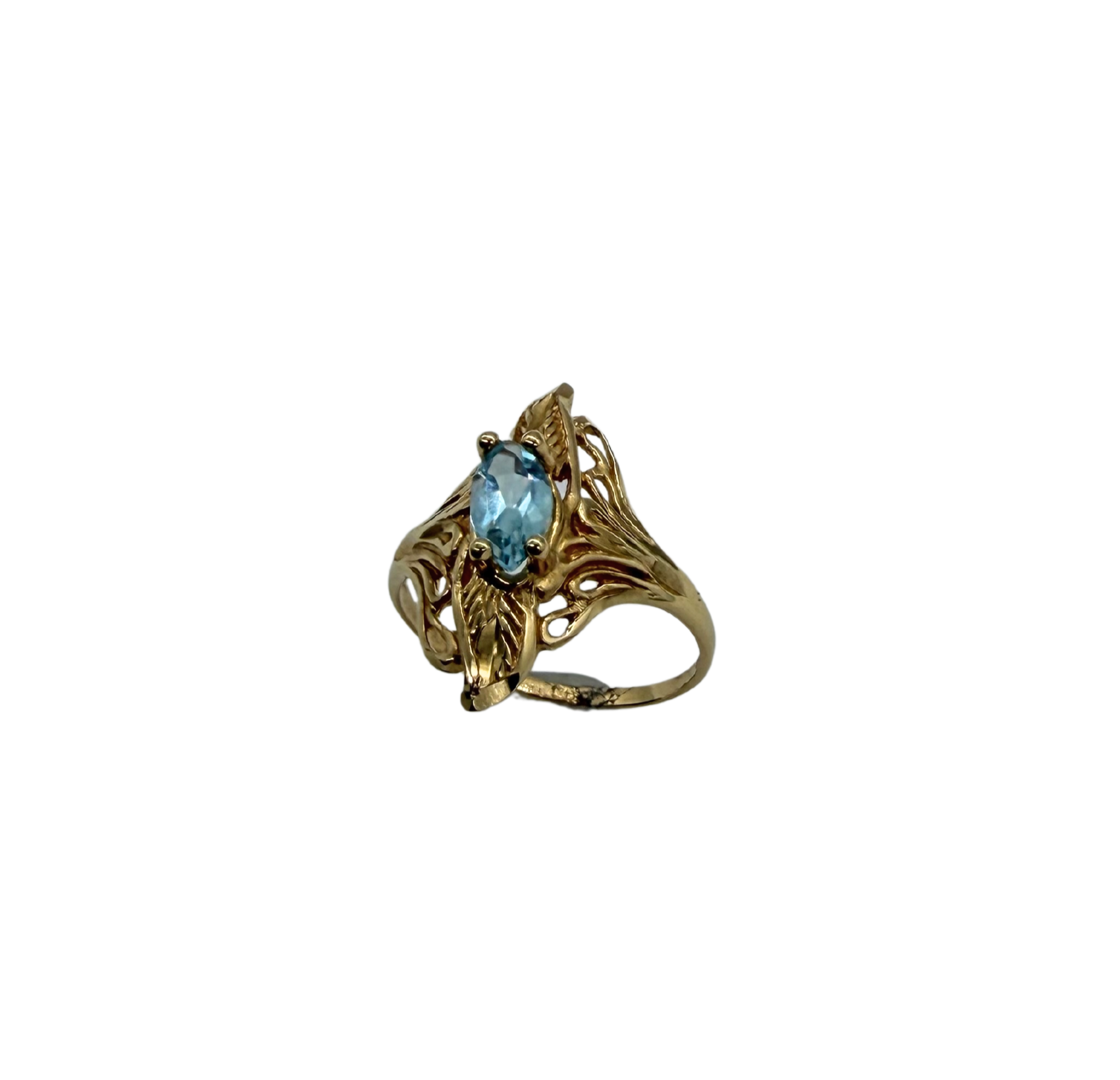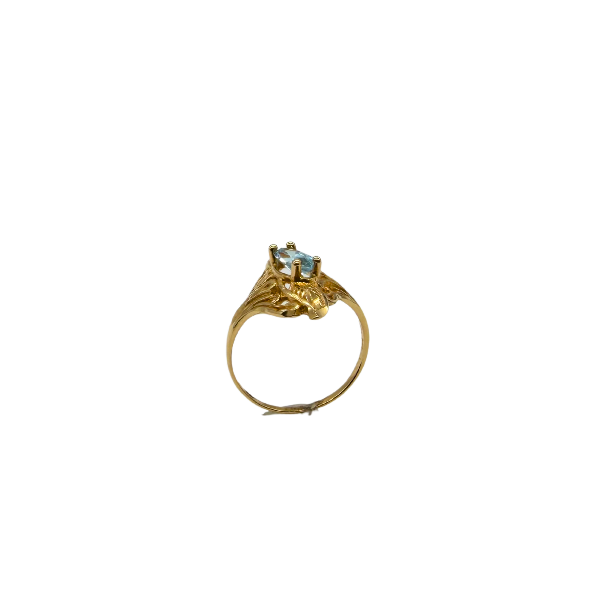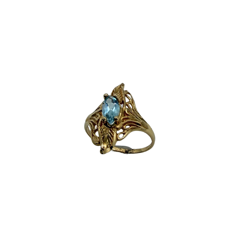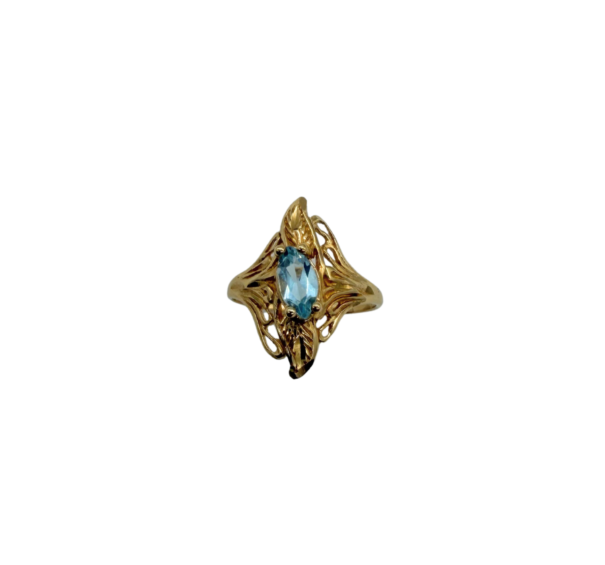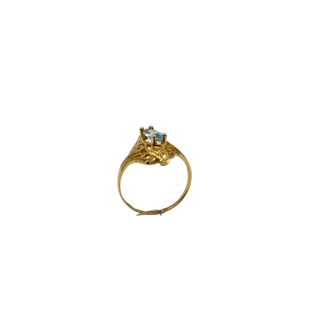 14k Yellow Gold Marquise Aquamarine Diamond-Cut Etched Free-Form Ring