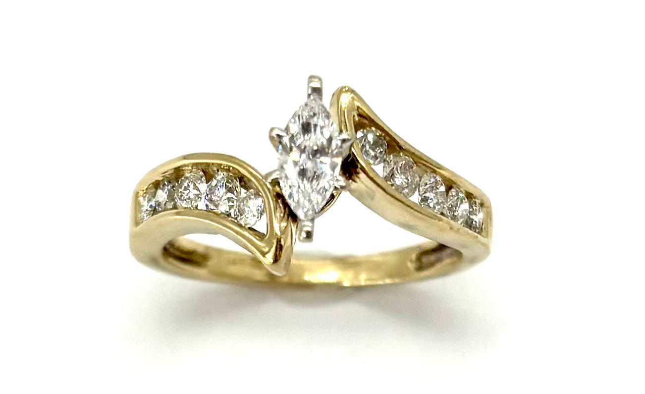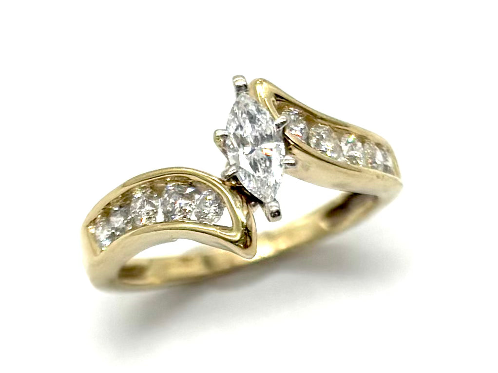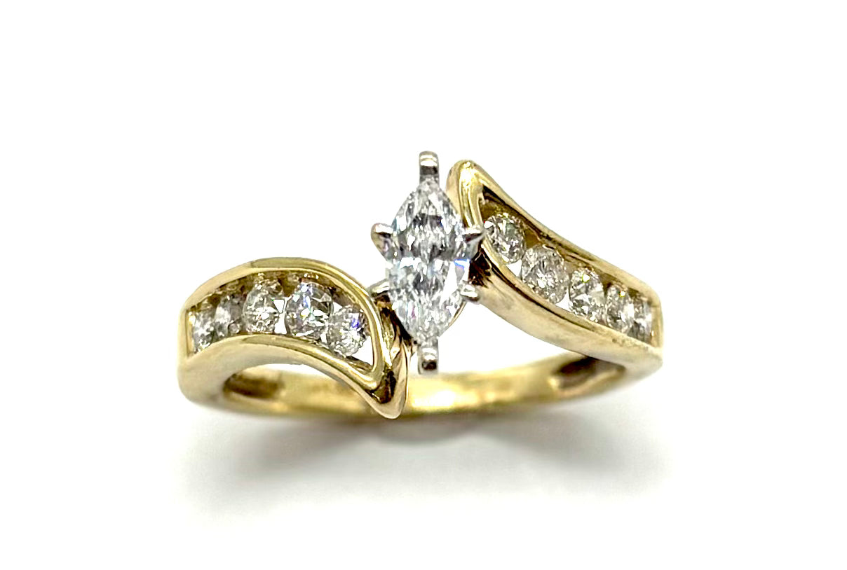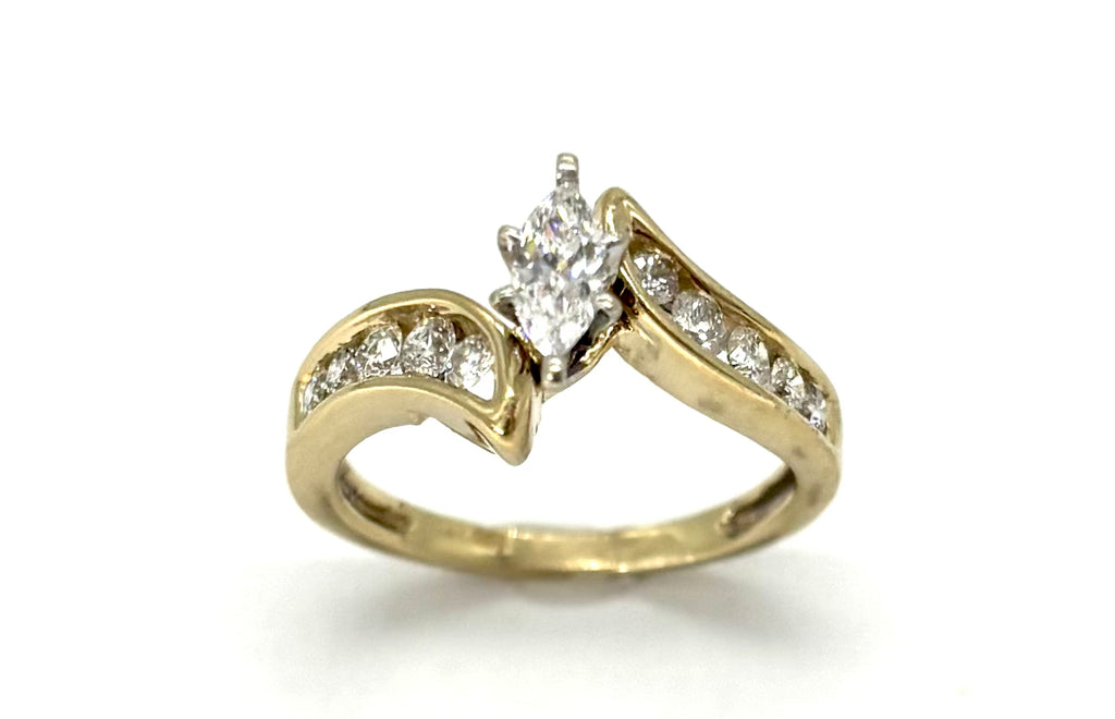 π 14K Yellow Gold Marquise Diamond Bypass Ring β Size 7