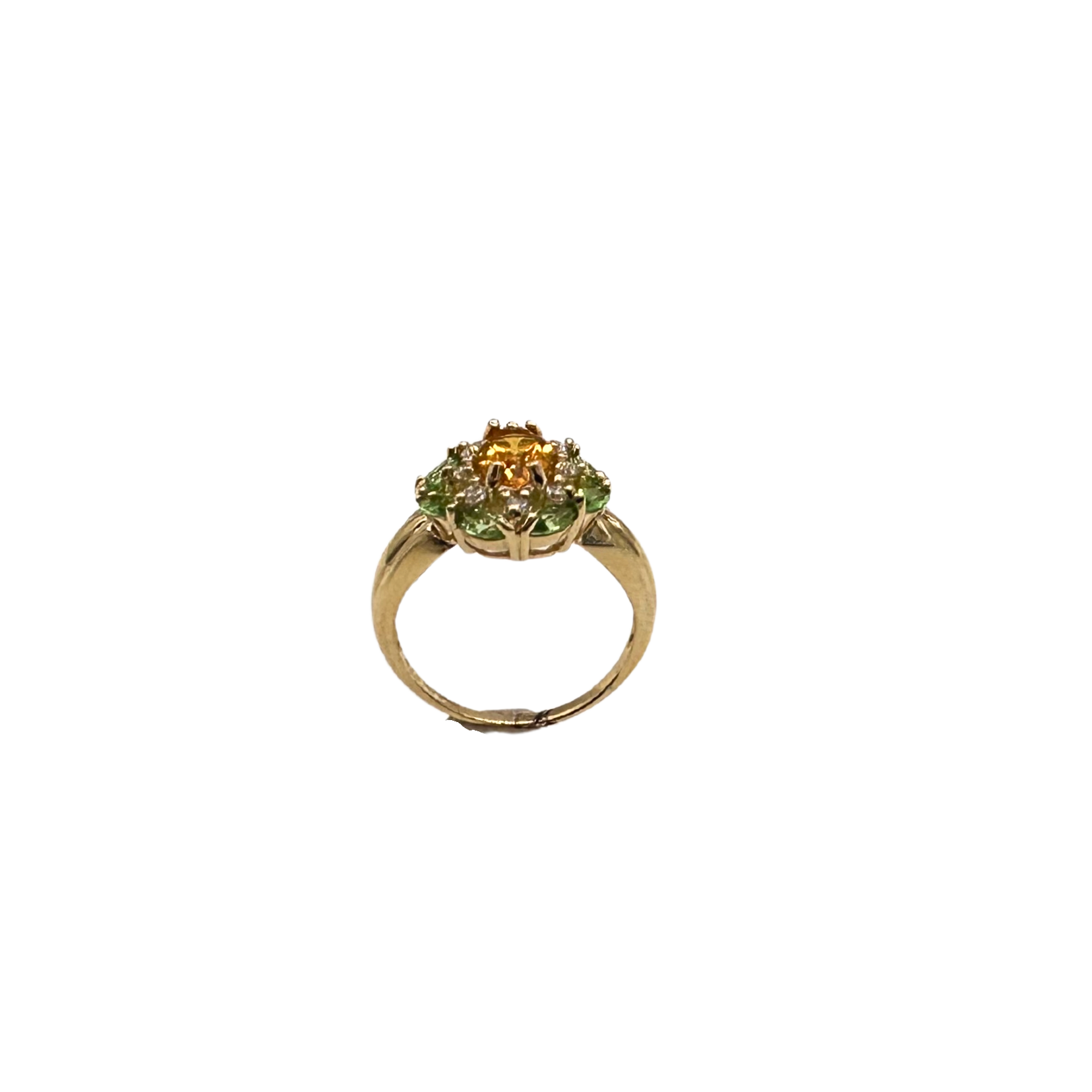 • Gemstones: Oval Citrine (center), Green Quartz (halo), Diamond Accents