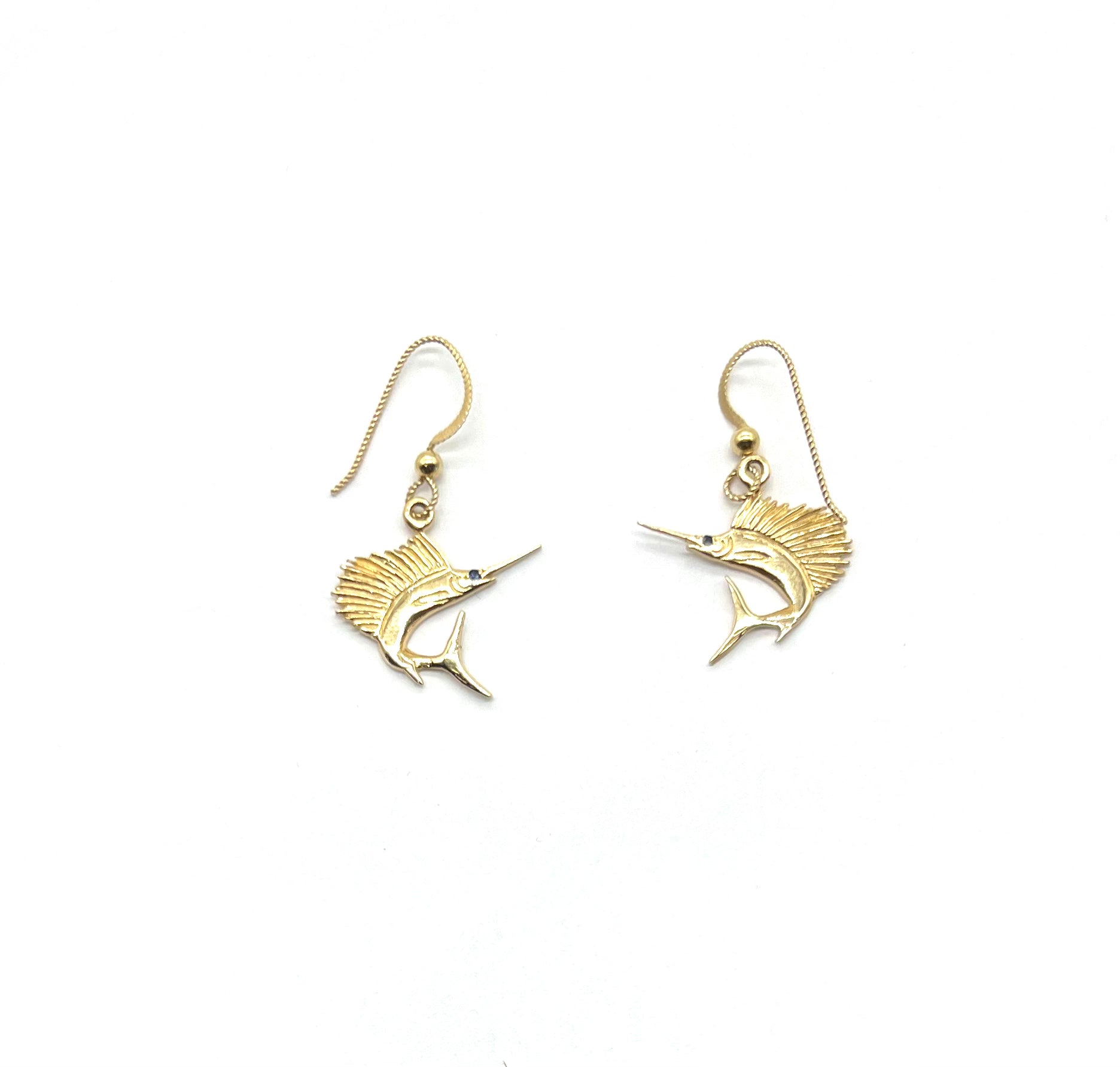 14k Yellow Gold Sailfish Dangle Earrings