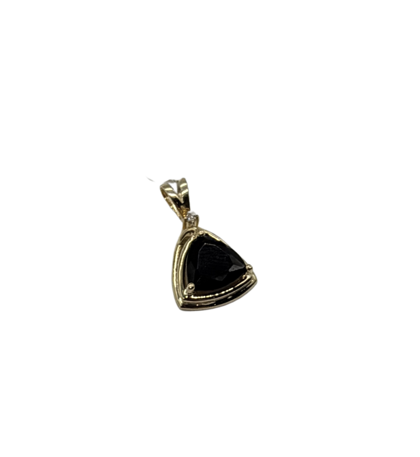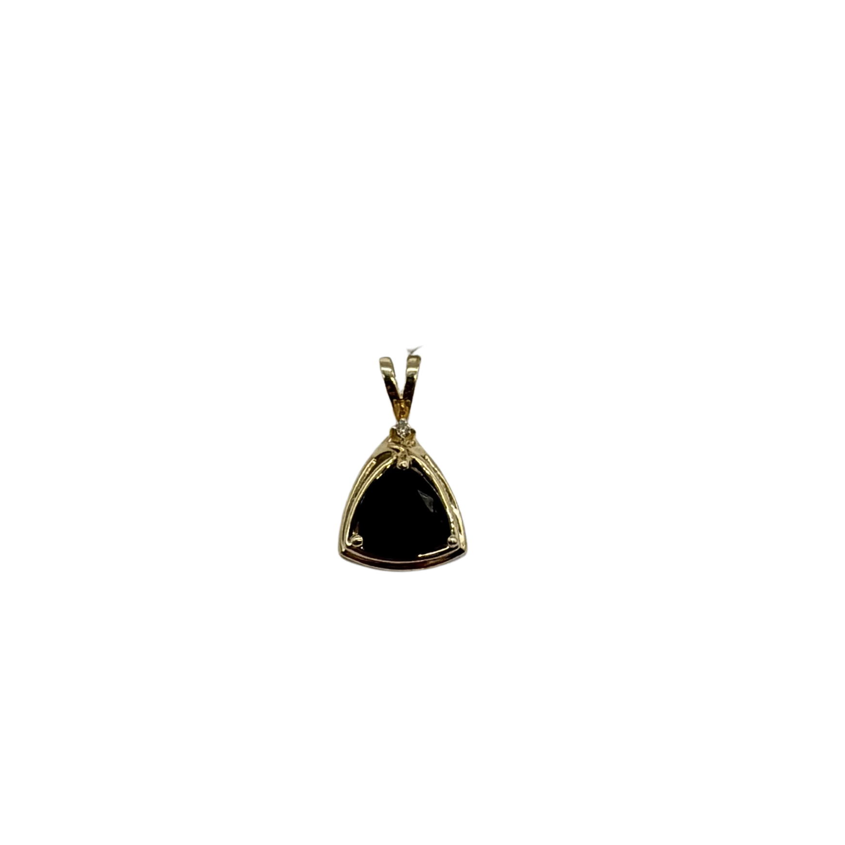14k Yellow Gold Trillion Black Onyx Diamond Accent Pendant