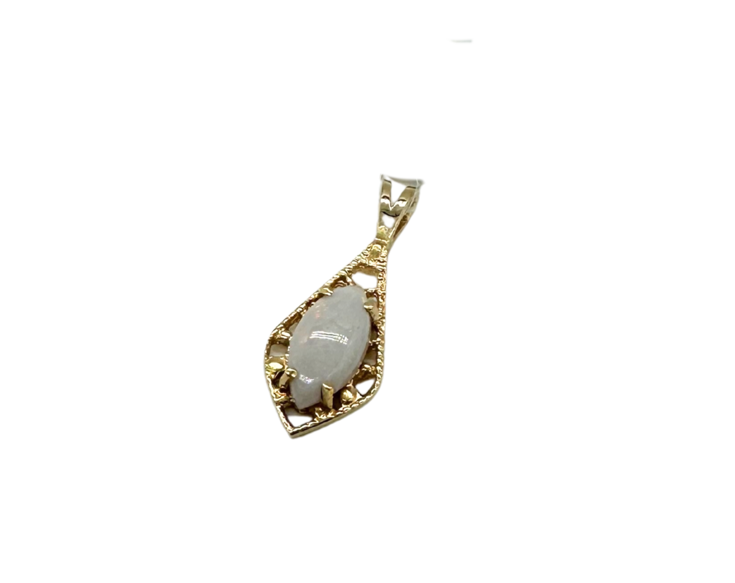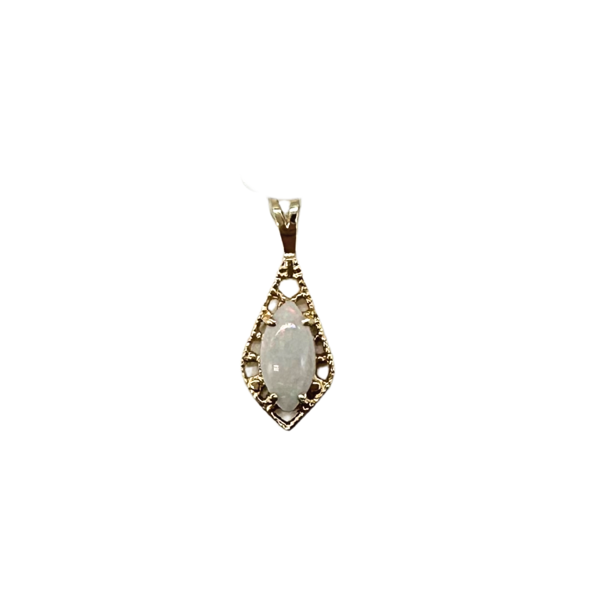 14k Yellow Gold White Opal Marquise Cabochon Pendant