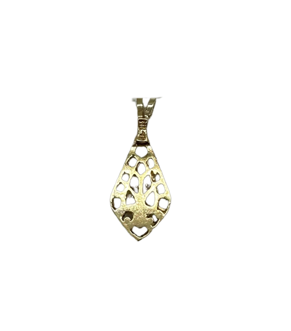 This stunning 14k yellow gold pendant features a beautifully framed marquise-cut white opal cabochon, radiating with soft iridescence and natural charm. The intricate openwork border adds vintage elegance to the teardrop silhouette, making it a perfect piece to elevate any neckline.