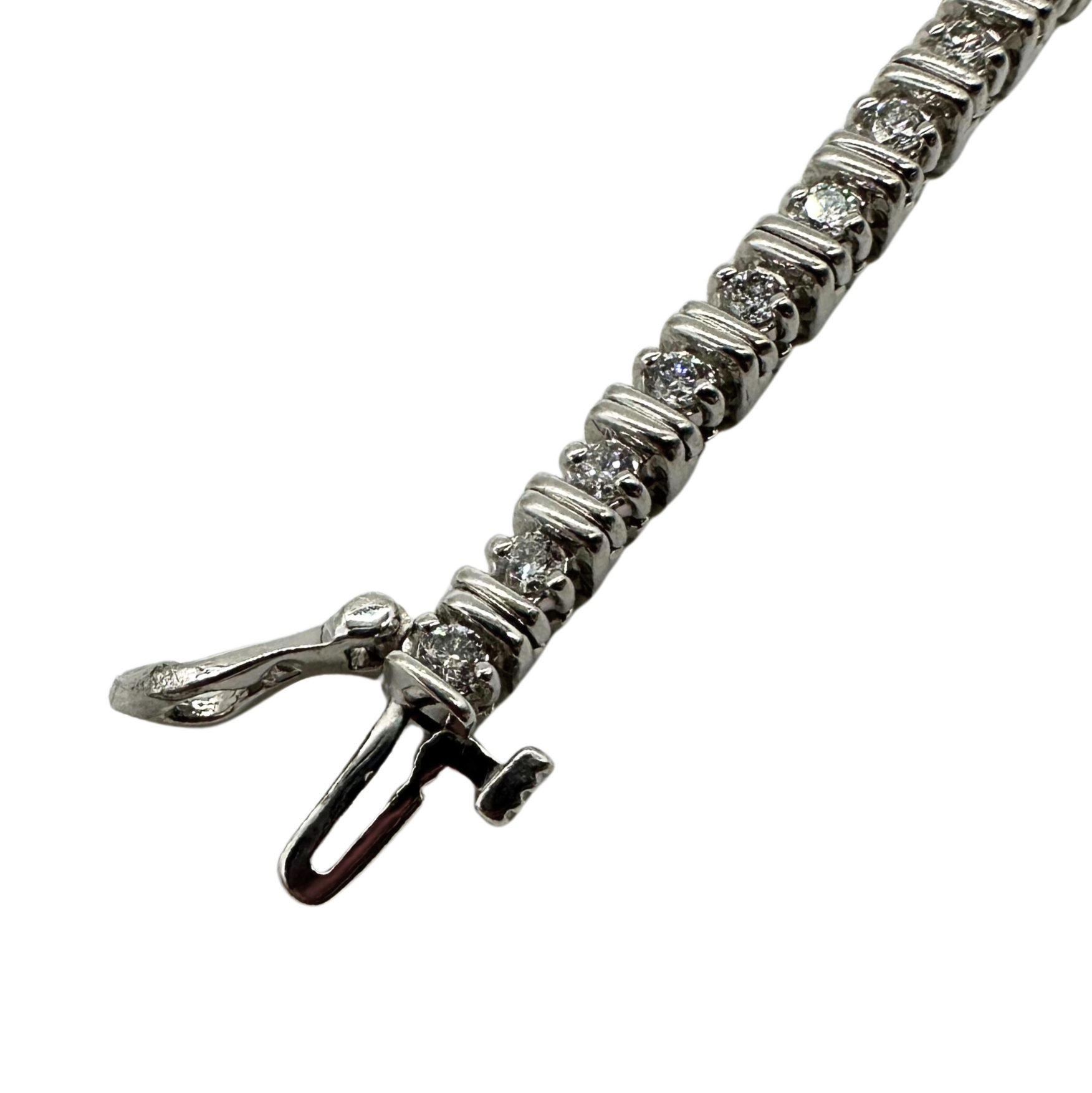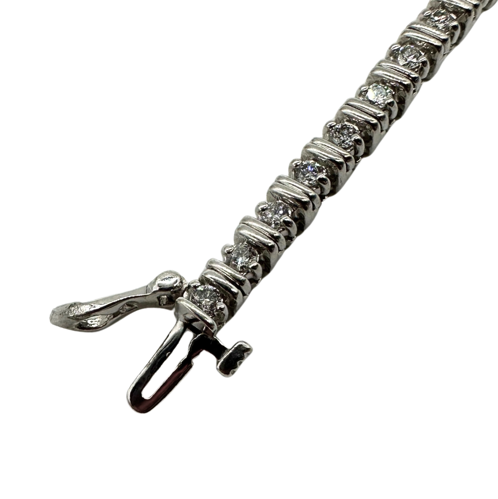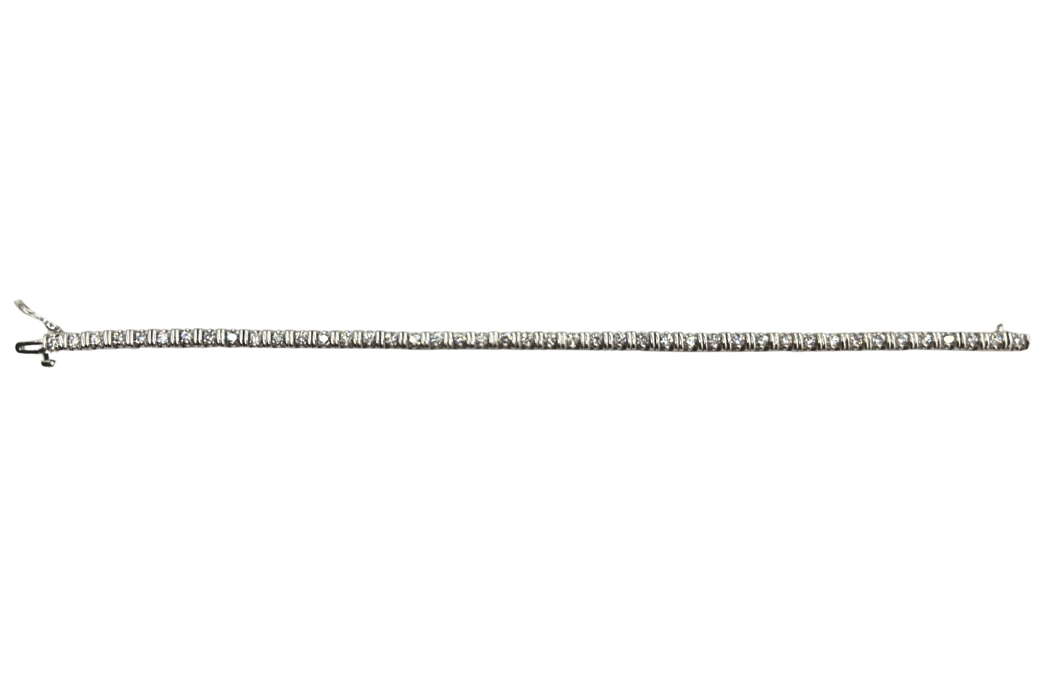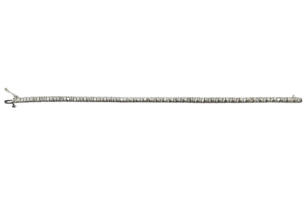 18k White Gold Double Bar Diamond Tennis Bracelet - 7"