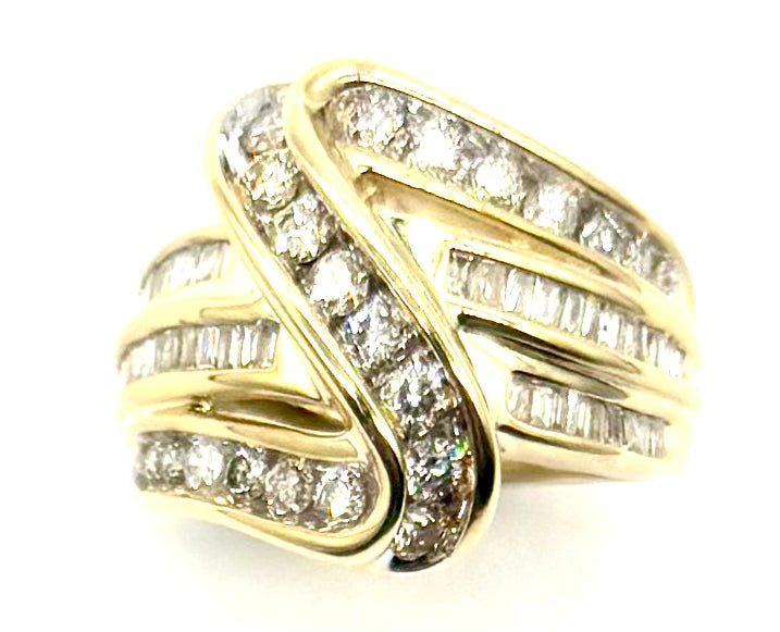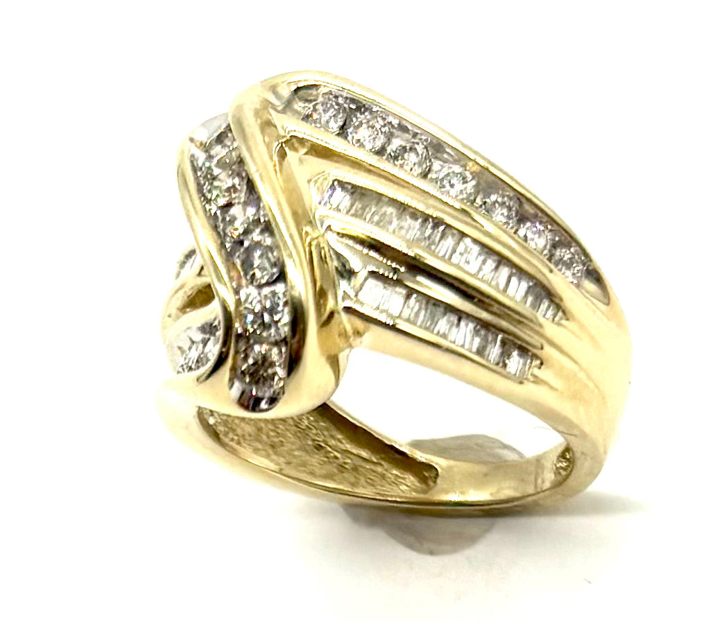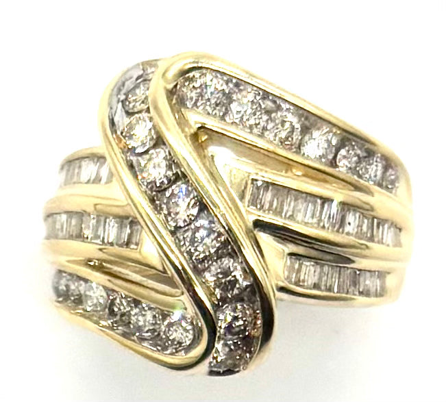 1CTW Diamond 3-Row Crossover Ring – 10K Yellow Gold – Size 5 1/4