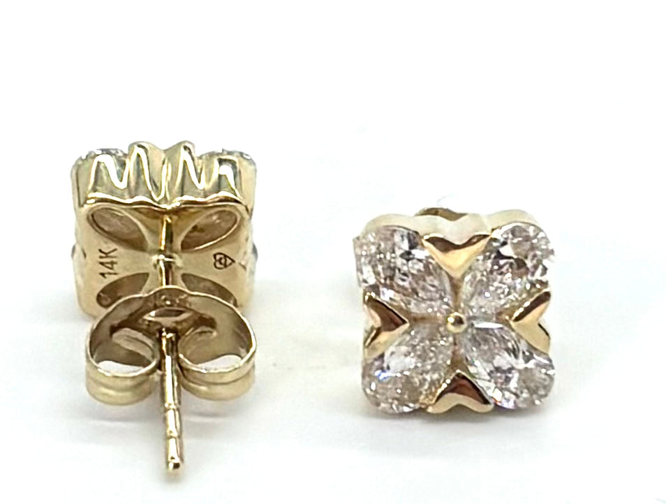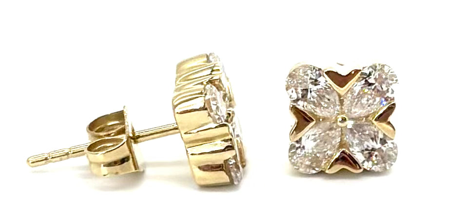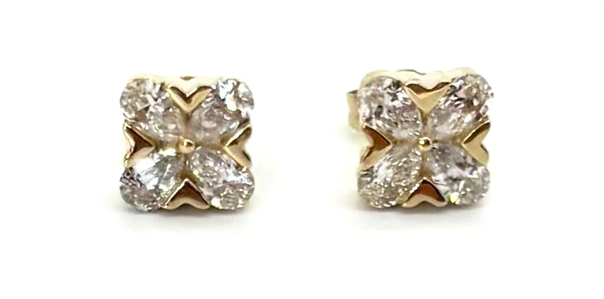 Diamond Shape: 4 pear-shaped diamonds per earring, arranged in a square/floral motif