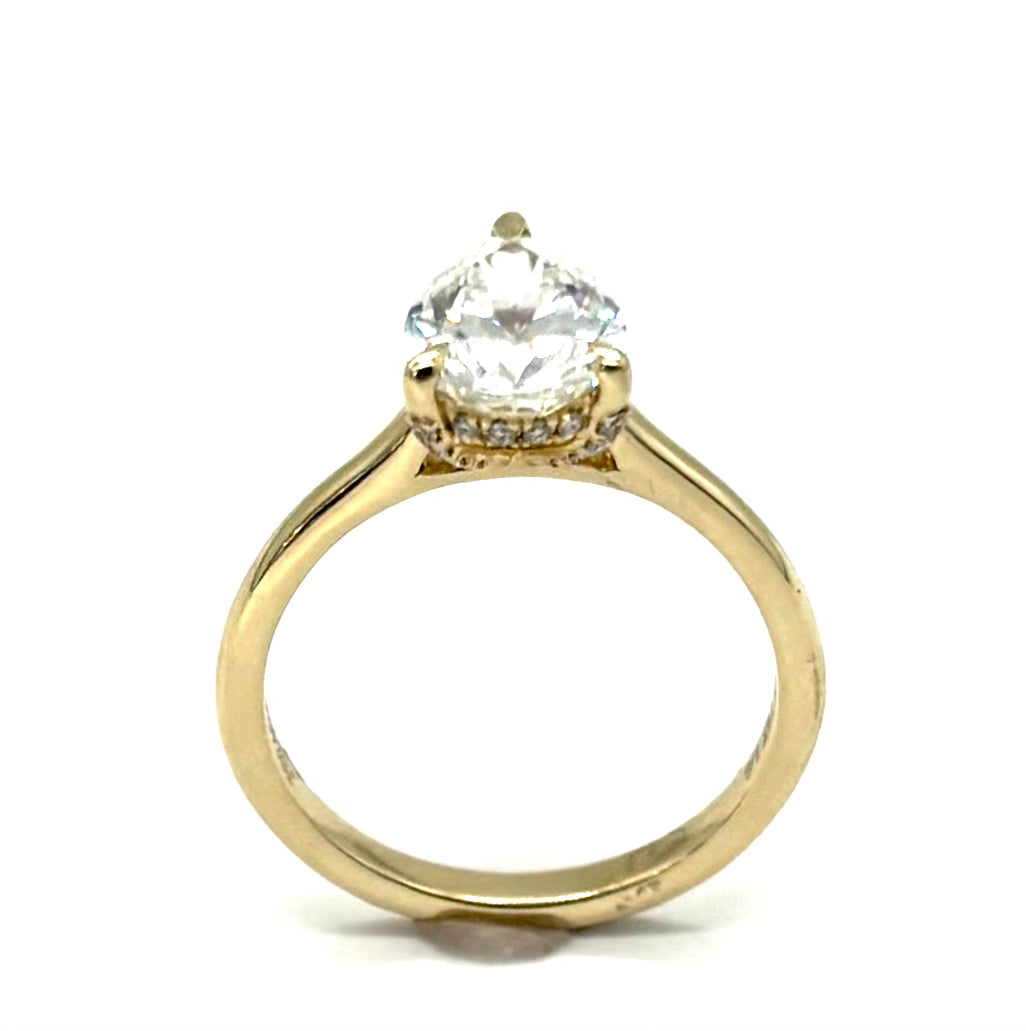 A timeless silhouette with elegant detail, this stunning cathedral ring showcases a brilliant pear-shaped lab grown diamond, enhanced by a delicate hidden halo for added sparkle from every angle. Crafted in rich 14K yellow gold, the elevated cathedral setting offers both beauty and durability, making it a perfect choice for an engagement ring or special occasion piece.