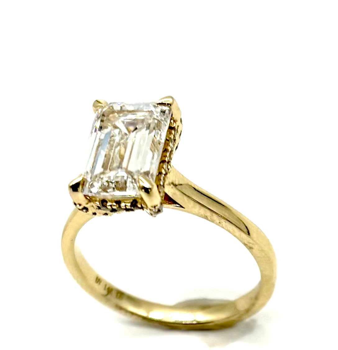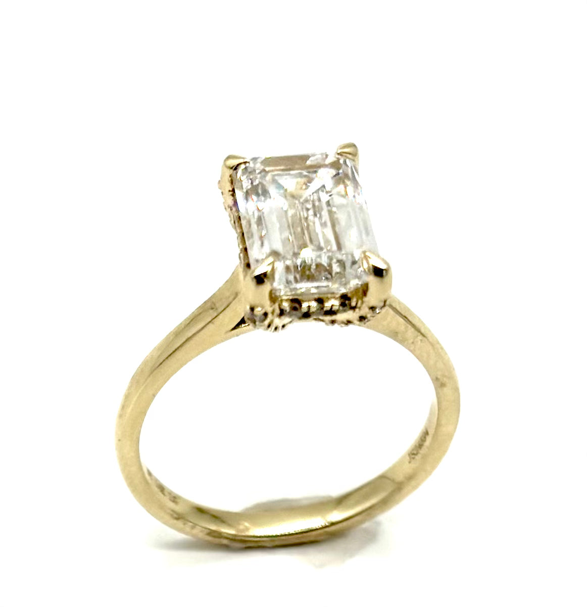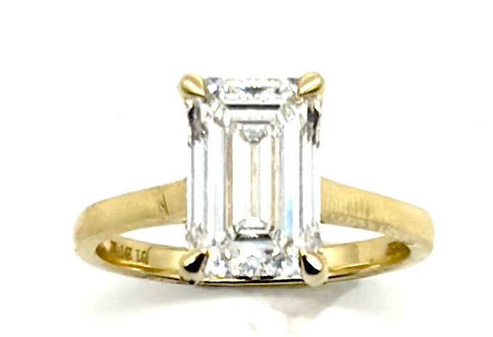 3.34CTW Emerald Cut Lab Grown Diamond Ring- 14K Yellow Gold