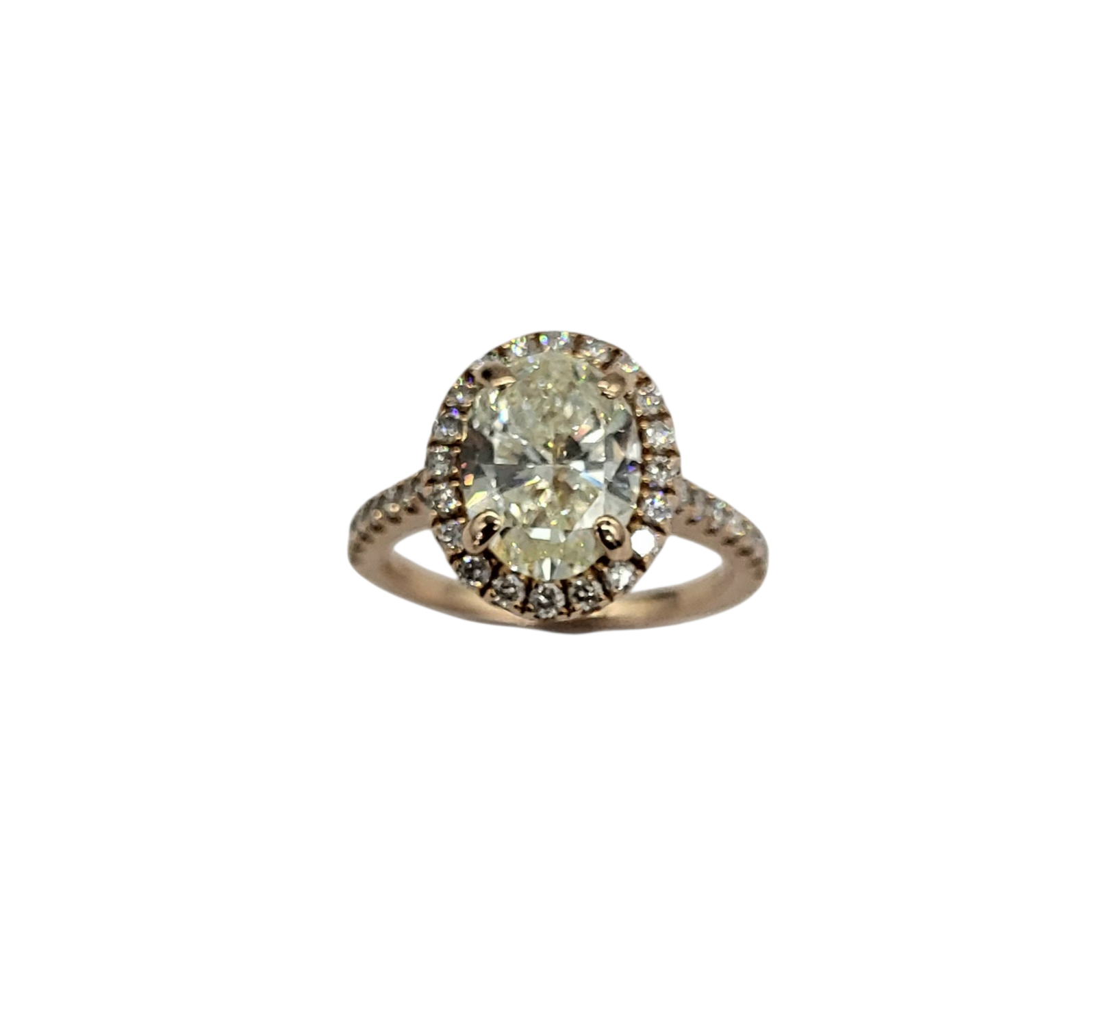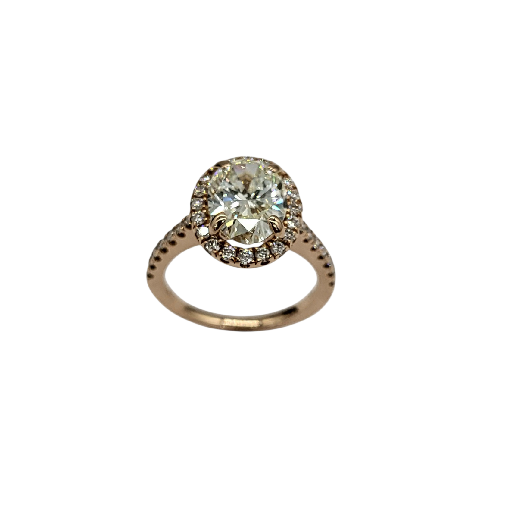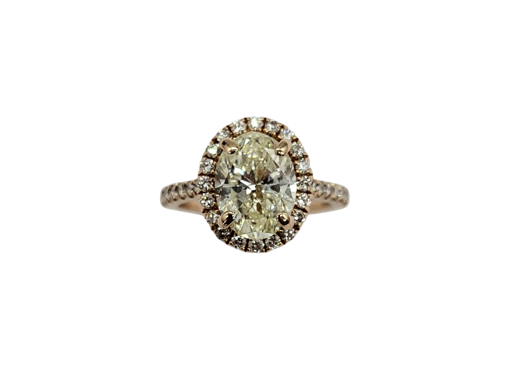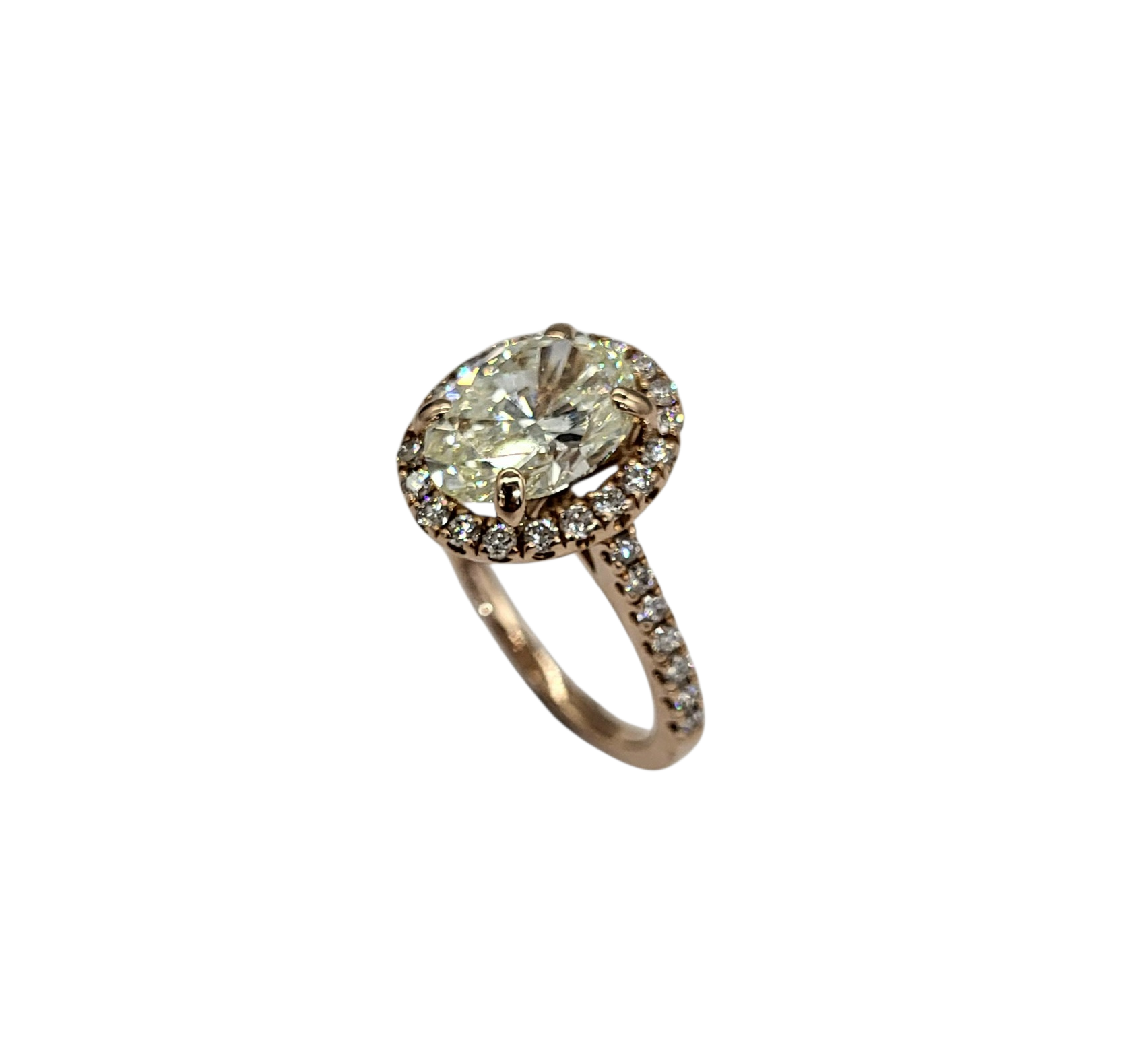 14K Rose Gold 3 Carat Total Weight GIA Certified Oval Diamond Ring