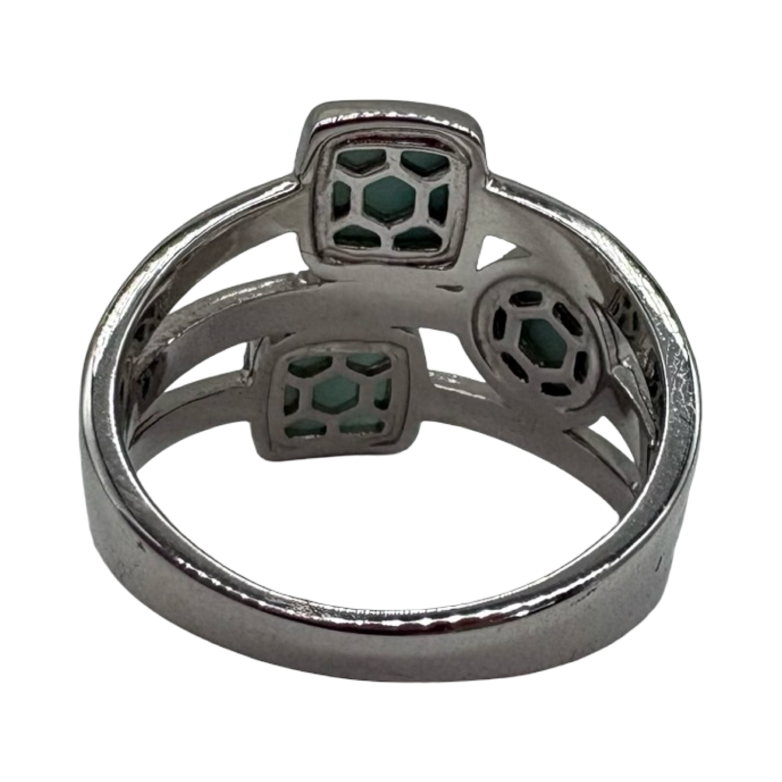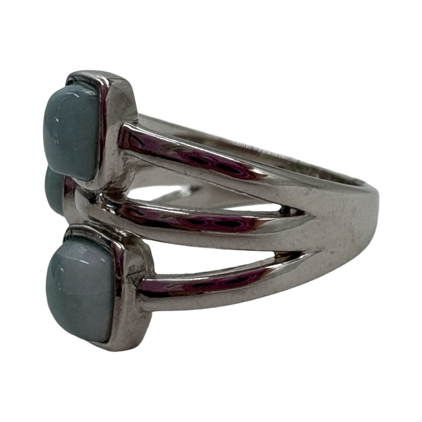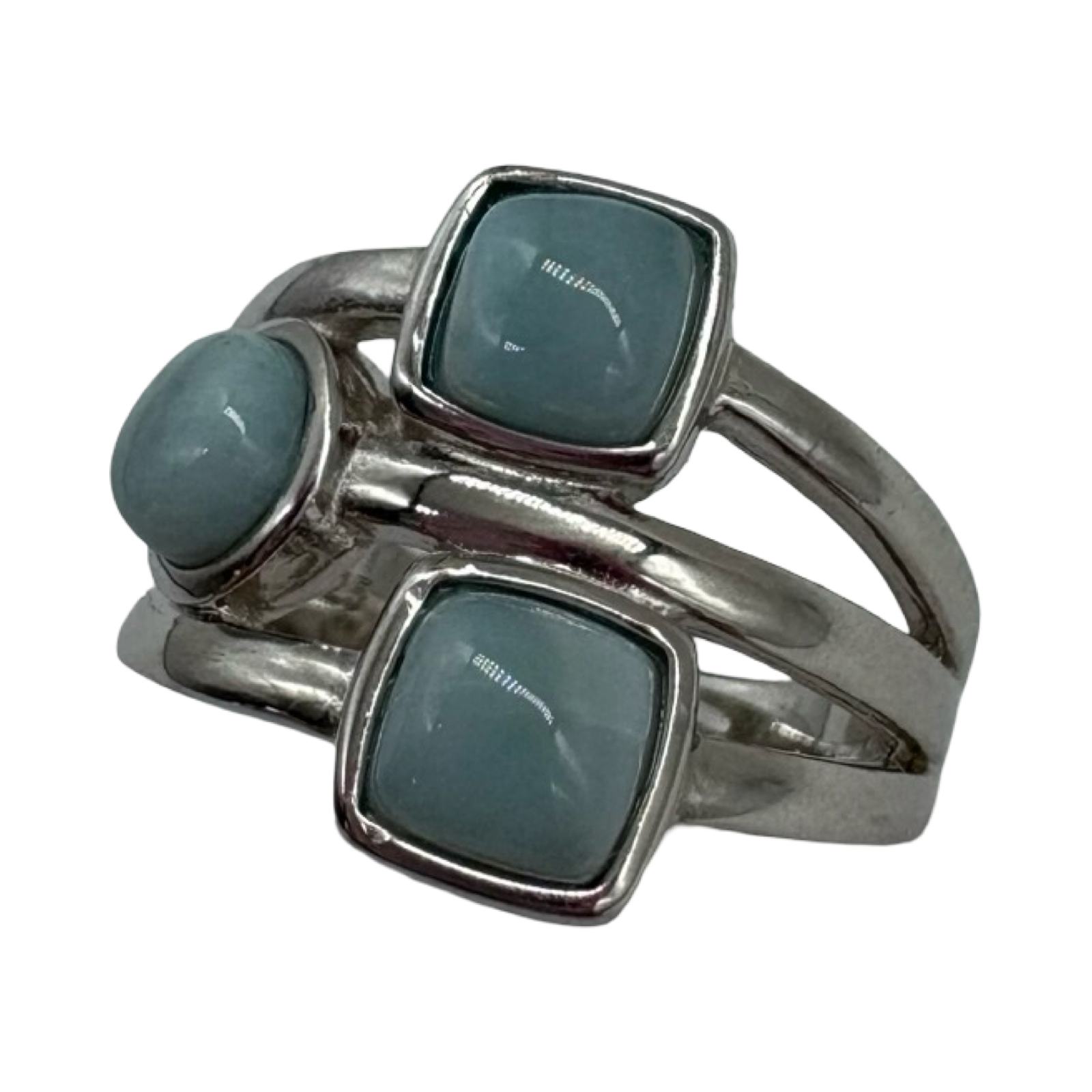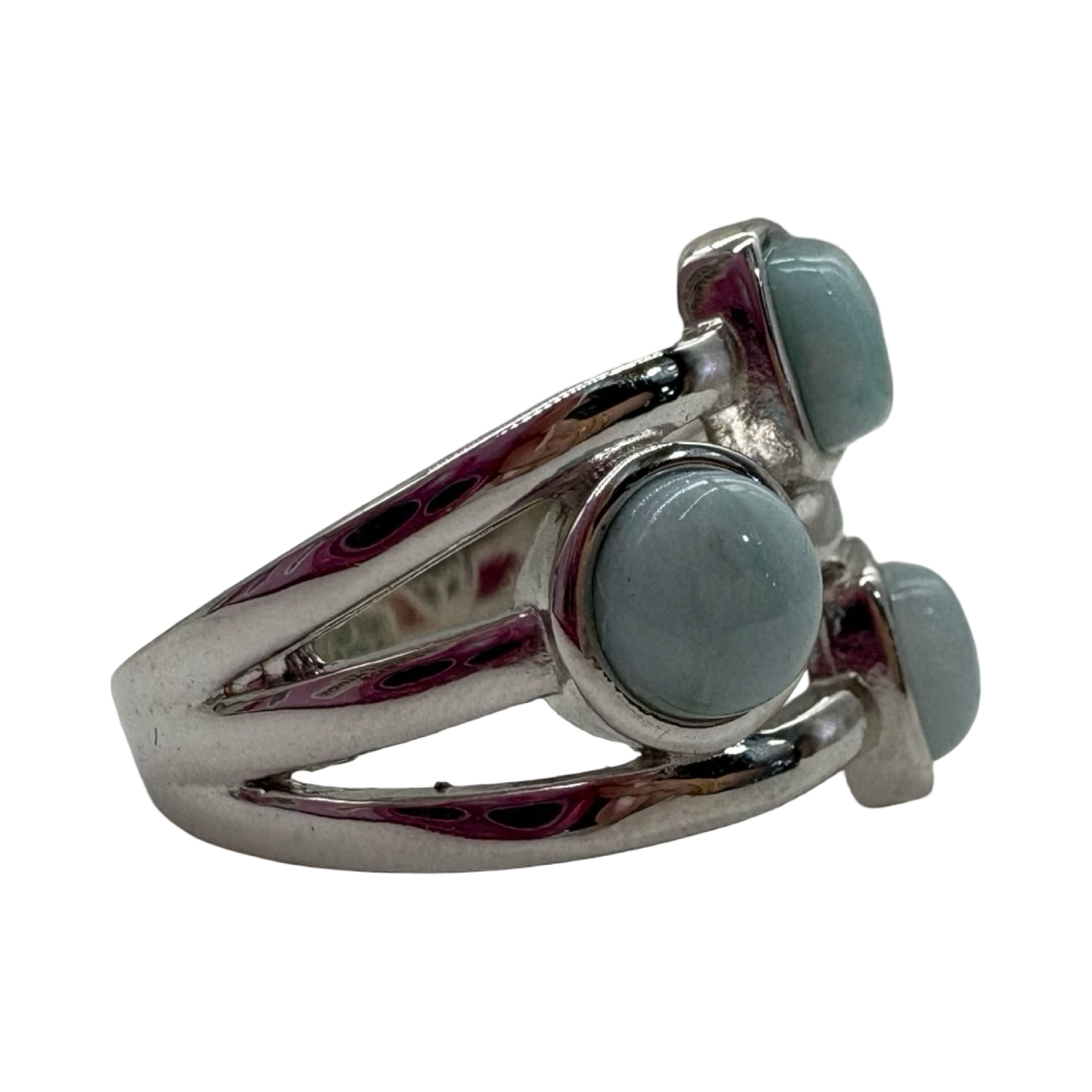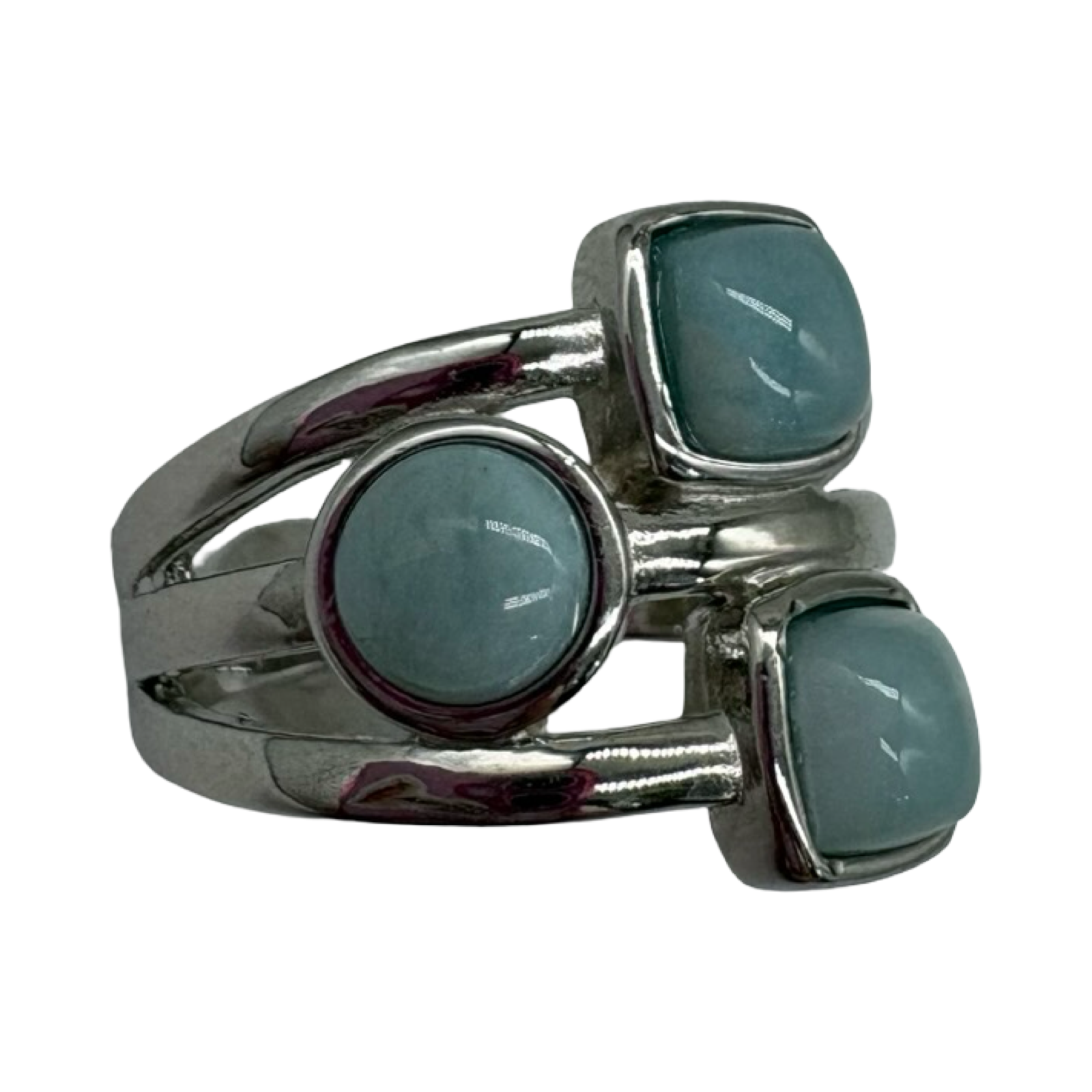 .925 Sterling Silver Larimar Multi Shape 3 Row Ring