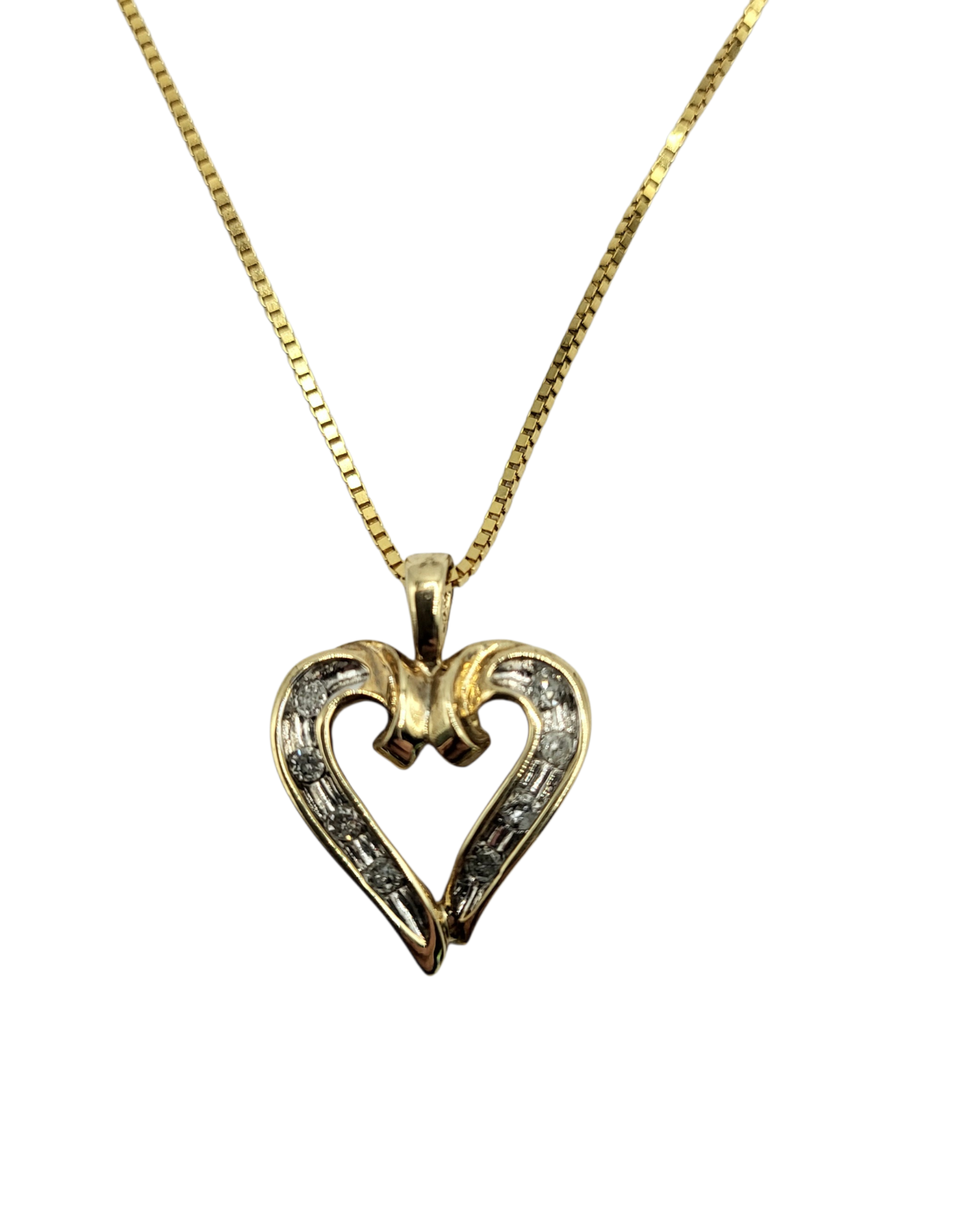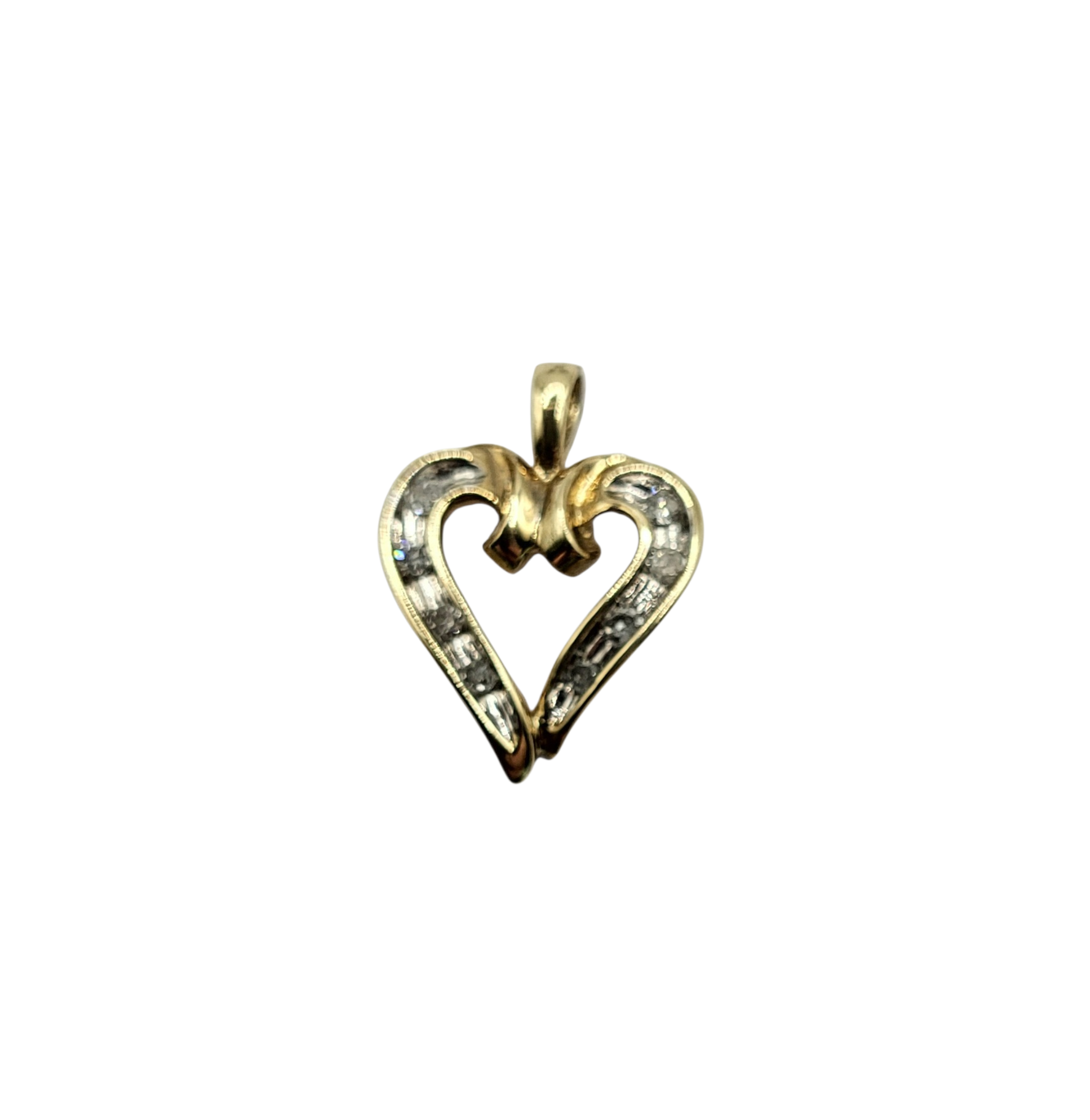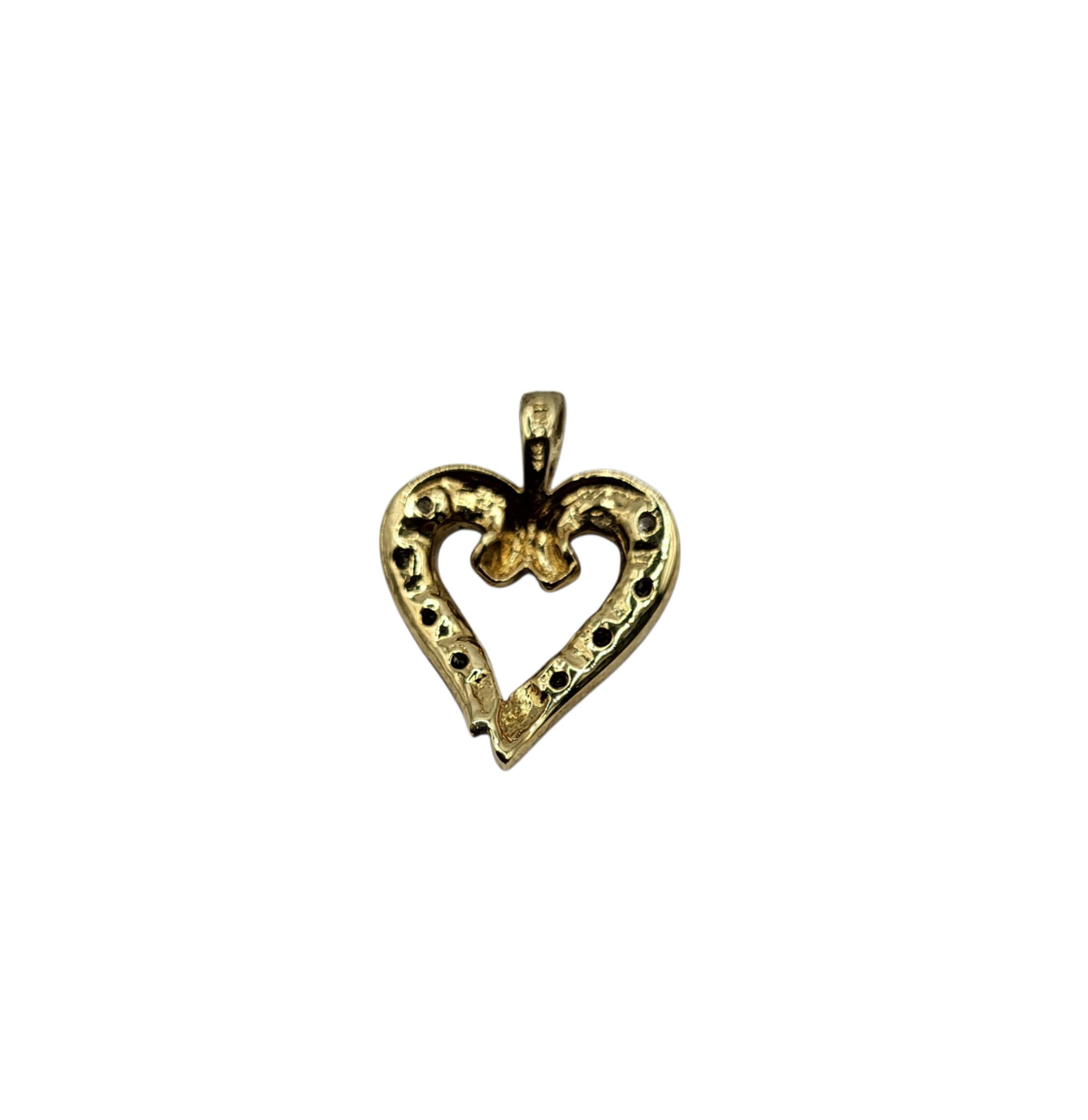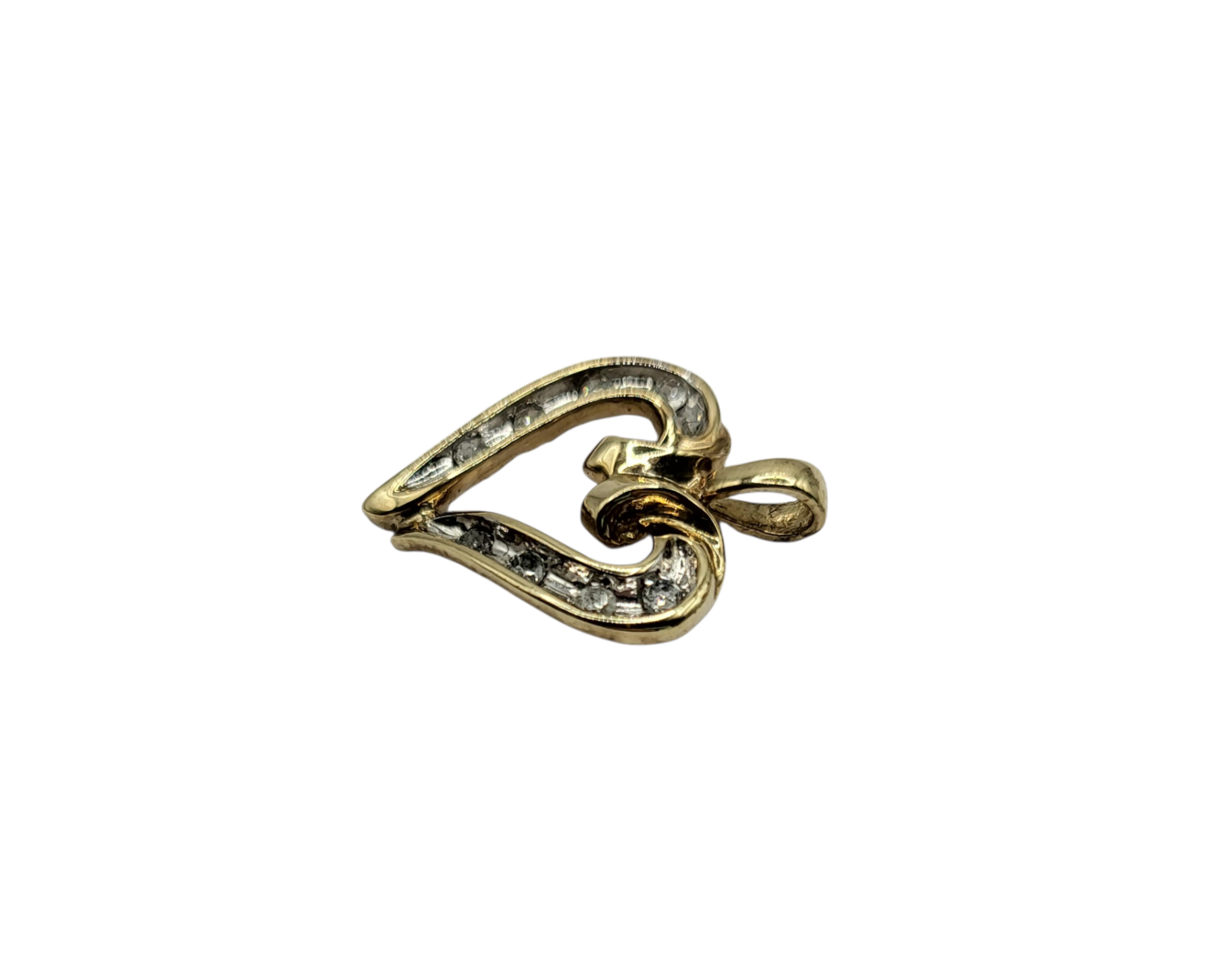 10K Yellow Gold Diamond Chip and Gold Heart Pendant