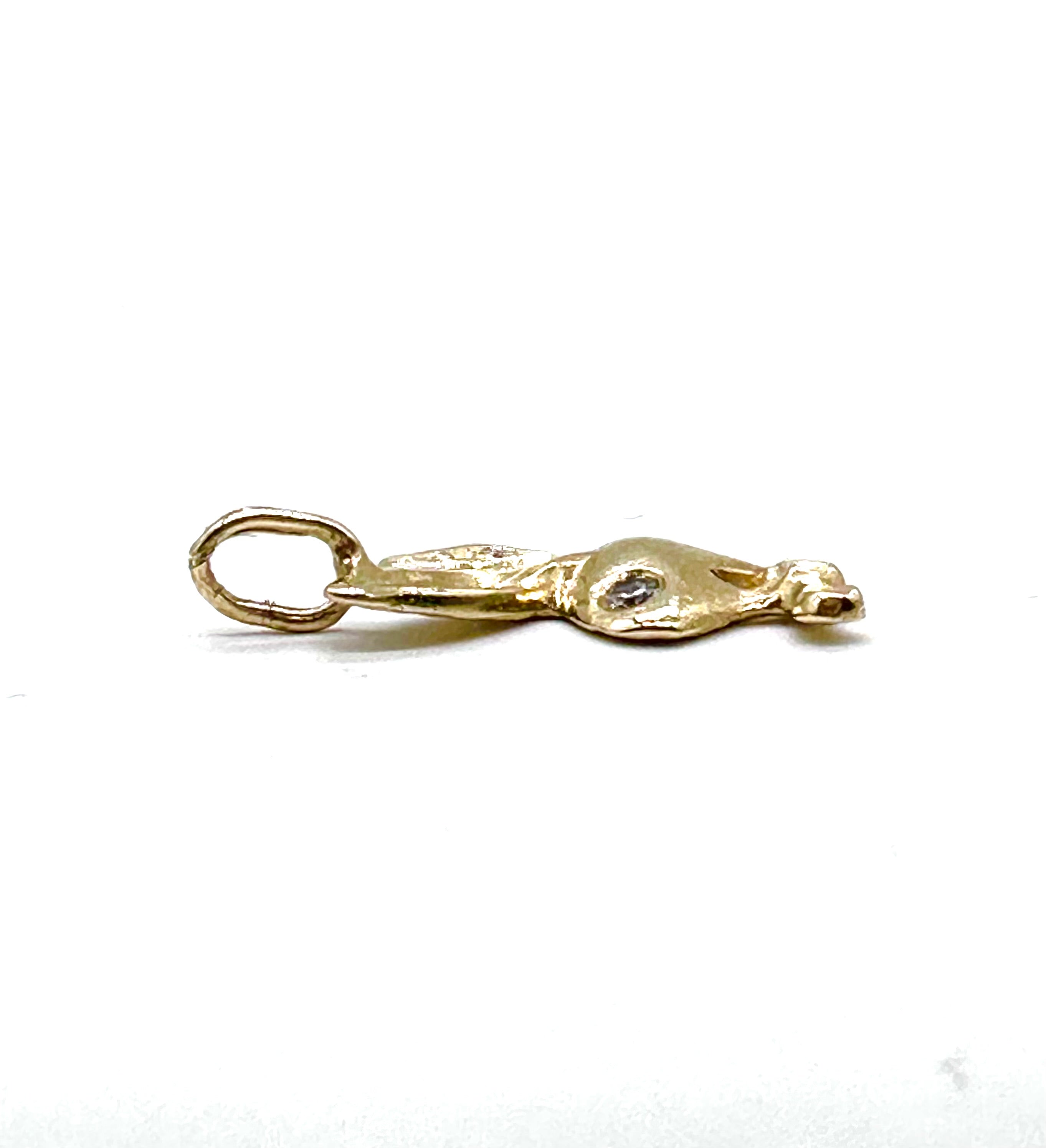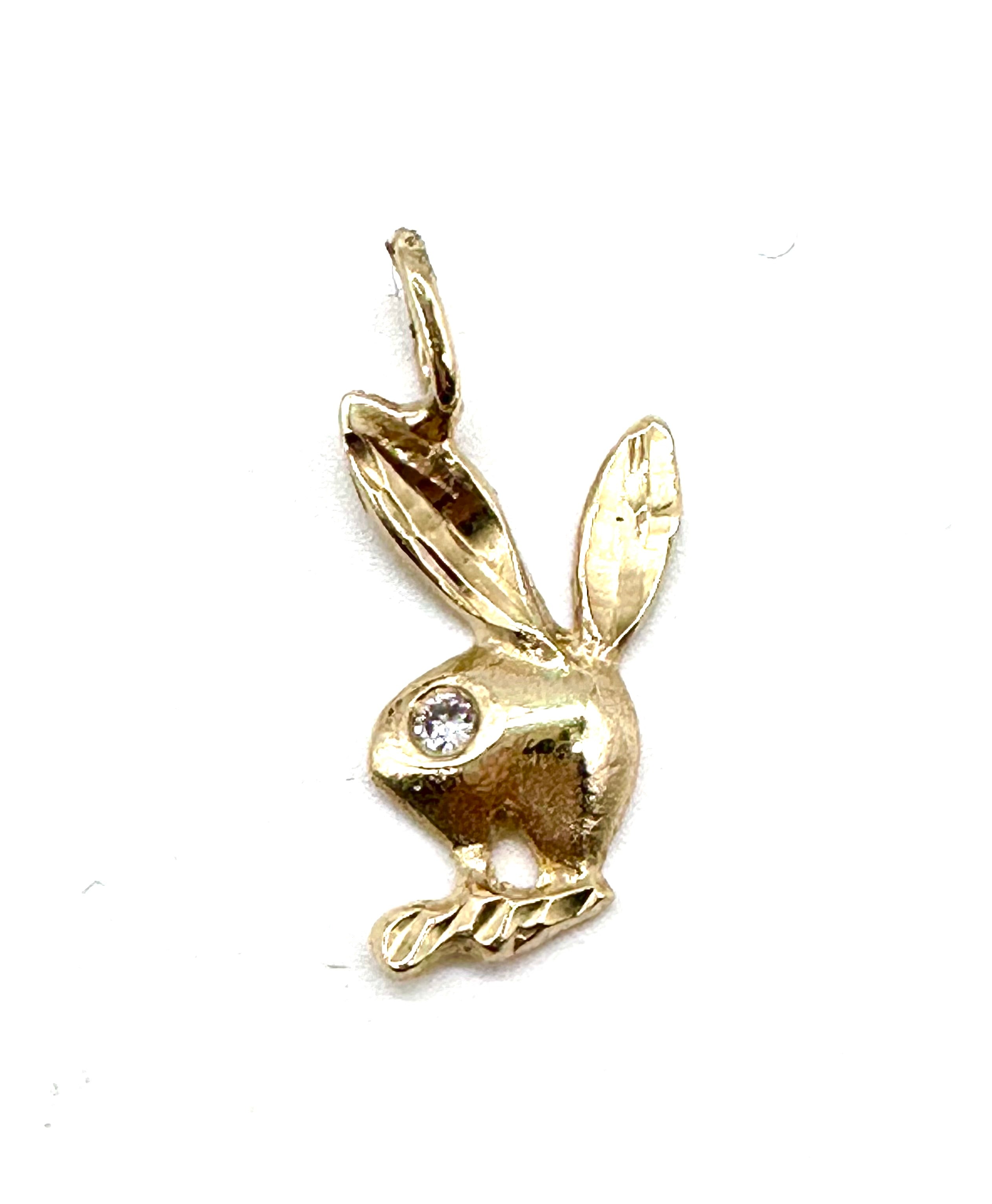 This Playboy bunny charm/pendant is set with a three point diamond in 14 karat yellow gold.