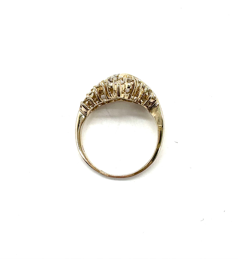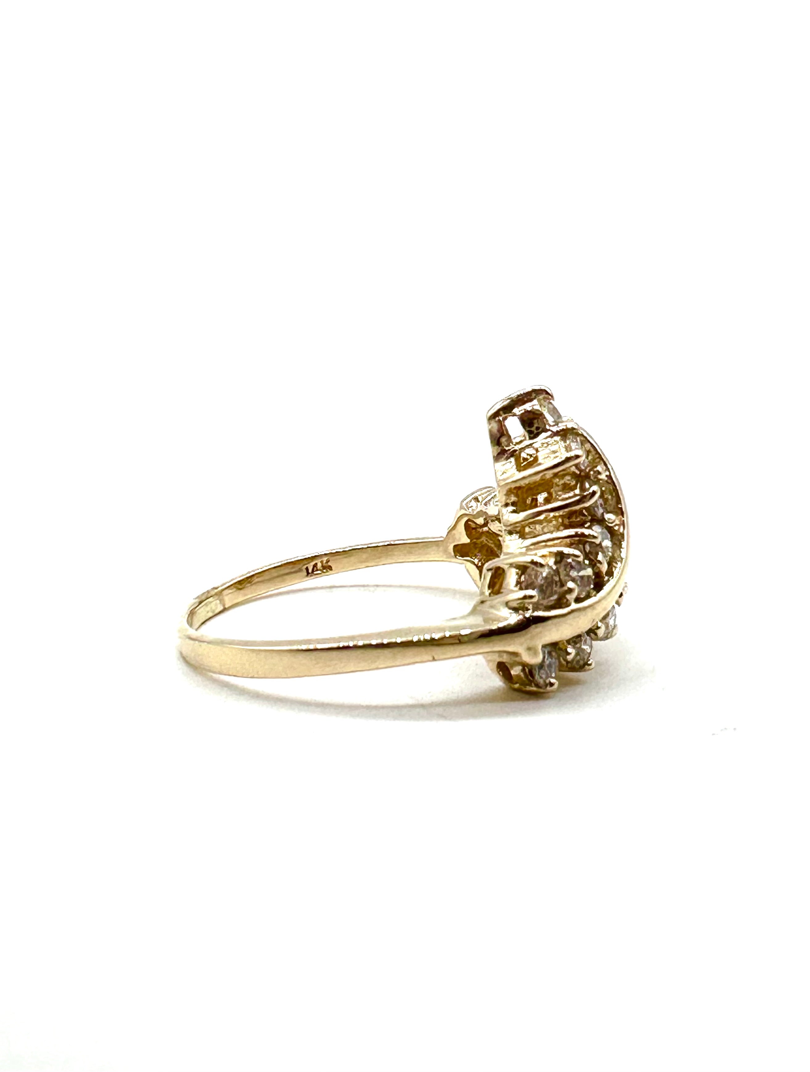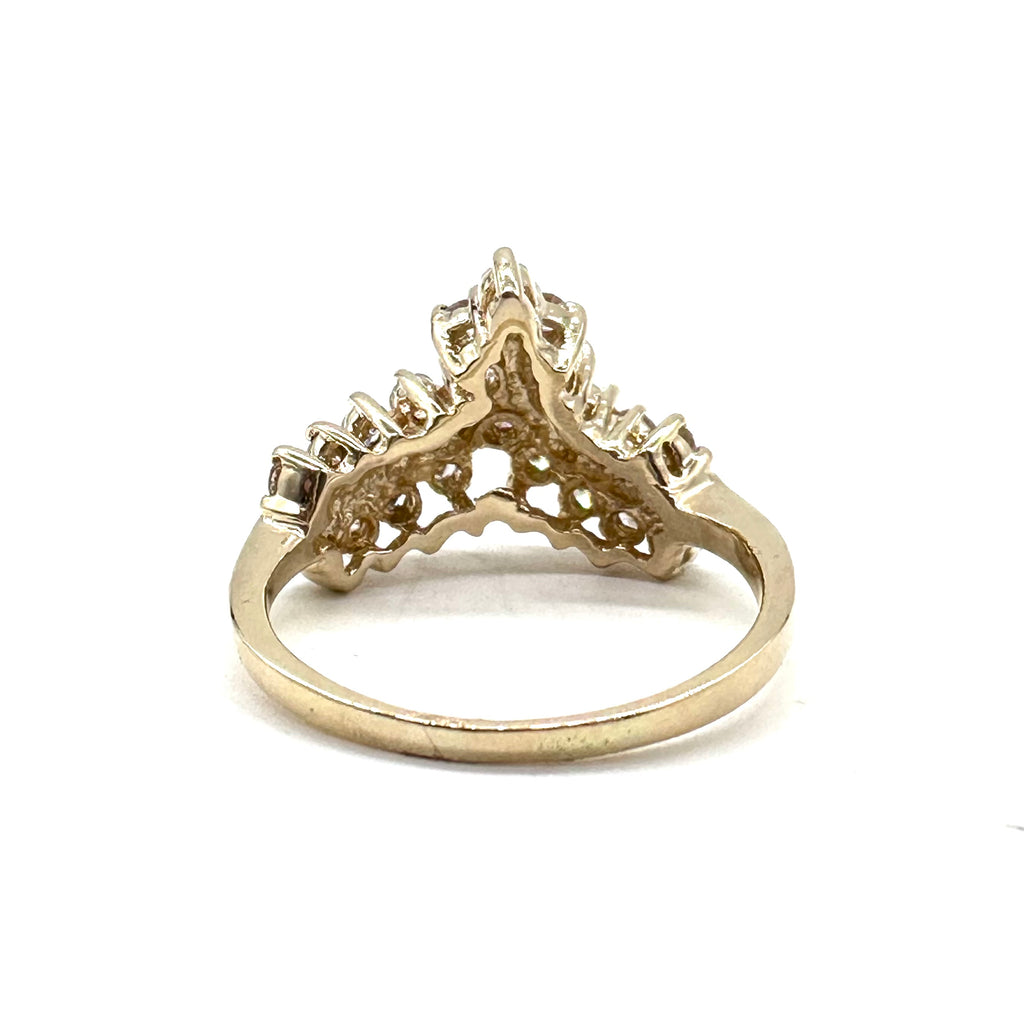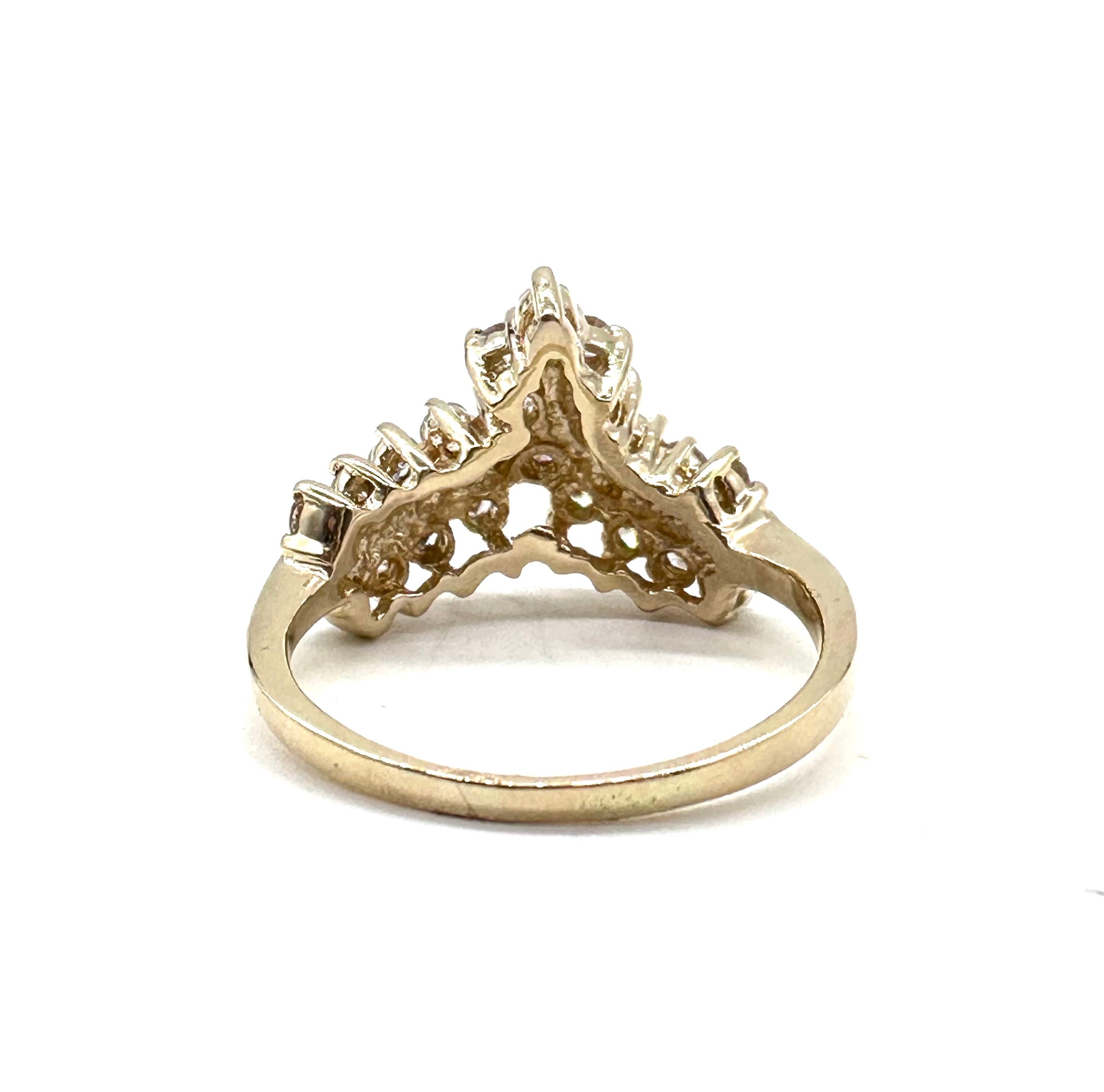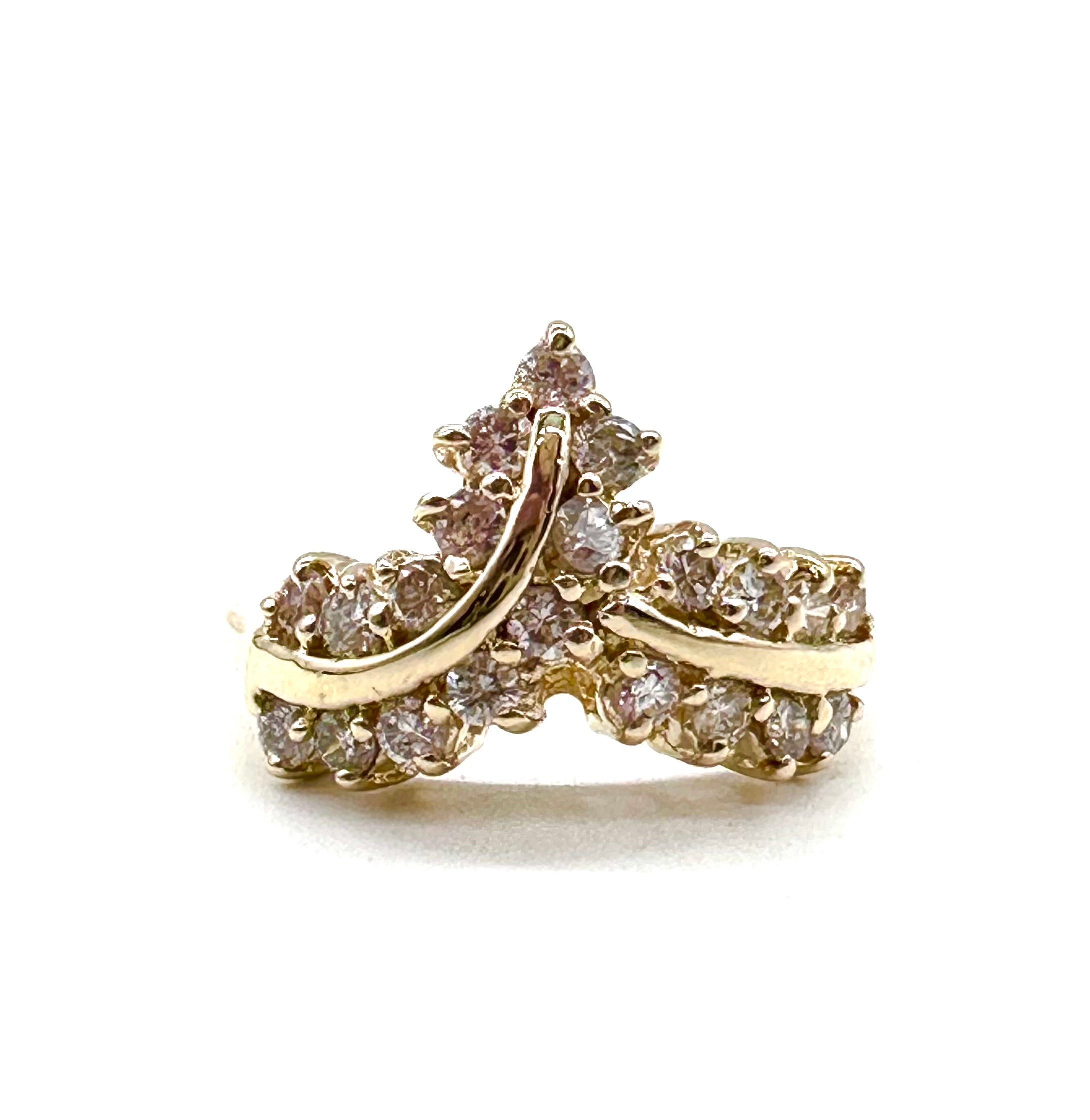 This beautiful diamond two row Chevron ring is set with a total of three-quarter carats of diamonds in 14 karat yellow gold.
