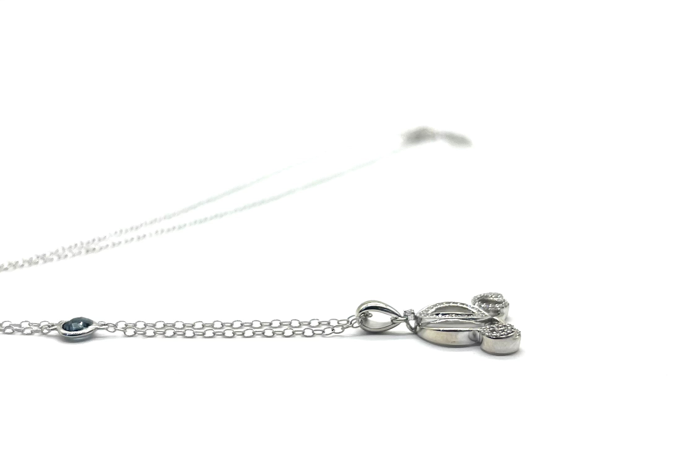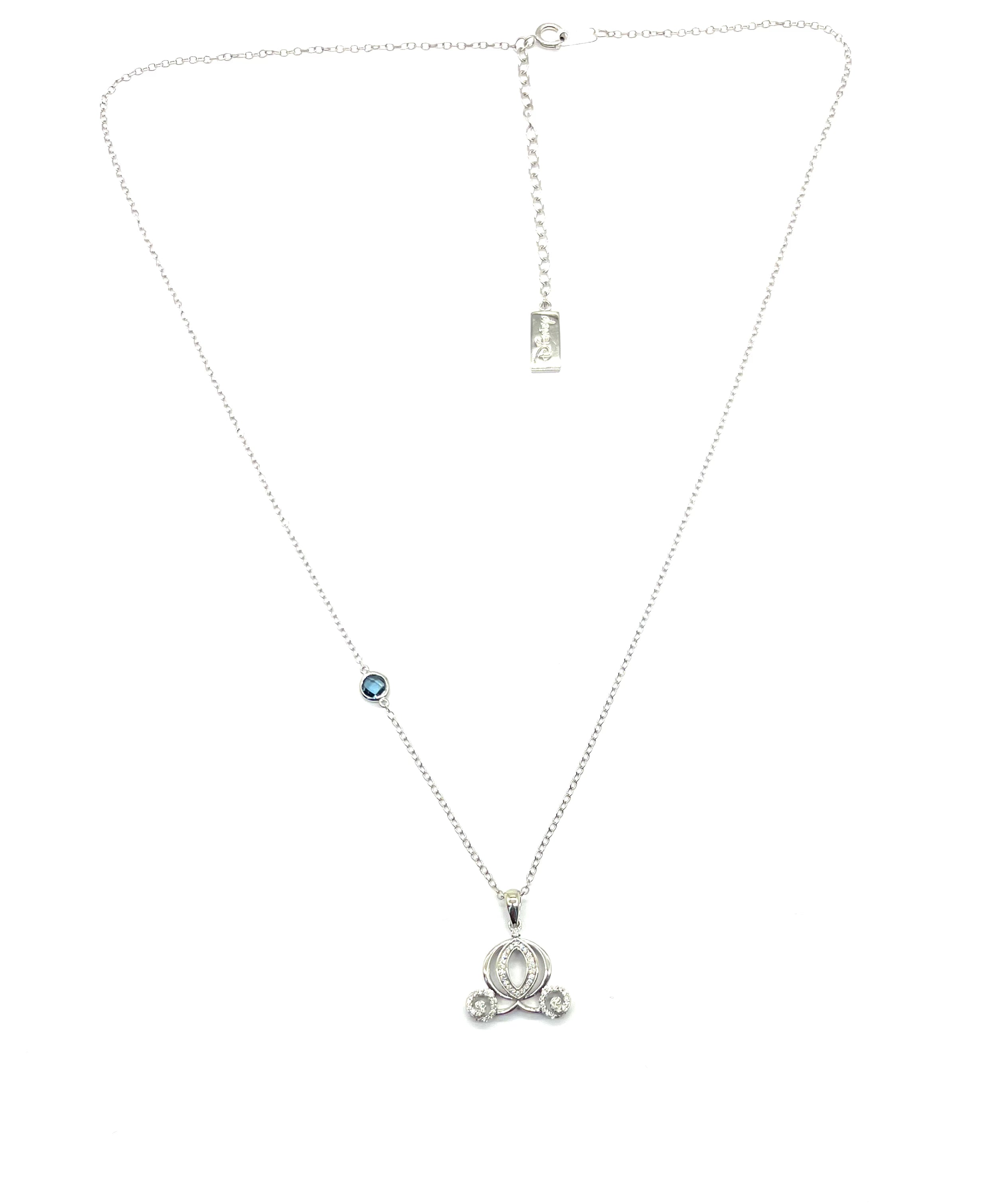 10K White Gold Disney Cinderella Carriage Diamond and Sapphire Necklace