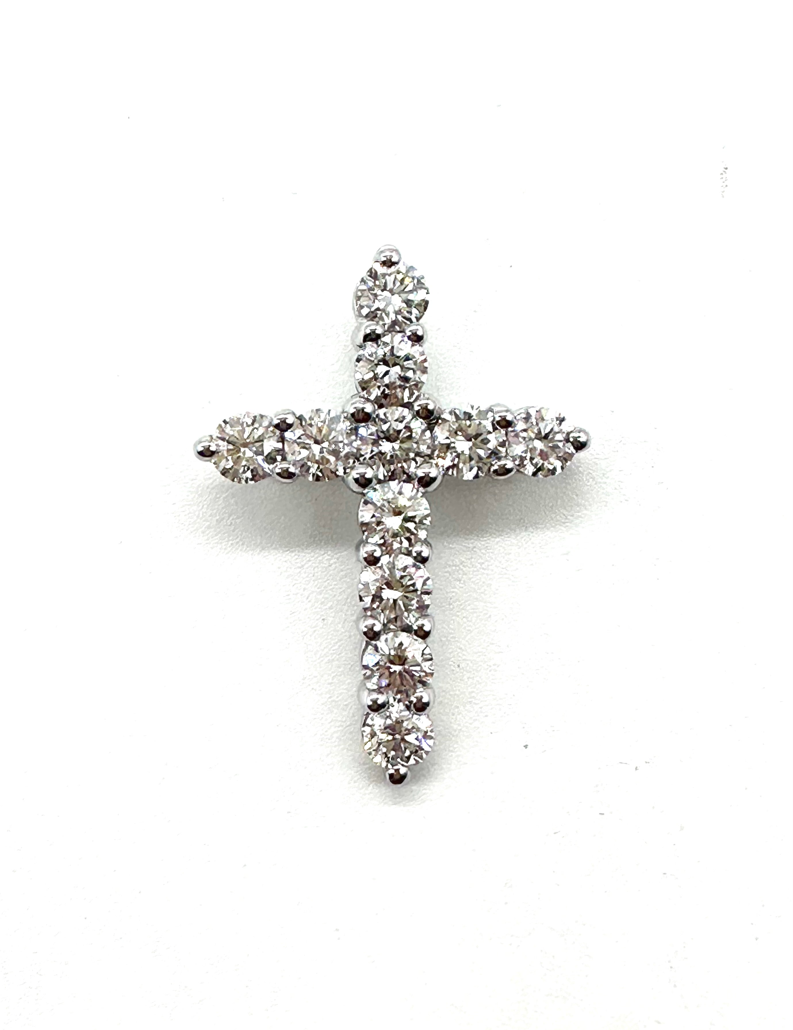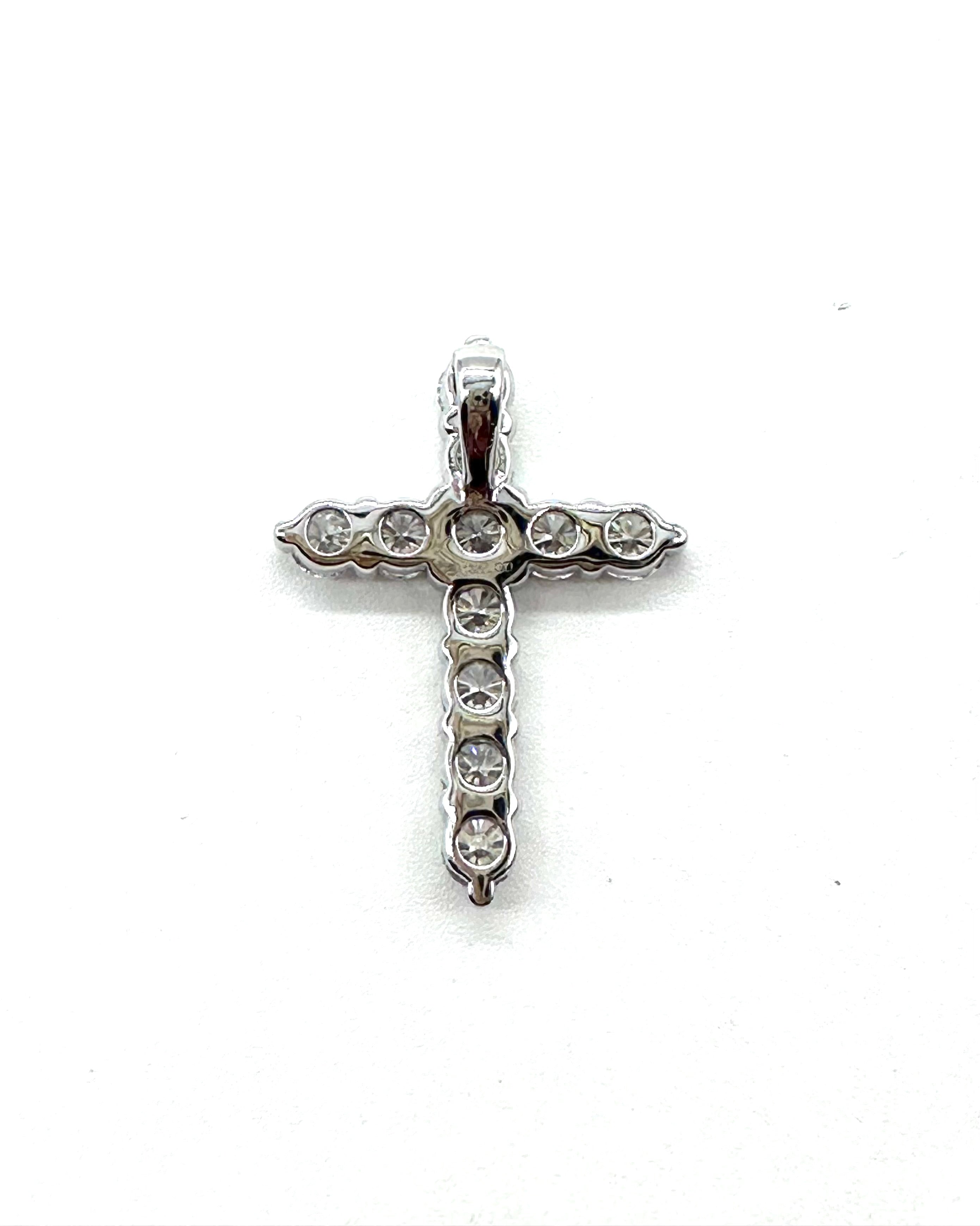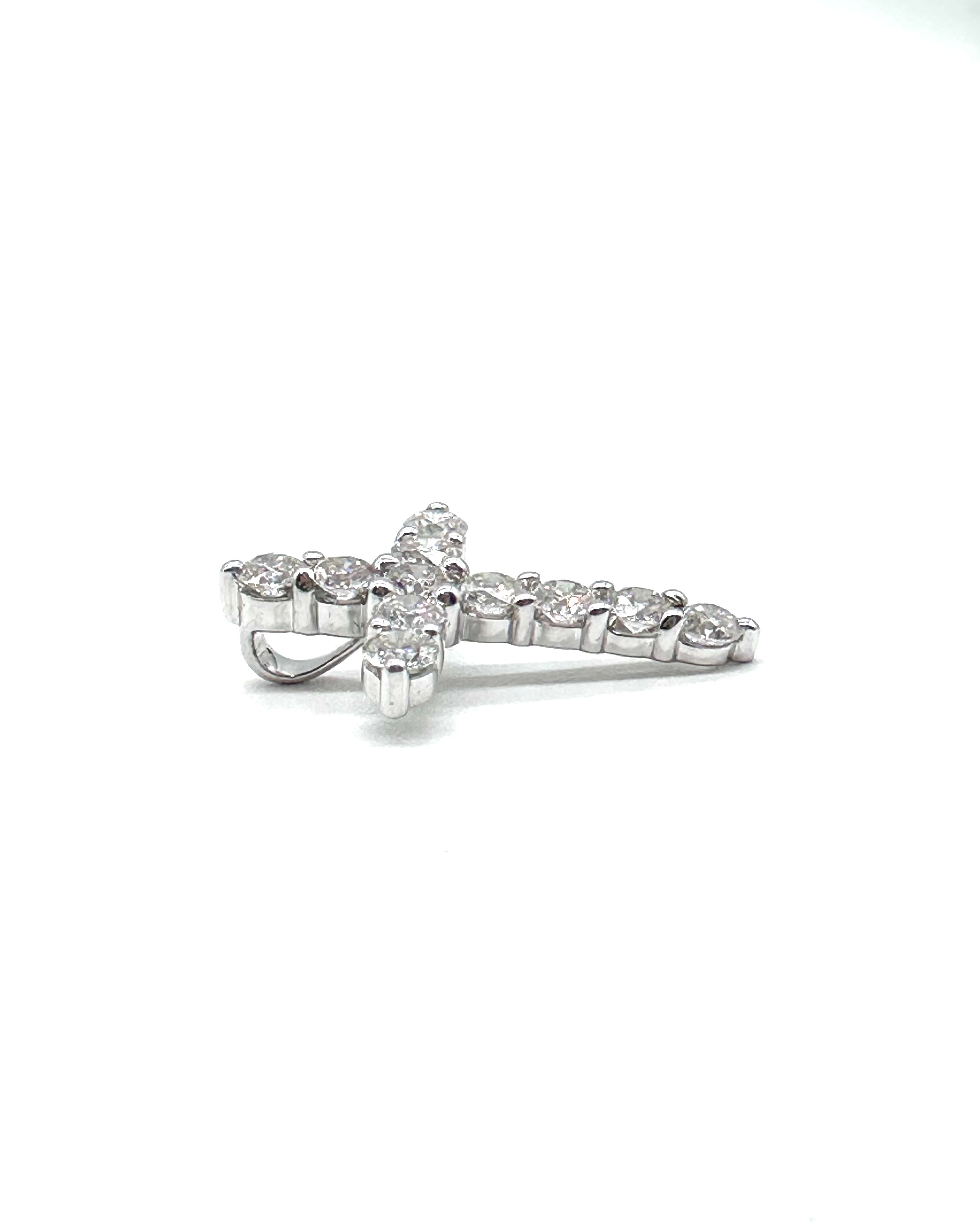 This mesmerizingly gorgeous lab diamond cross pendant set with a total of two carts of diamonds in 10 karat white gold.