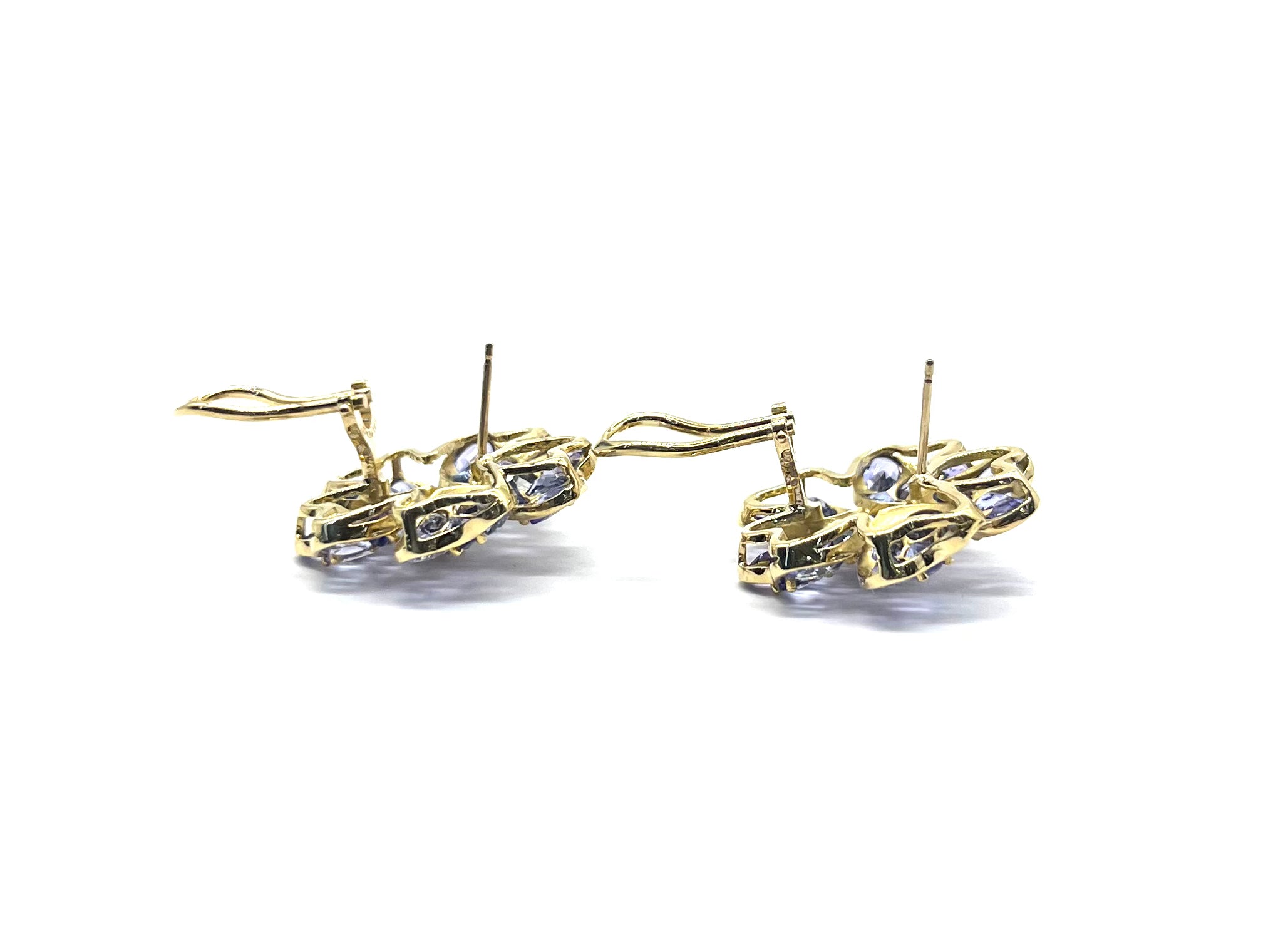 Large 18K Yellow Gold Tanzanite and Diamond Flower Earrings