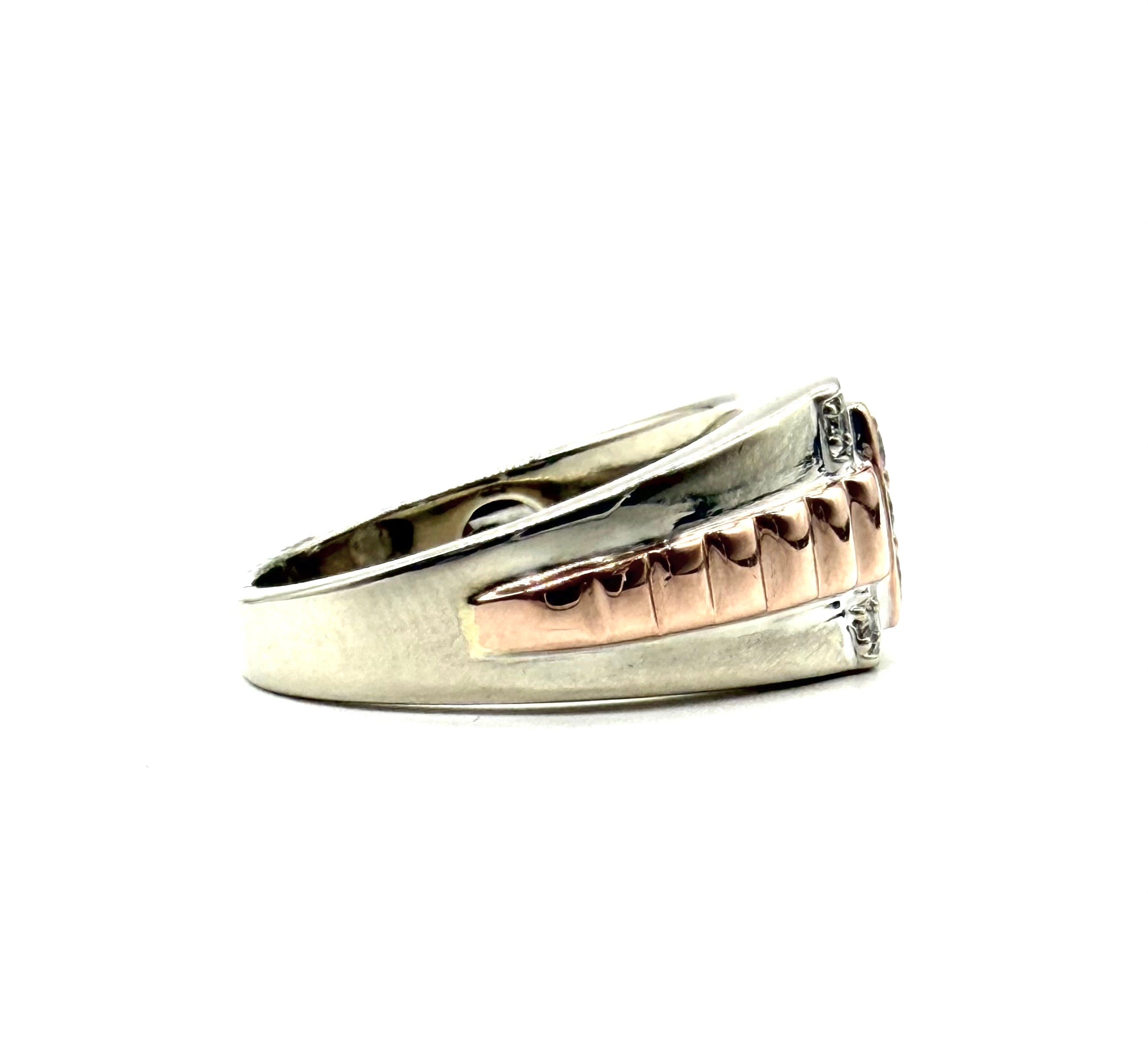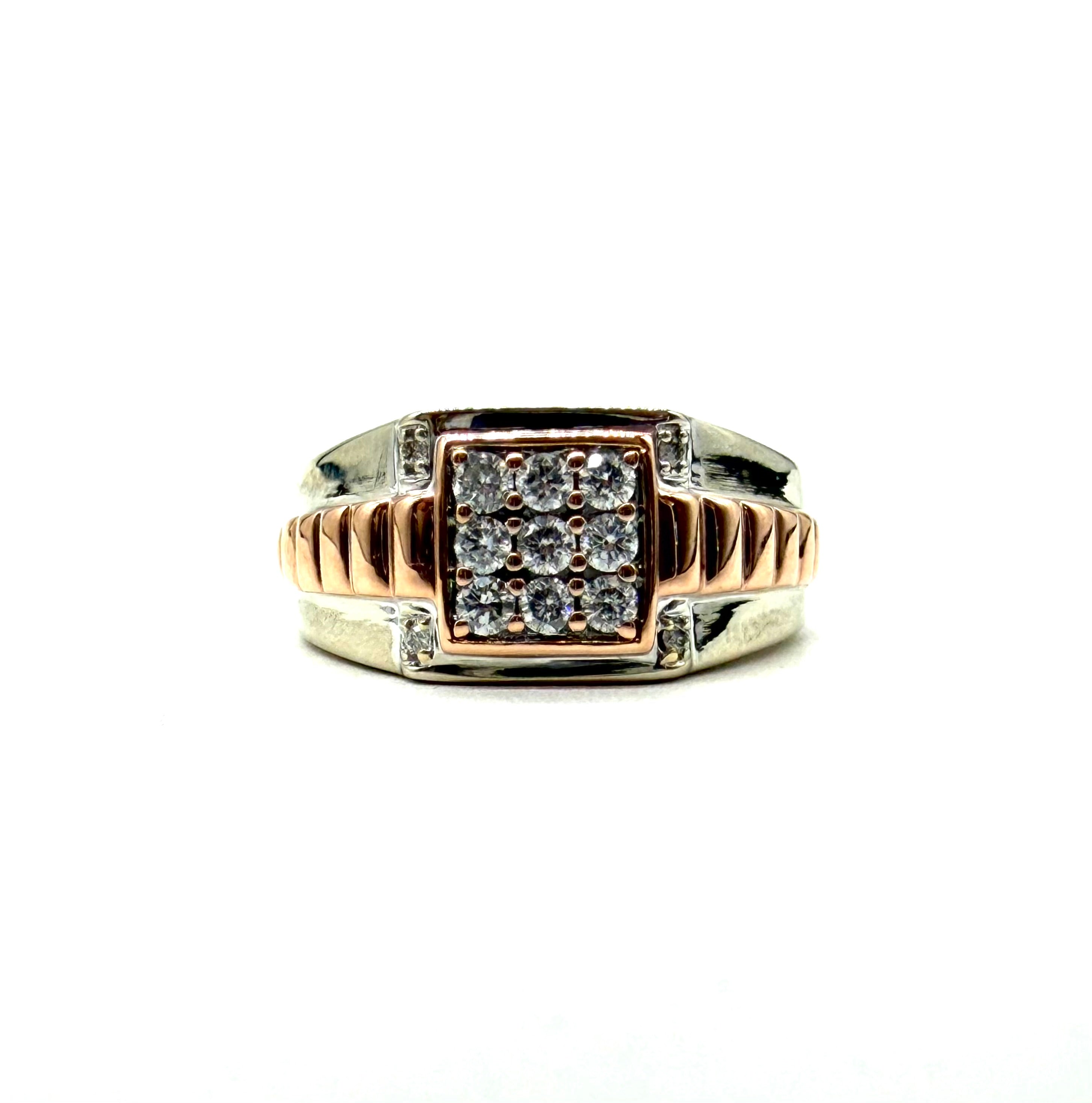 Men’s 10 Karat White and Rose Gold Diamond Cluster Ring