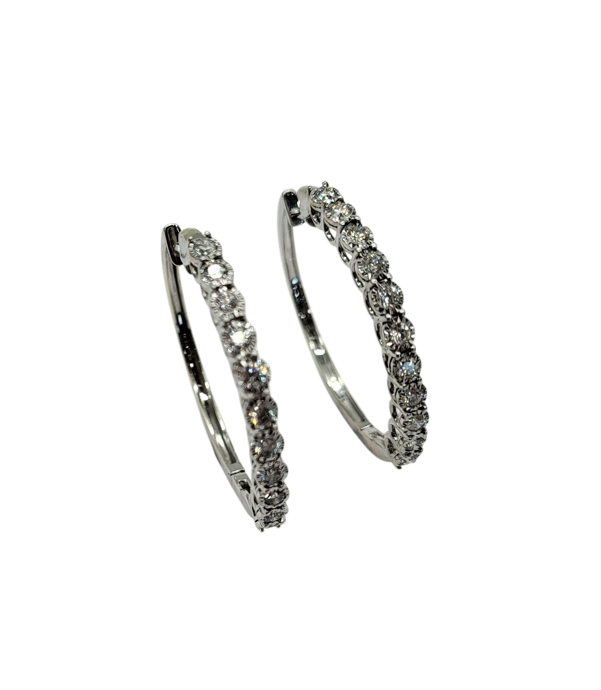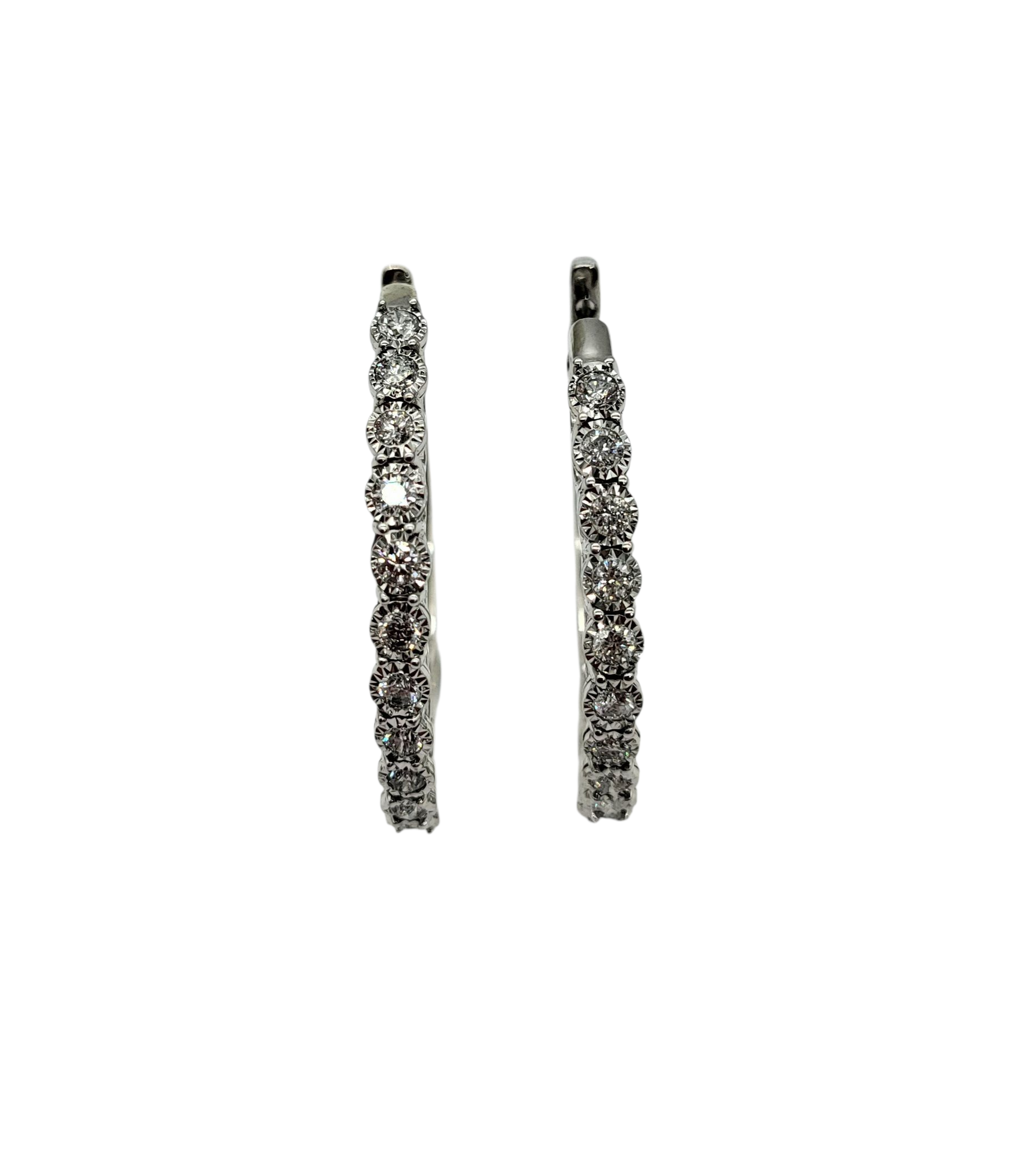 Sparkle all day with these stunning 1 Carat Total Weight Natural Diamond Hoops! Made with 10 karat white gold and an illusion design, these earrings are a must-have for any jewelry lover. Trust us, as someone in the industry, they look even better in person. The diamonds are the real star of the show, making these hoops a true showstopper!