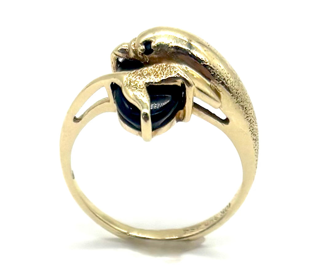 Onyx Dolphin Bypass Ring- 10k Yellow Gold