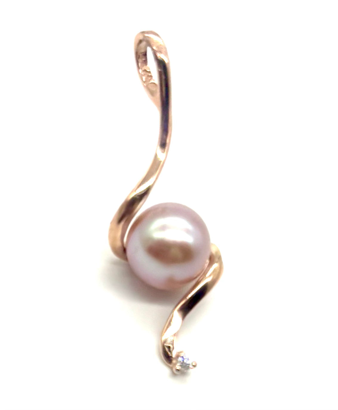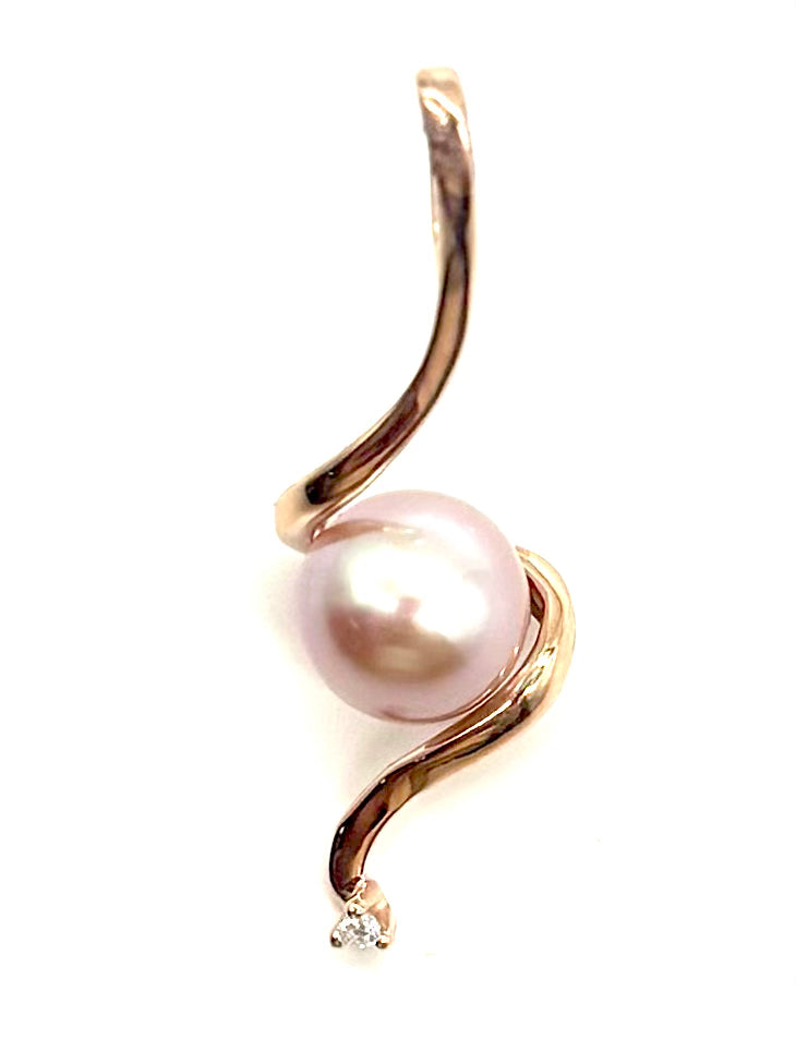 14K Rose Gold Pink Pearl Twist Pendant with Diamond Accent