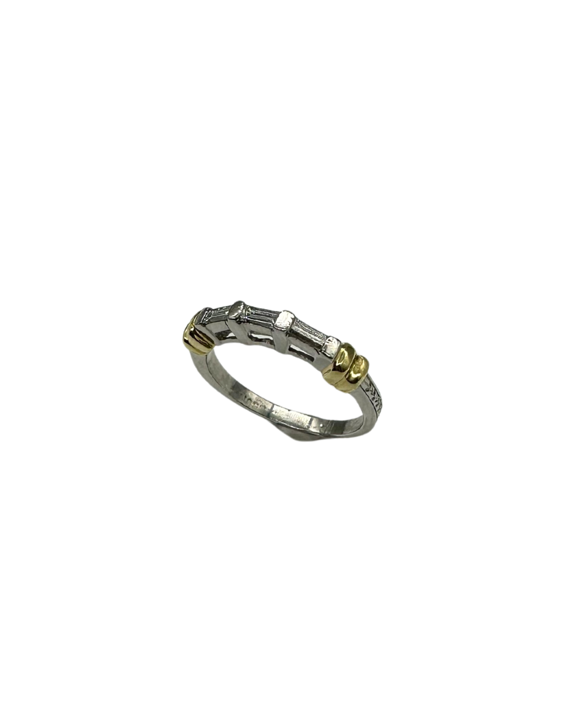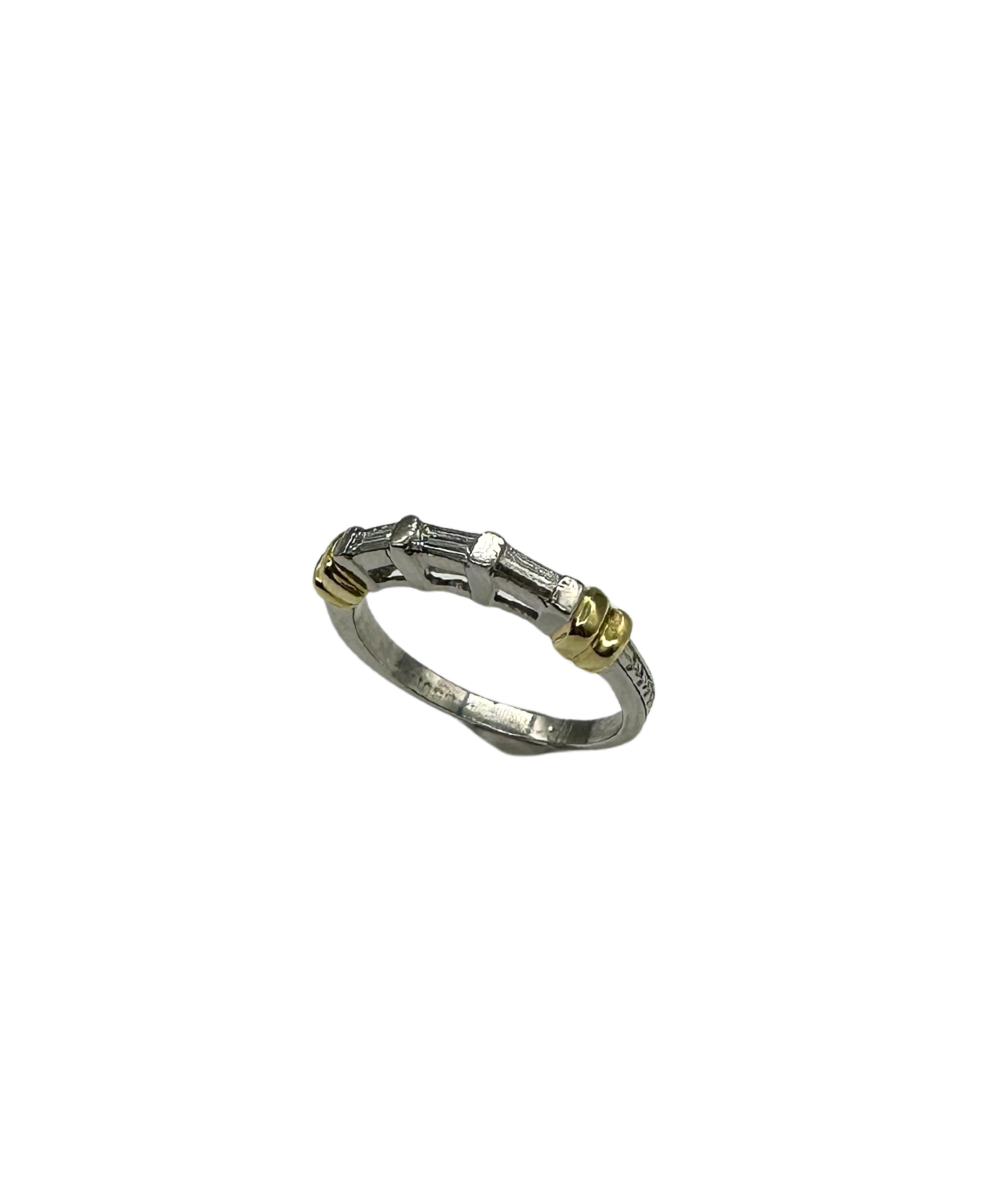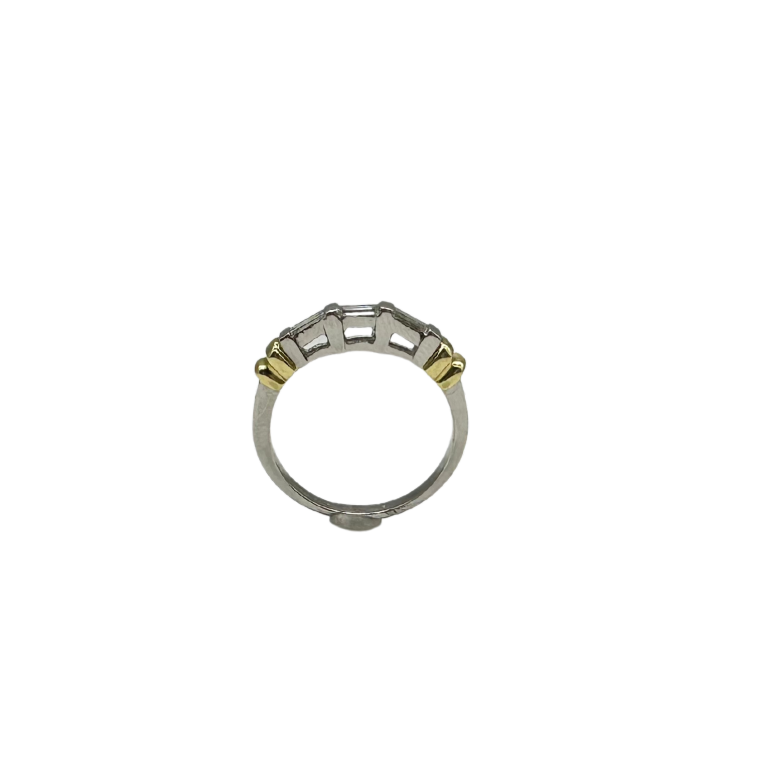 Platinum and Yellow Gold Diamond Bar Ring – Baguette Band