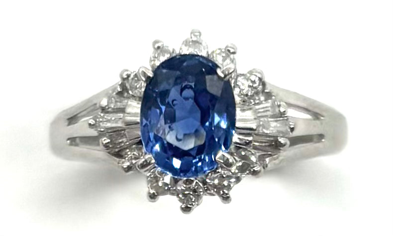 Platinum Sapphire & Diamond Ring- 1.21ct Oval Sapphire