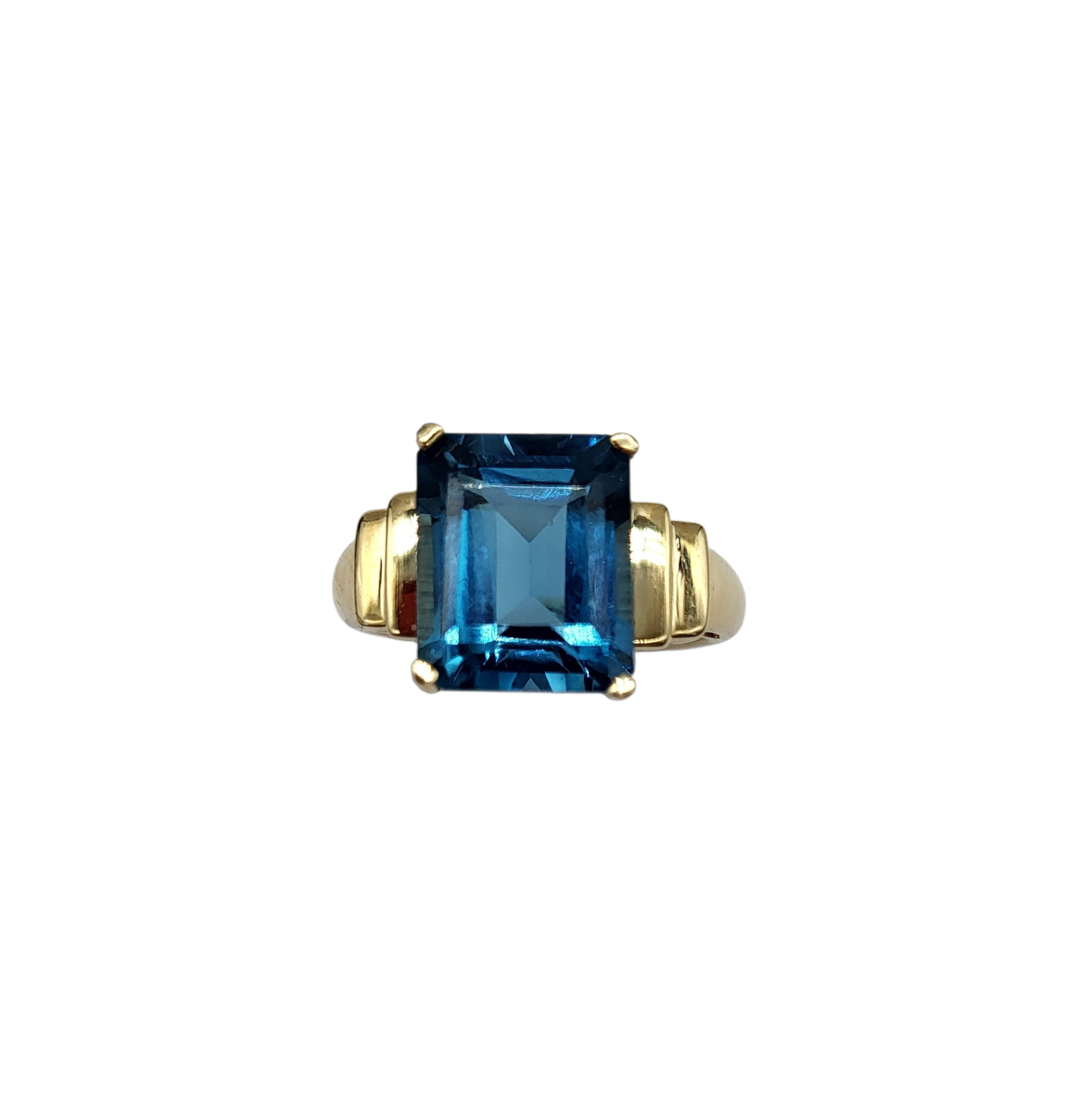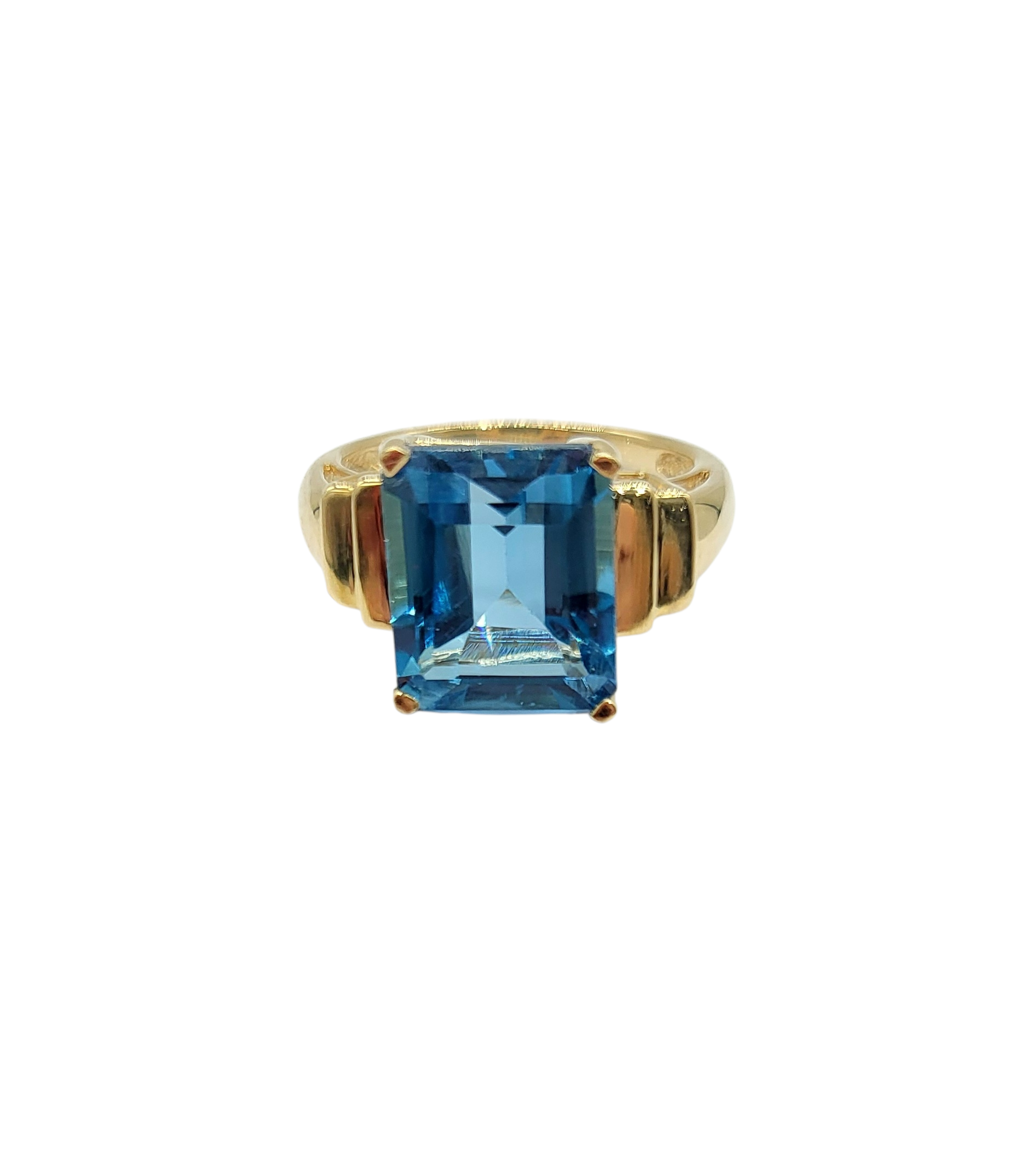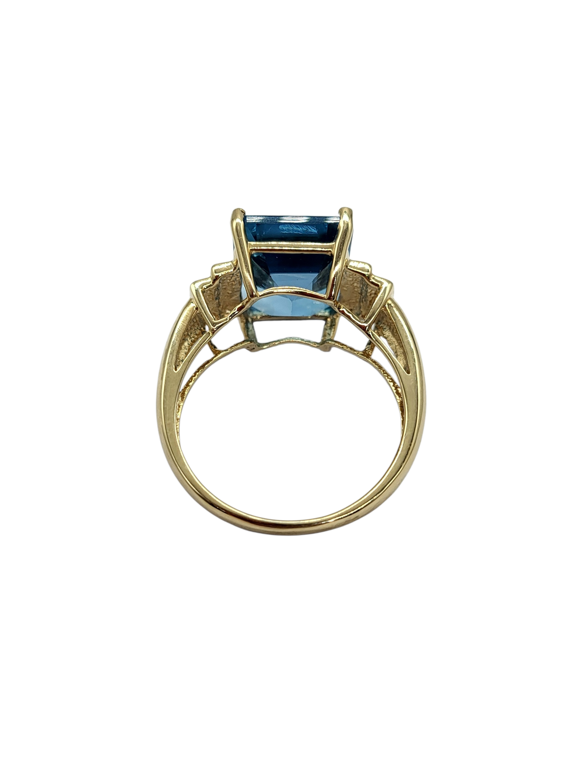 Upgrade your style with our Rectangular Cut Blue Topaz Ring. Made from 10 karat yellow gold, this wide-width ring features a stunning large, rectangular blue topaz. Stand out in any crowd with this elegant and eye-catching piece of jewelry. Perfect for any occasion.