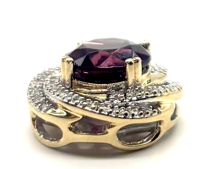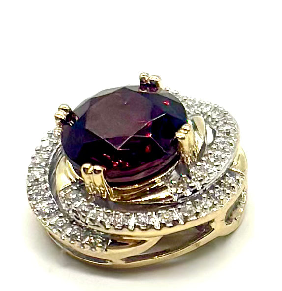 14K Yellow Gold Rhodolite Garnet & Diamond Pendant – Pre-Owned