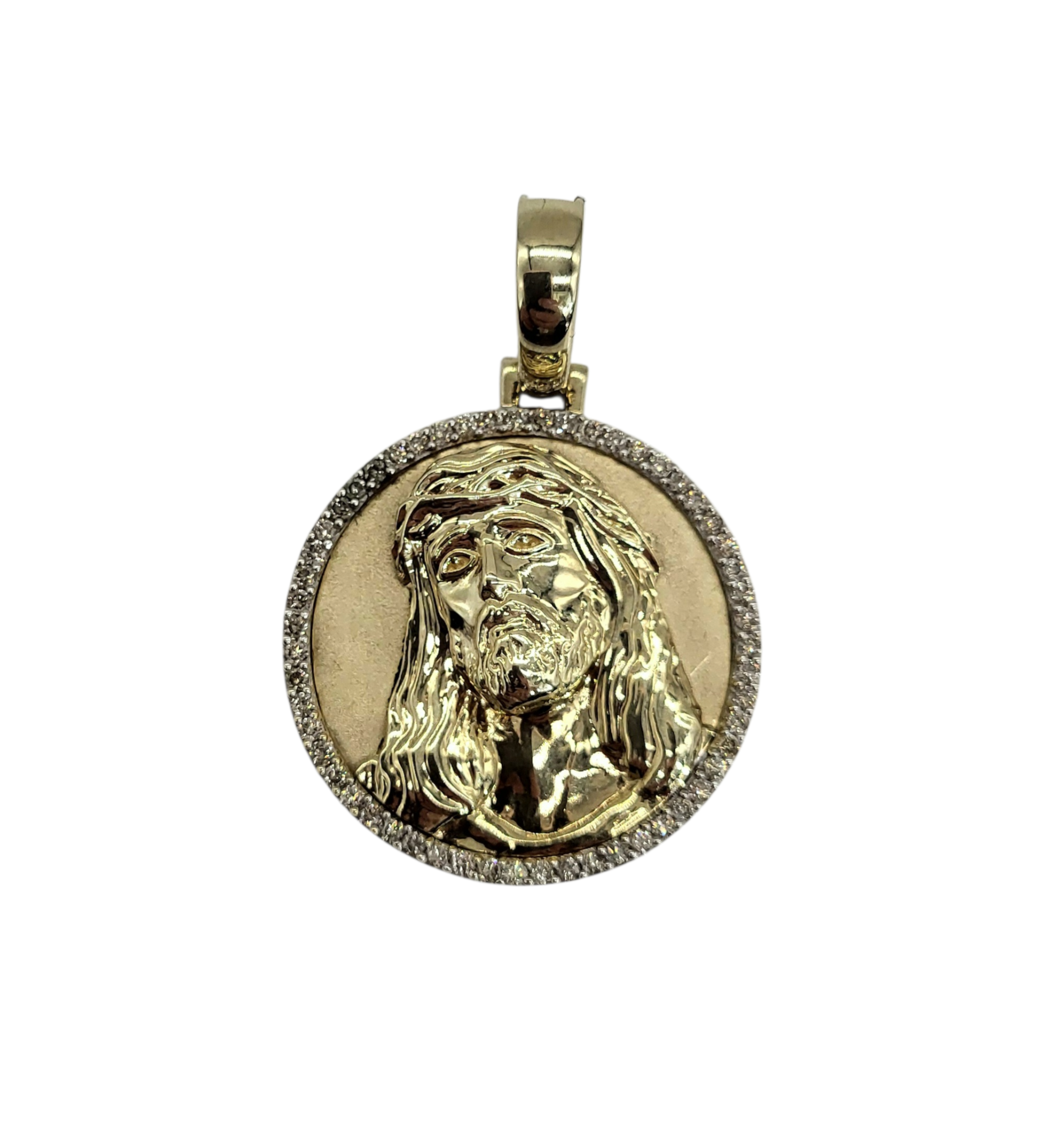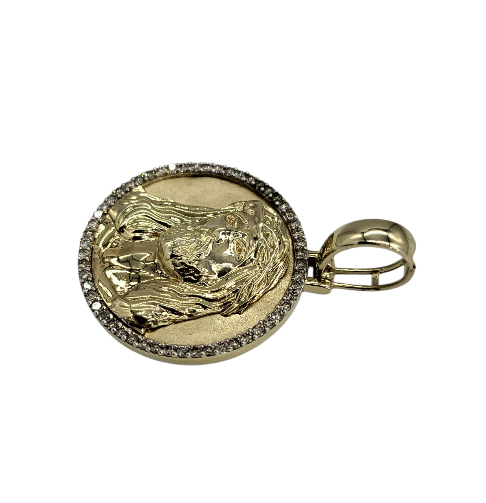 10K Yellow Gold Round Diamond Jesus Head Pendant