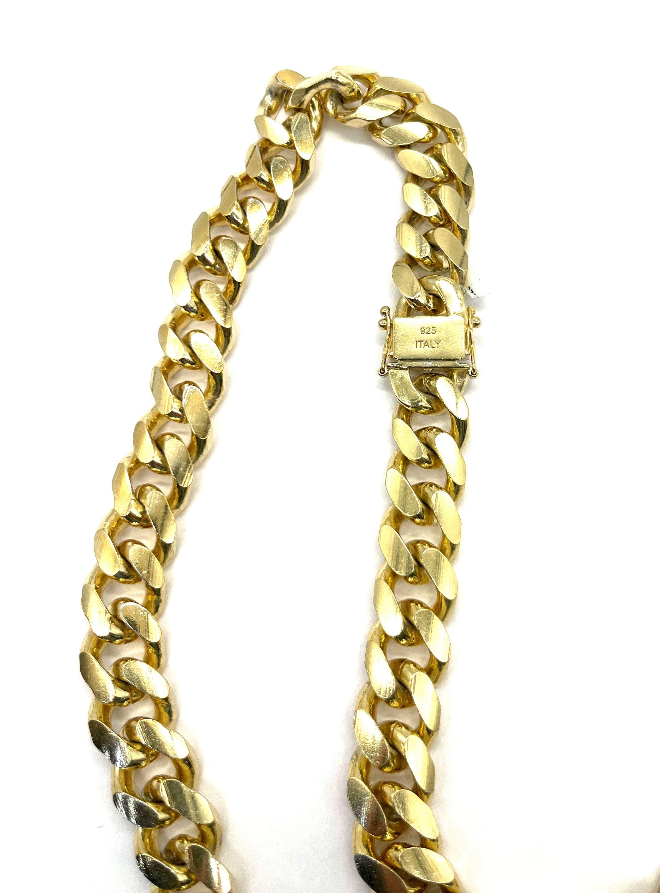 .925 Sterling Silver Gold Plated 17.5mm Cuban Necklace