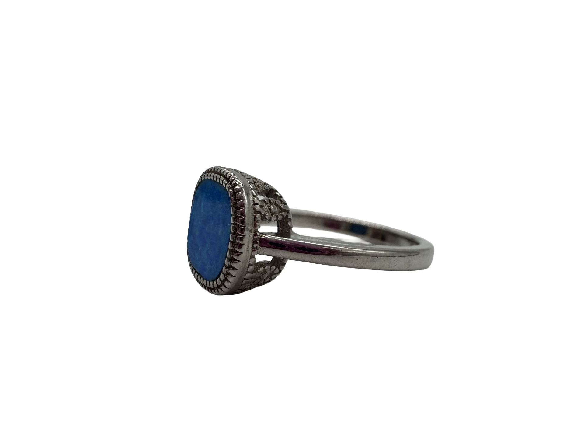 Sterling Silver Blue Opal Milgrain Bezel Ring