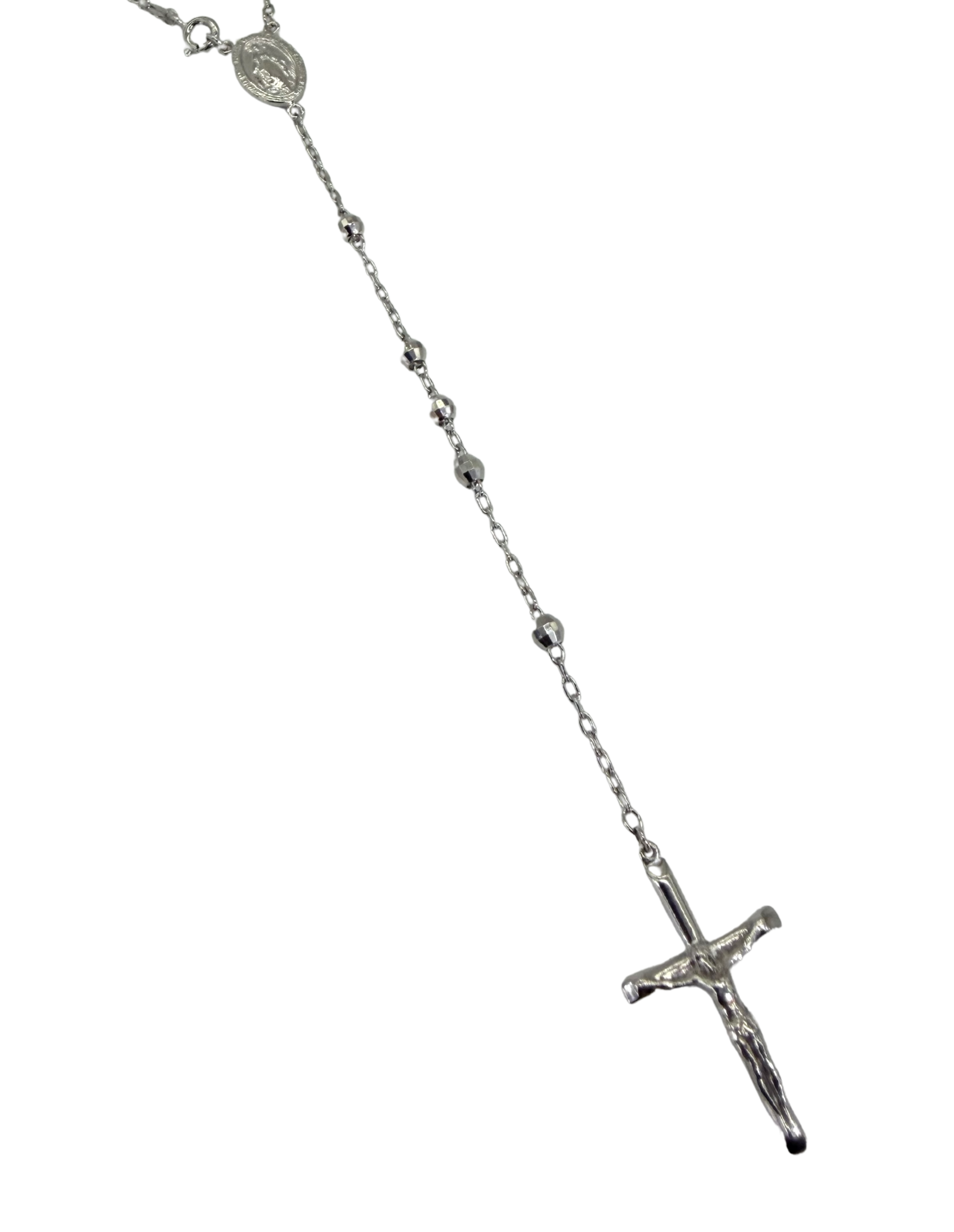 .925 Sterling Silver Diamond Cut Beaded Rosary Necklace – 18"