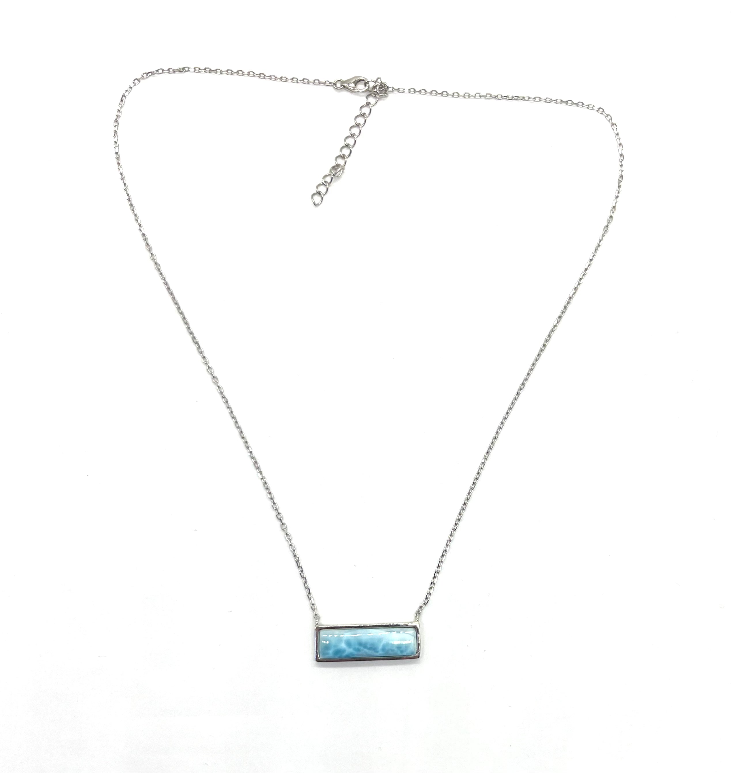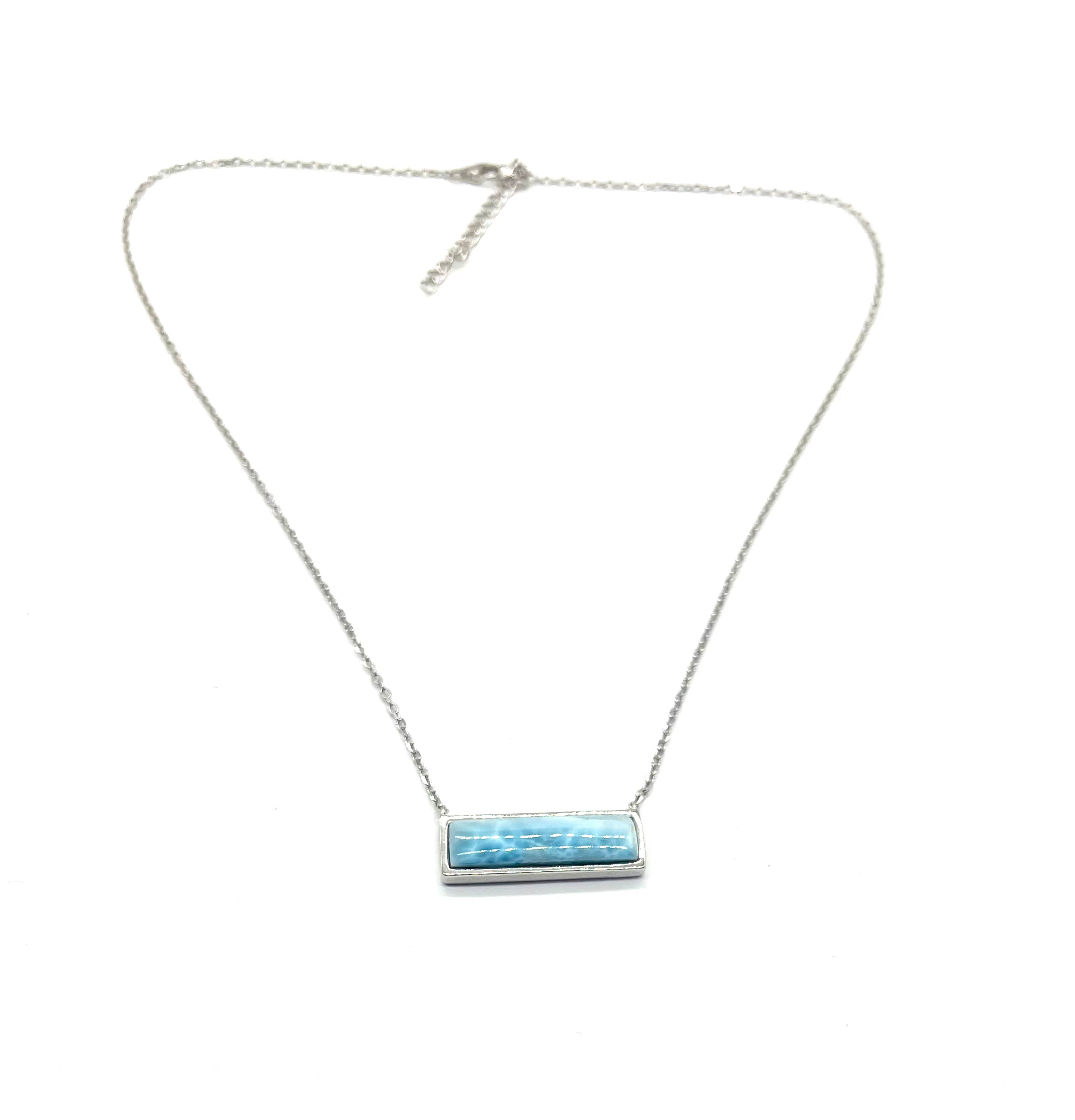 .925 Sterling Silver Larimar Bar Station Necklace
