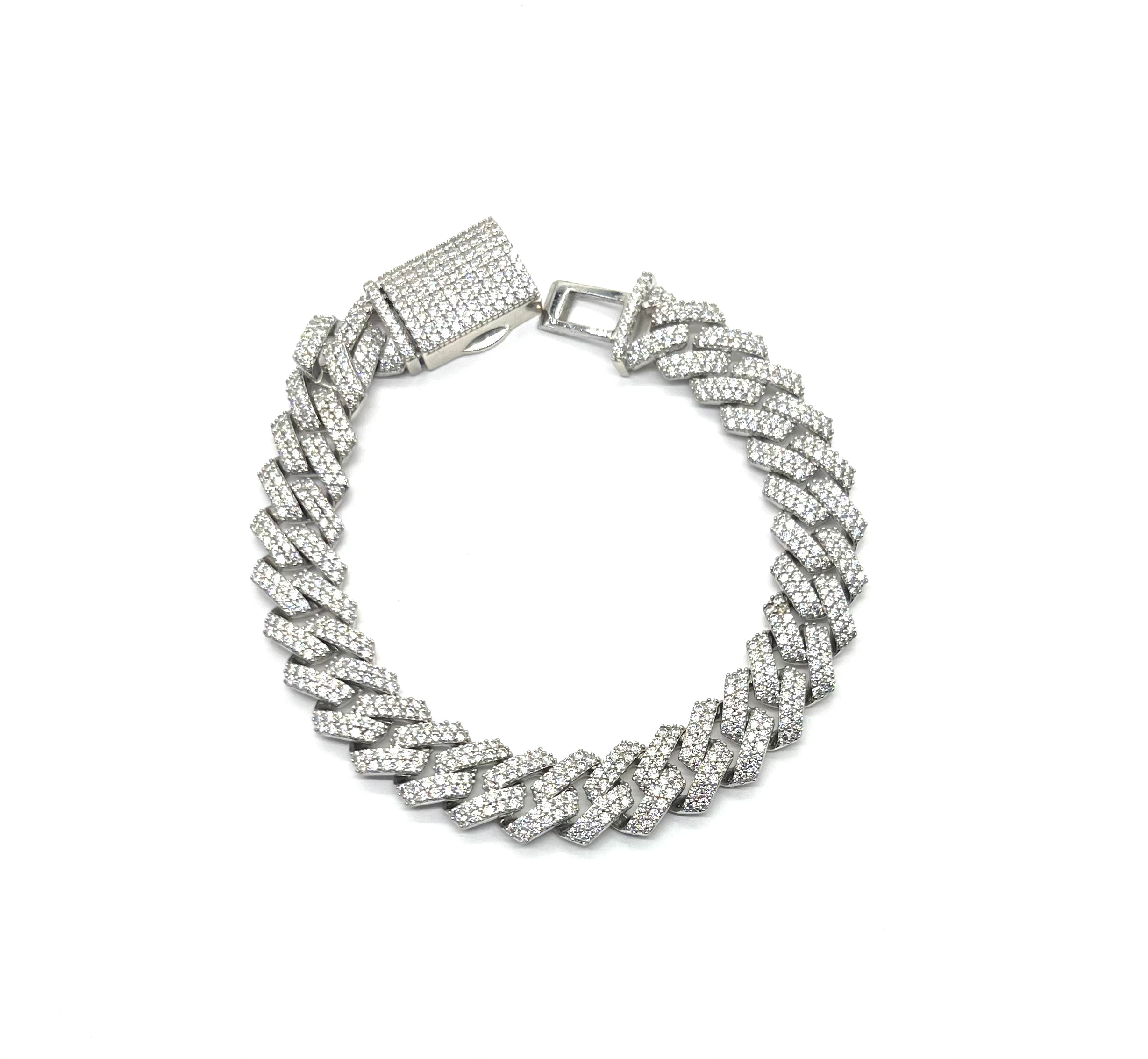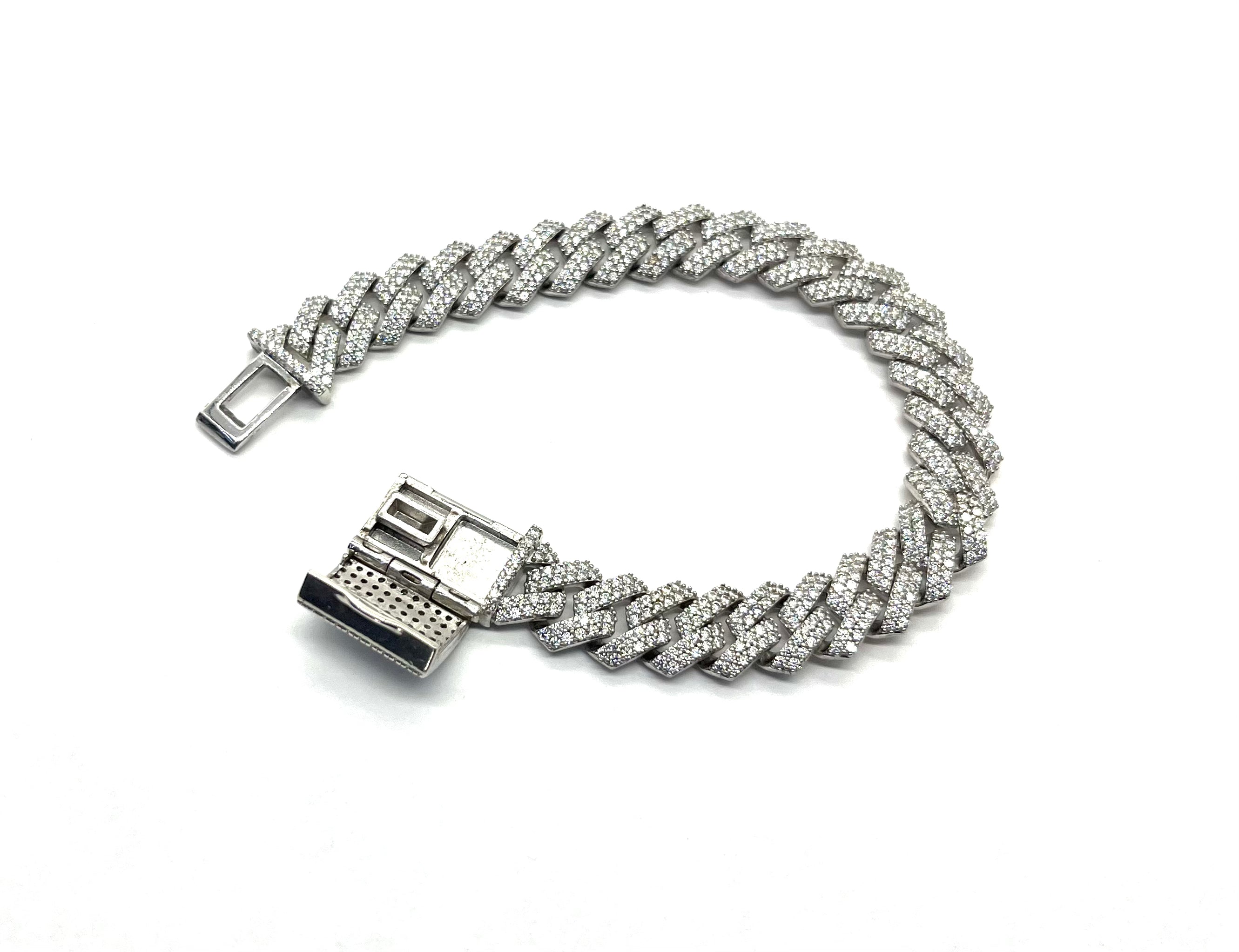 .925 Sterling Silver CZ Cuban Bracelet